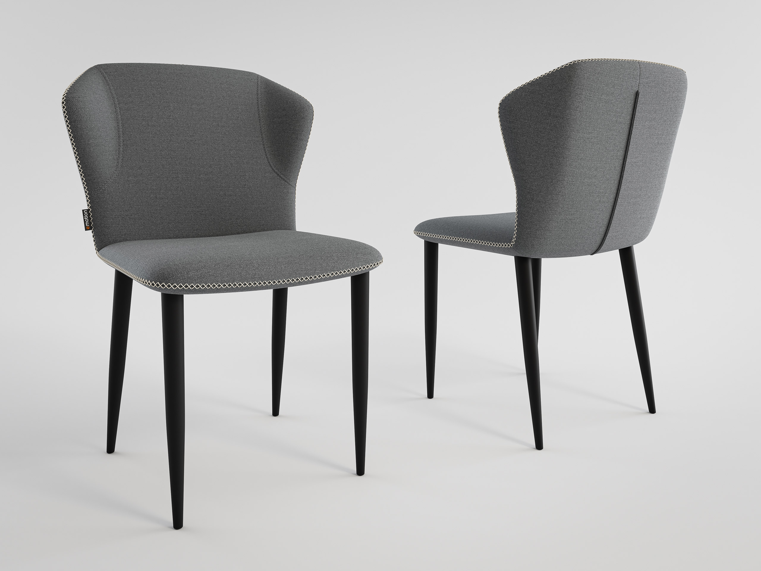 2er Set Esszimmerstuhl Design Küchenstuhl Cosmo Stoffbezug hellgrau Metallbeine
