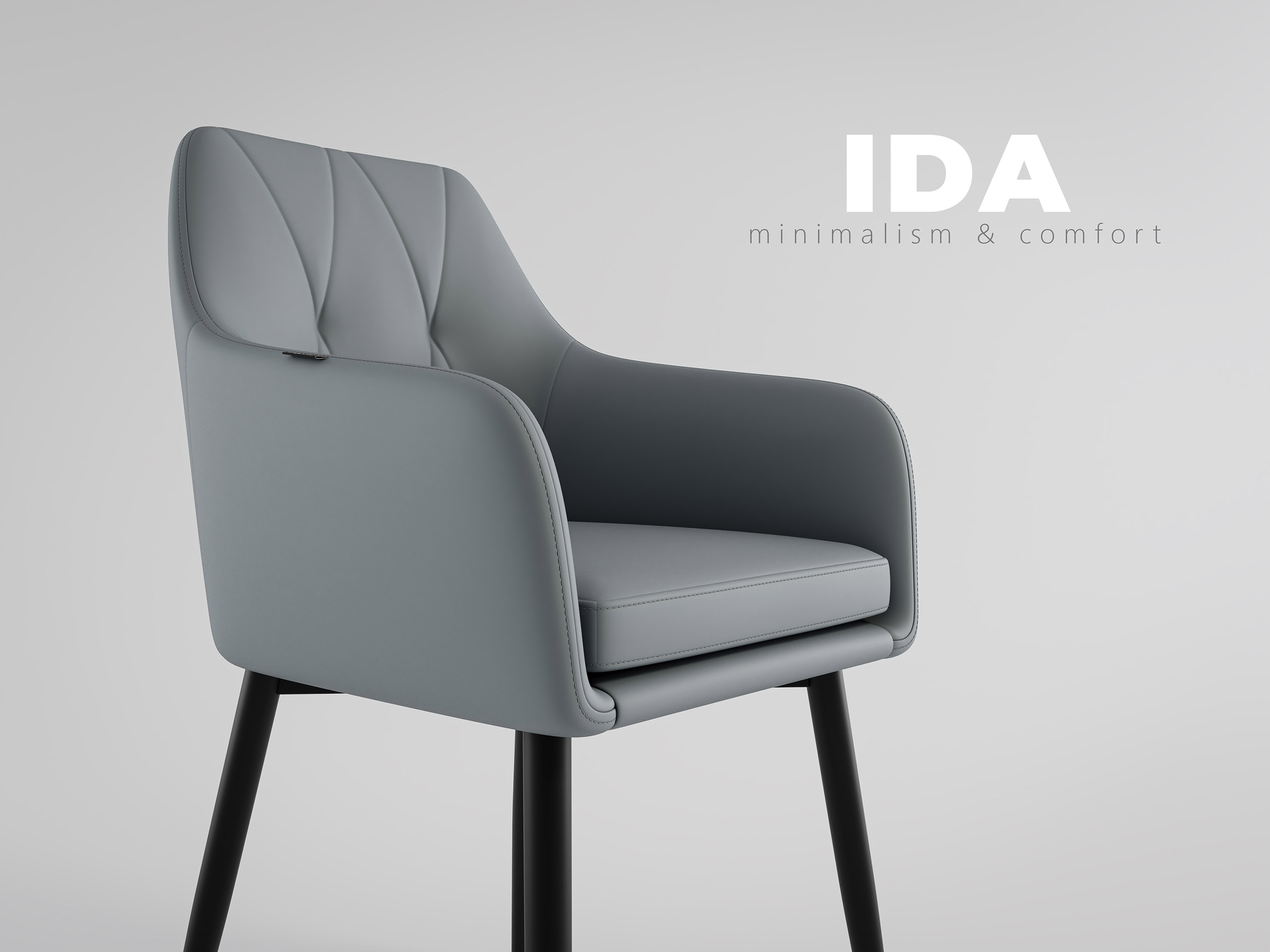 2er Set Esszimmerstuhl Design Küchenstuhl Ida Kunstleder hellgrau Metallbeine