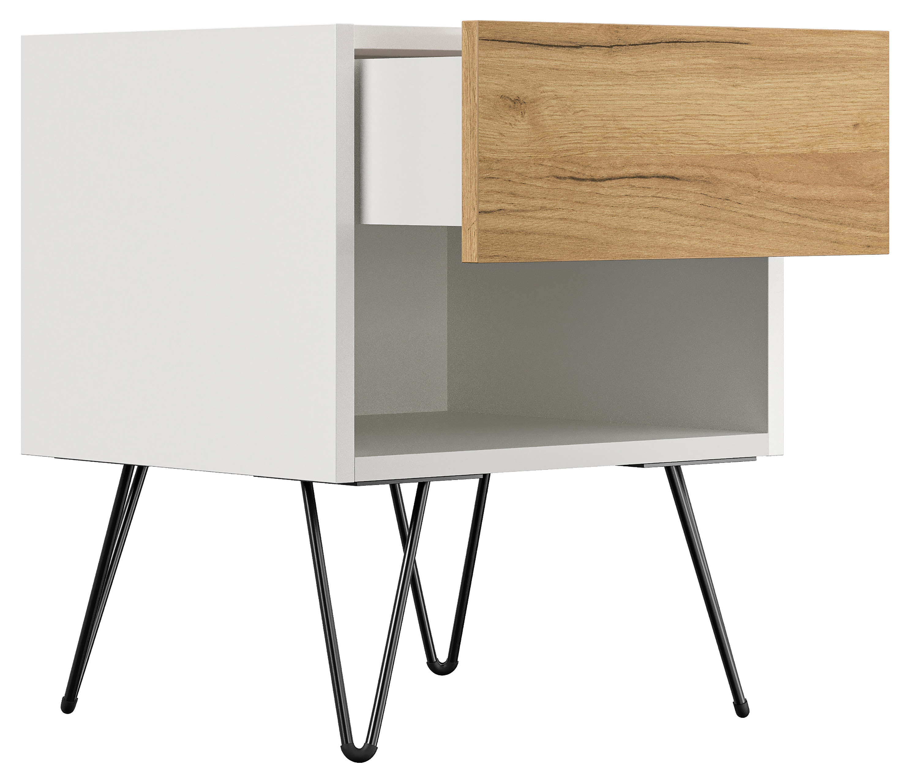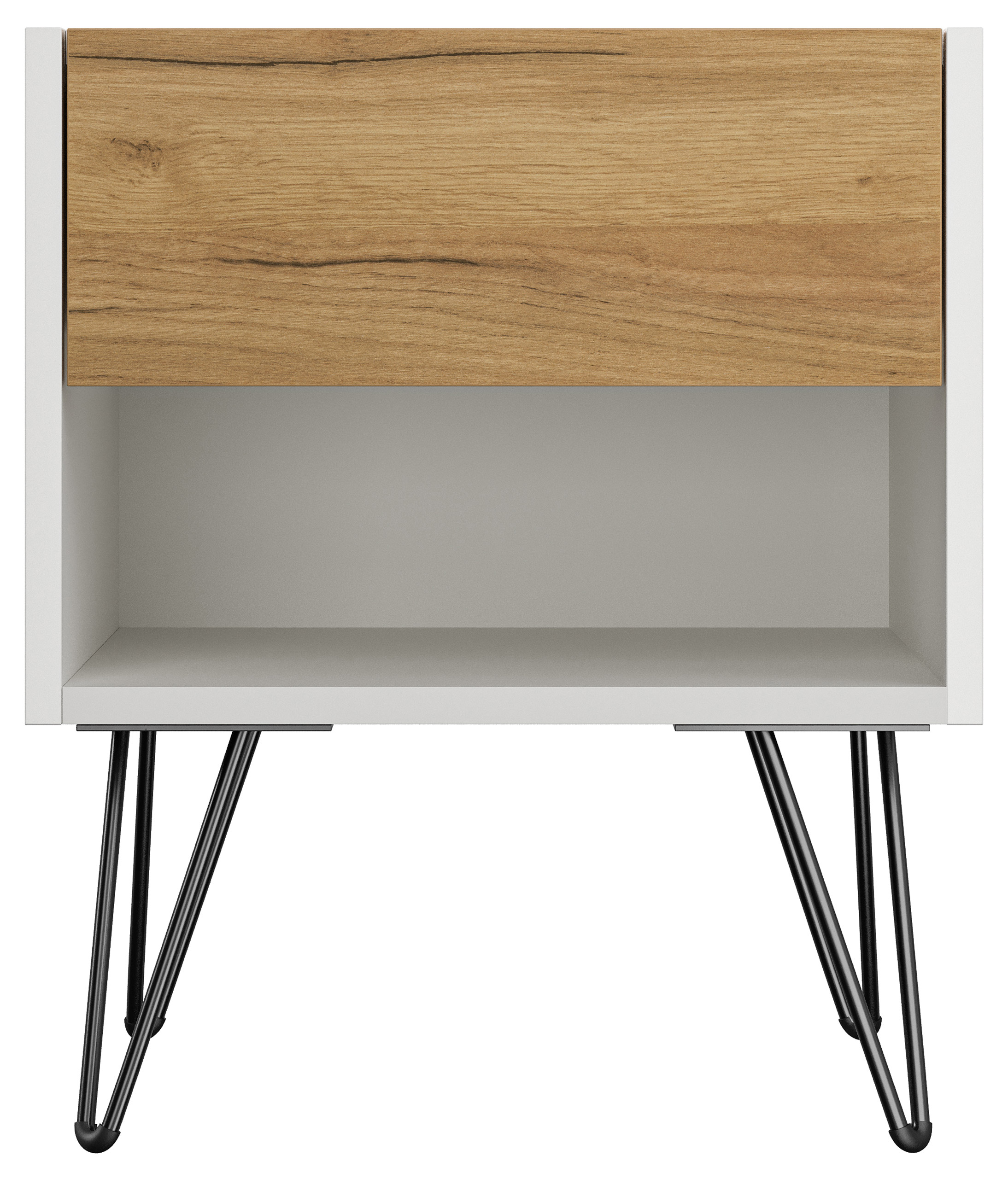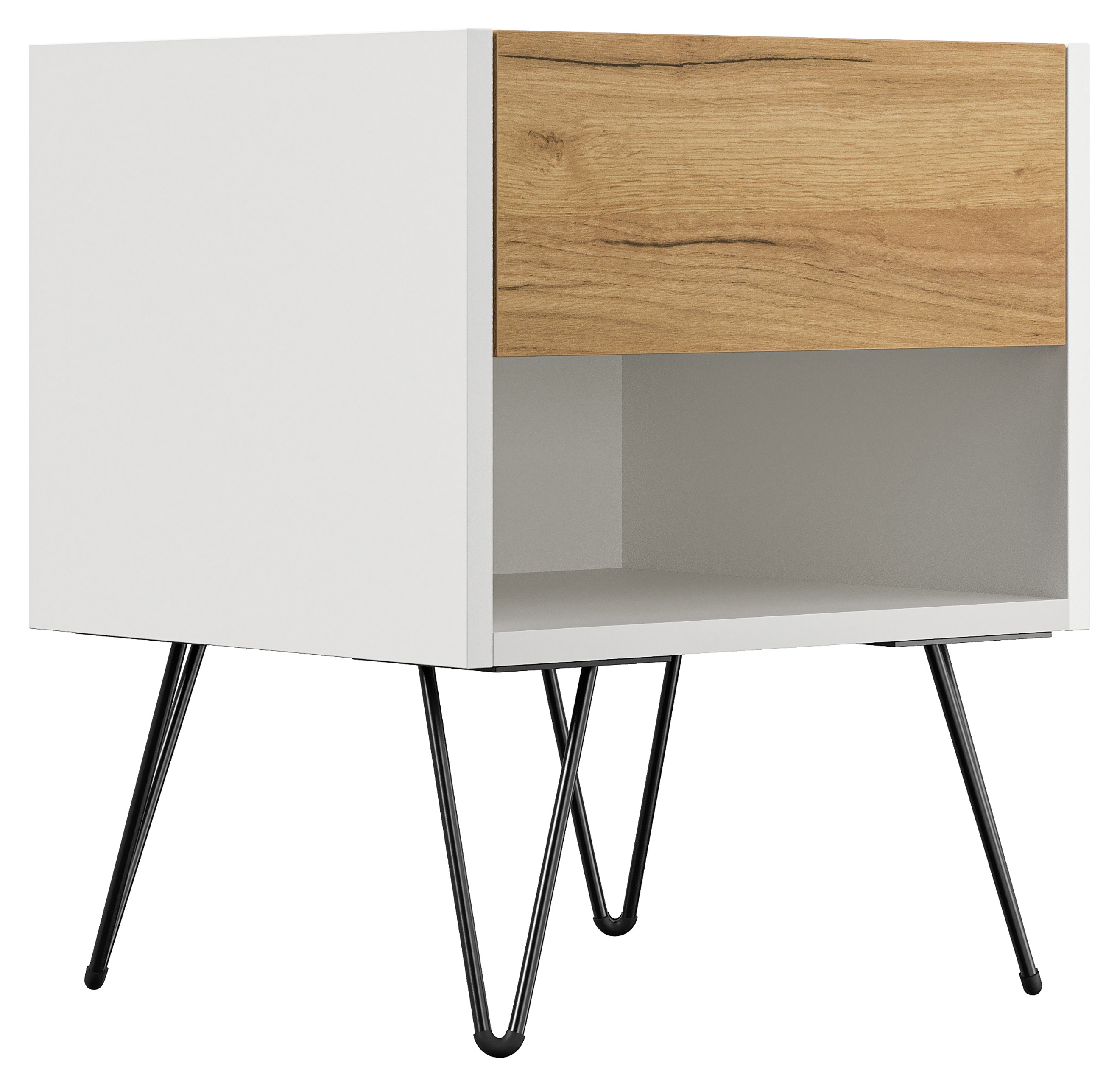 2er Set Nachttisch Dion 40cm SoftClose stehend Weiß & Eiche Front