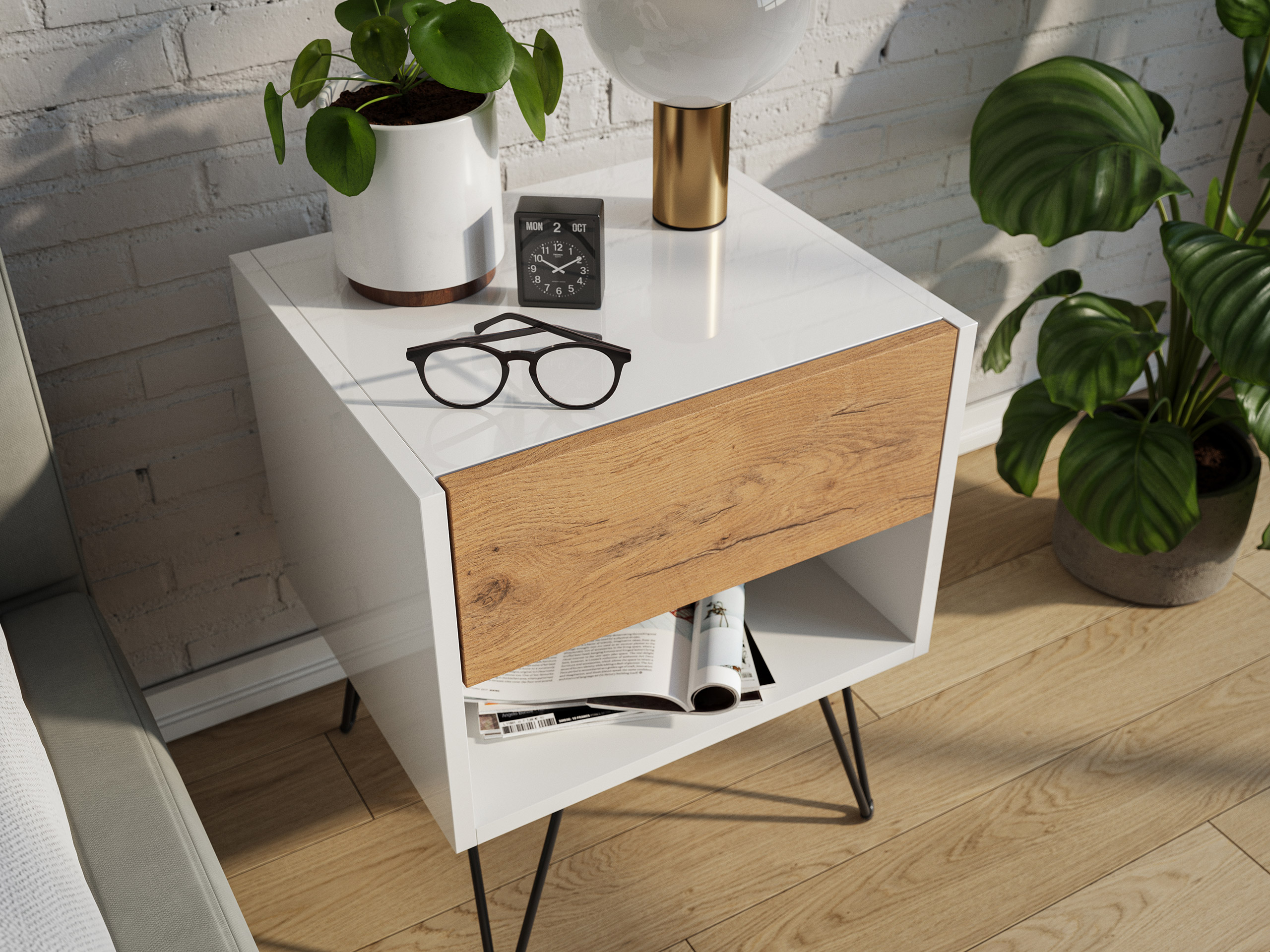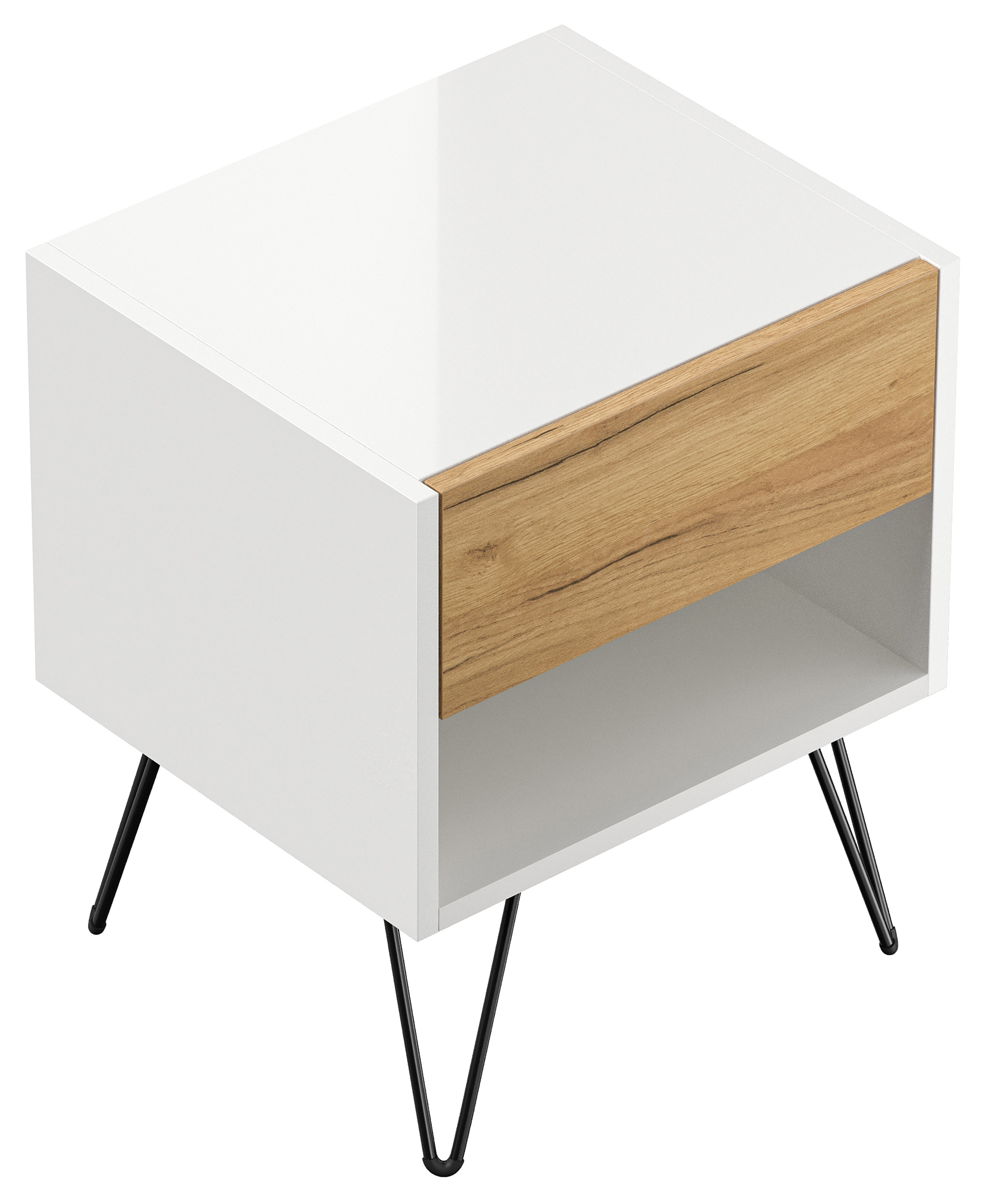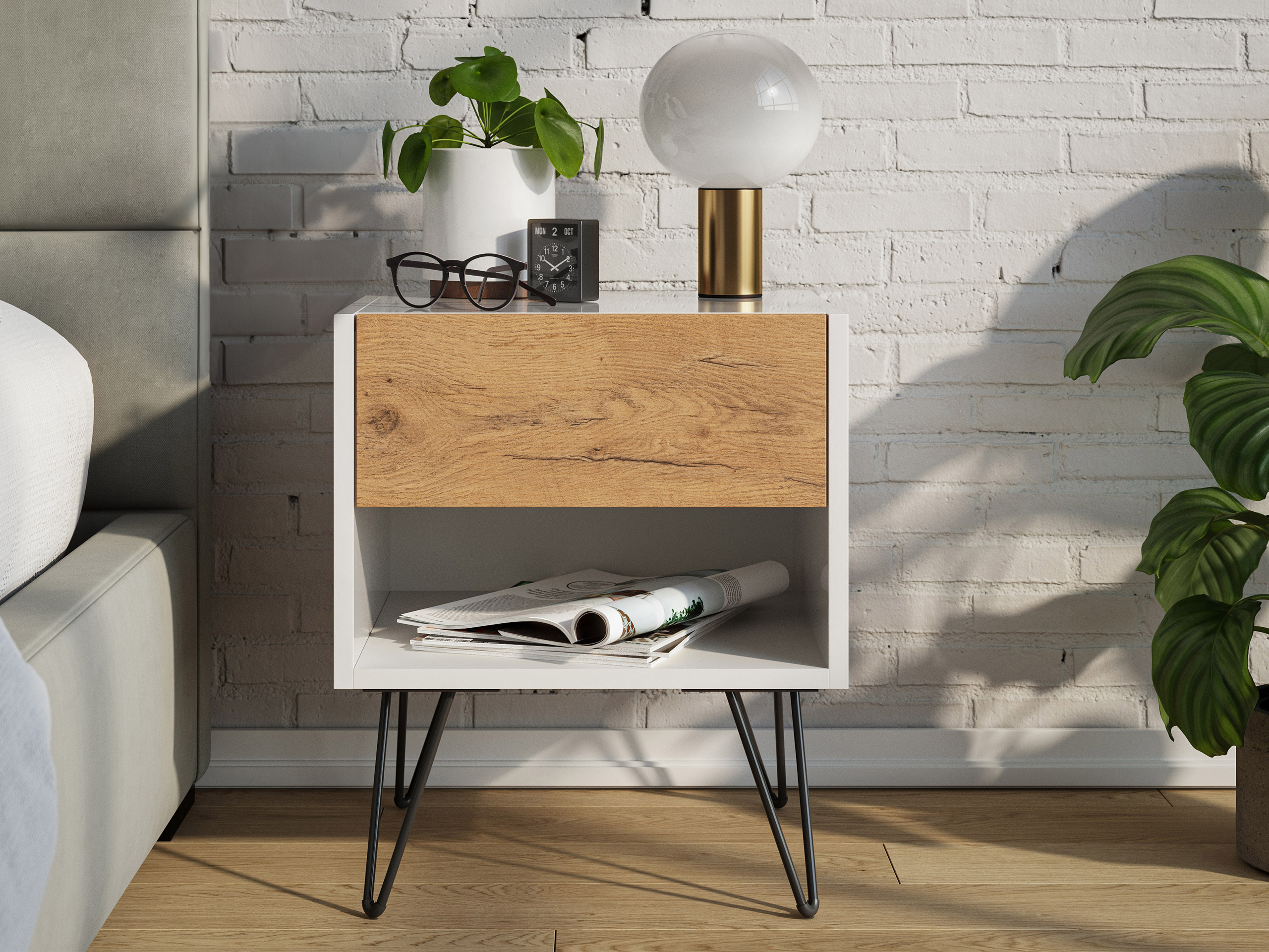 2er Set Nachttisch Dion 40cm SoftClose stehend Weiß & Eiche Front