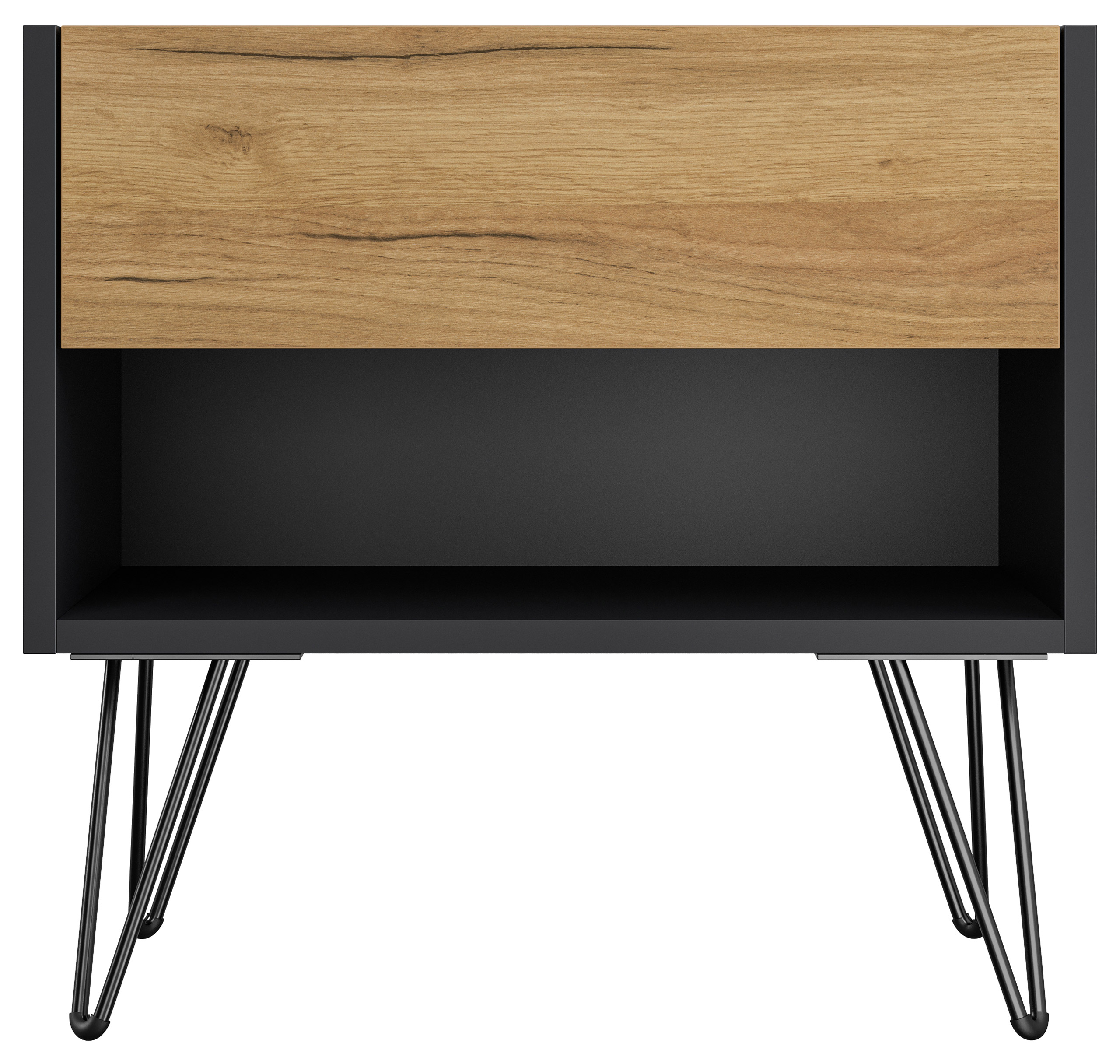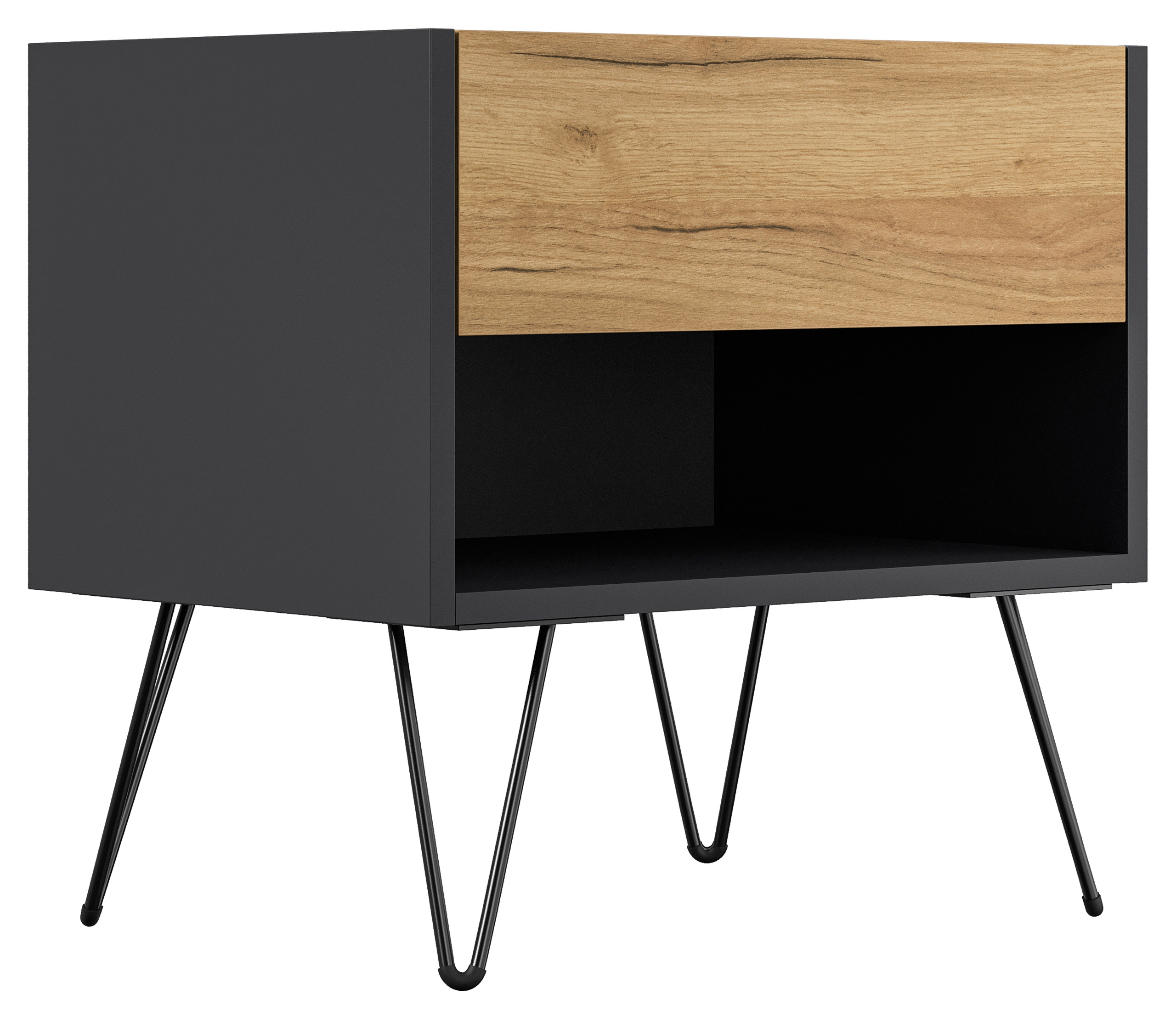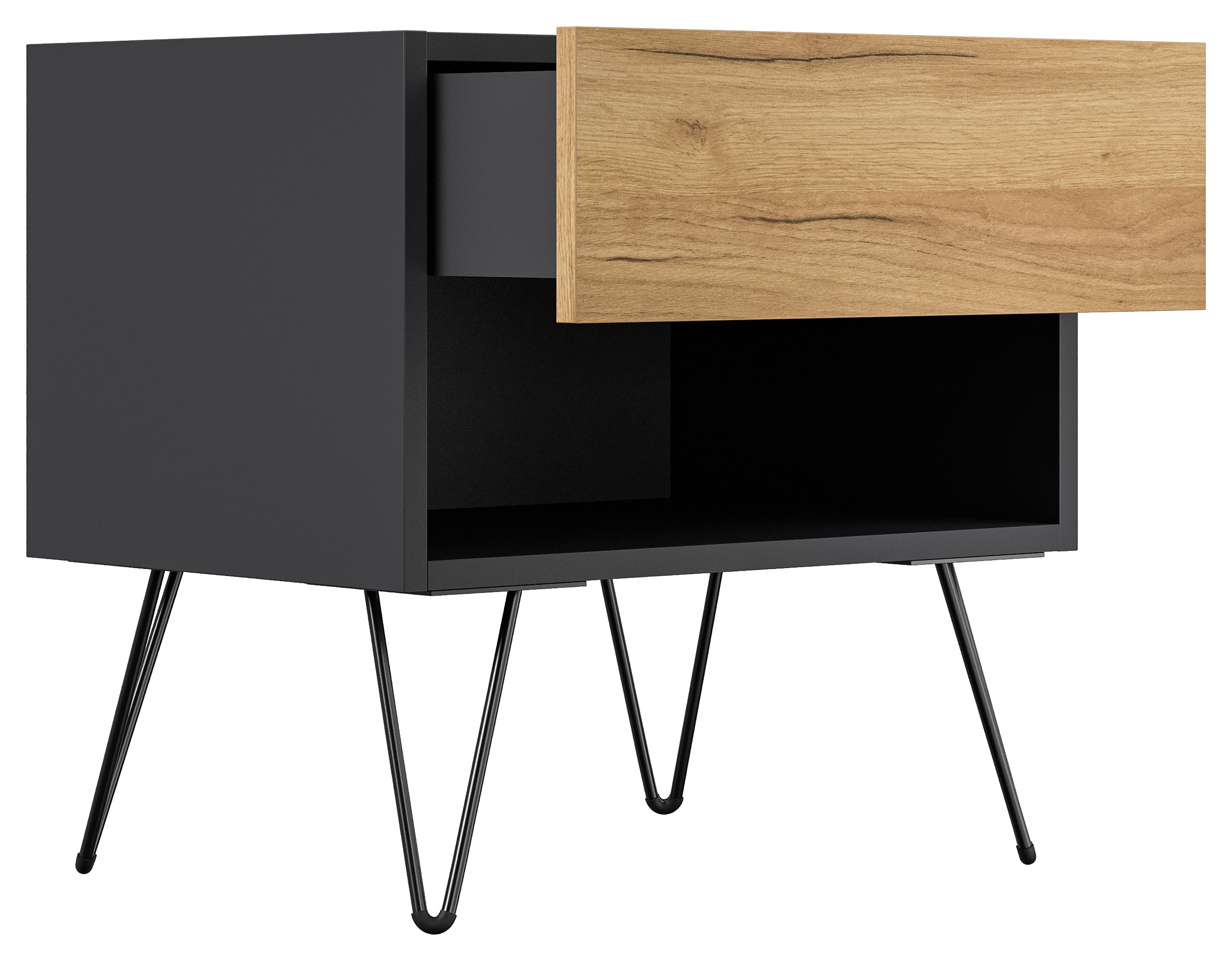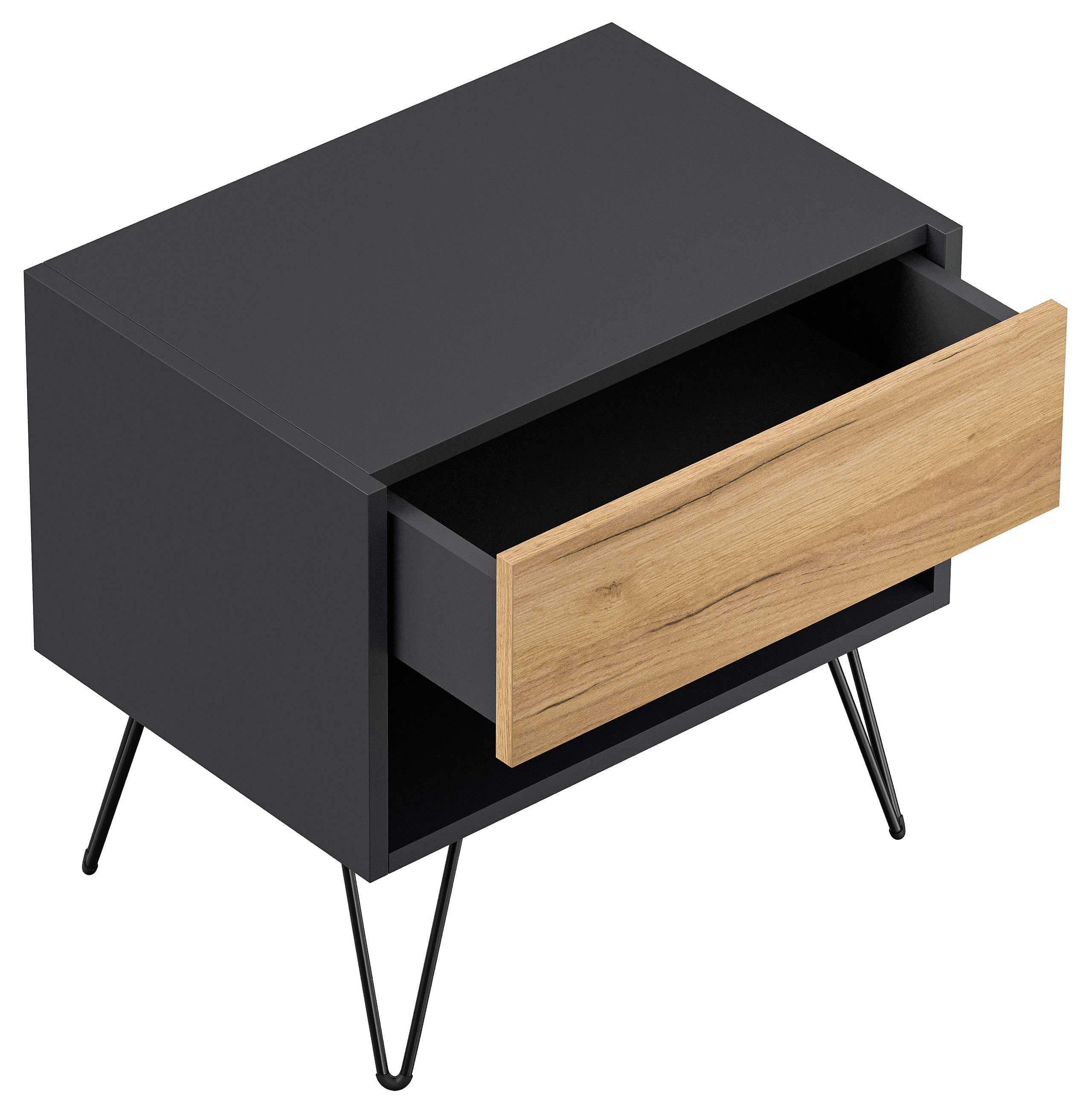 2er Set Nachttisch Dion 50cm SoftClose stehend Grafit & Eiche Front