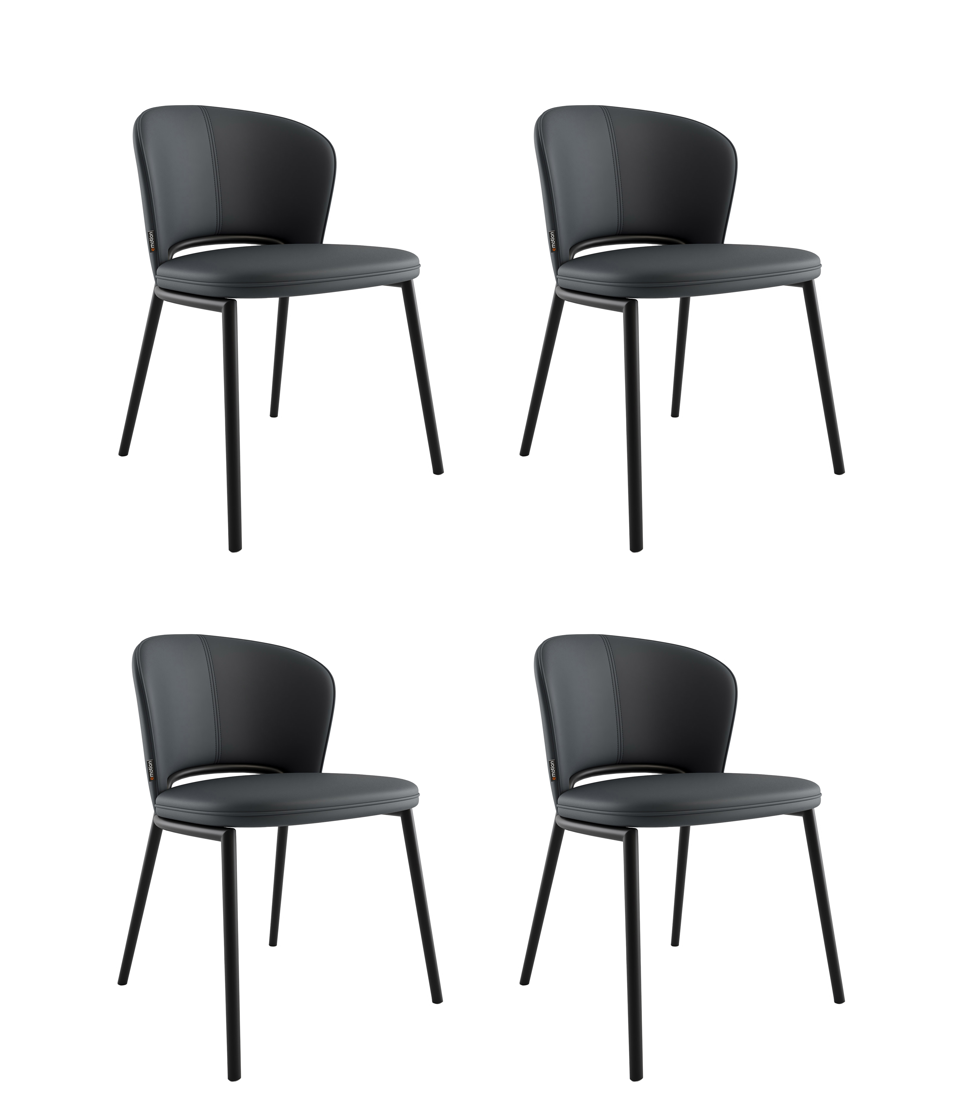 4er Set Esszimmerstuhl Küchenstuhl Dean Kunstleder dunkelgrau Metallbeine