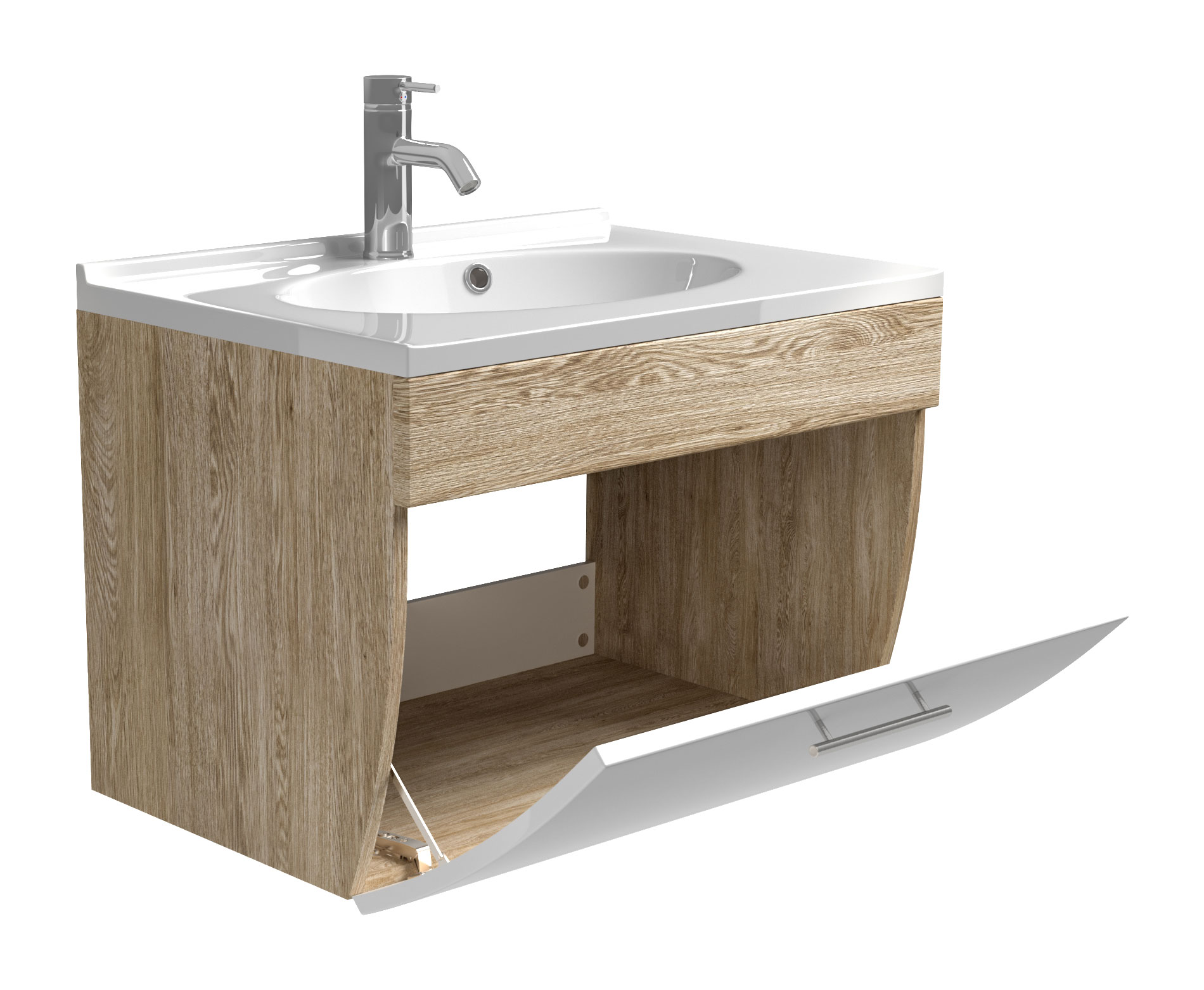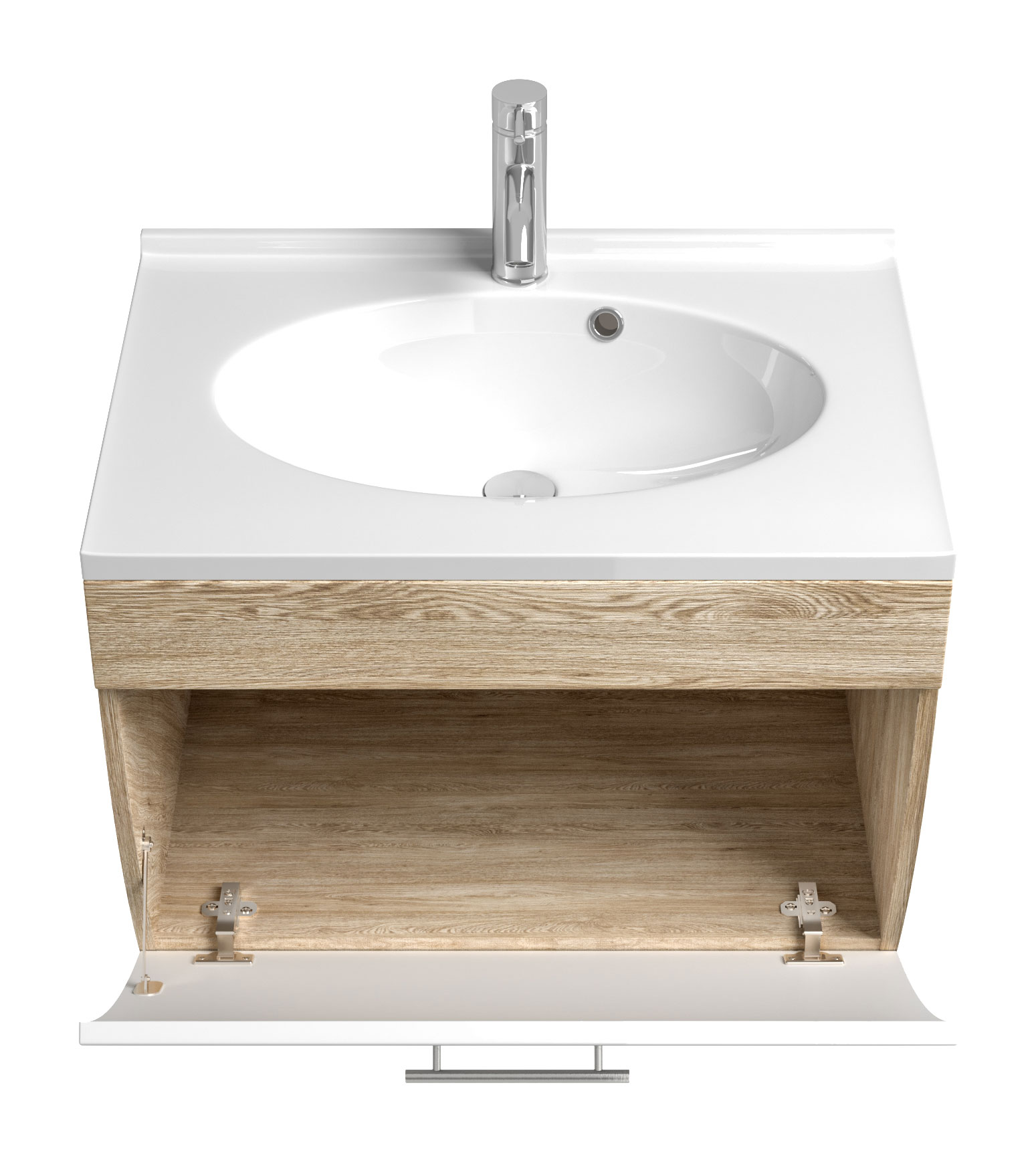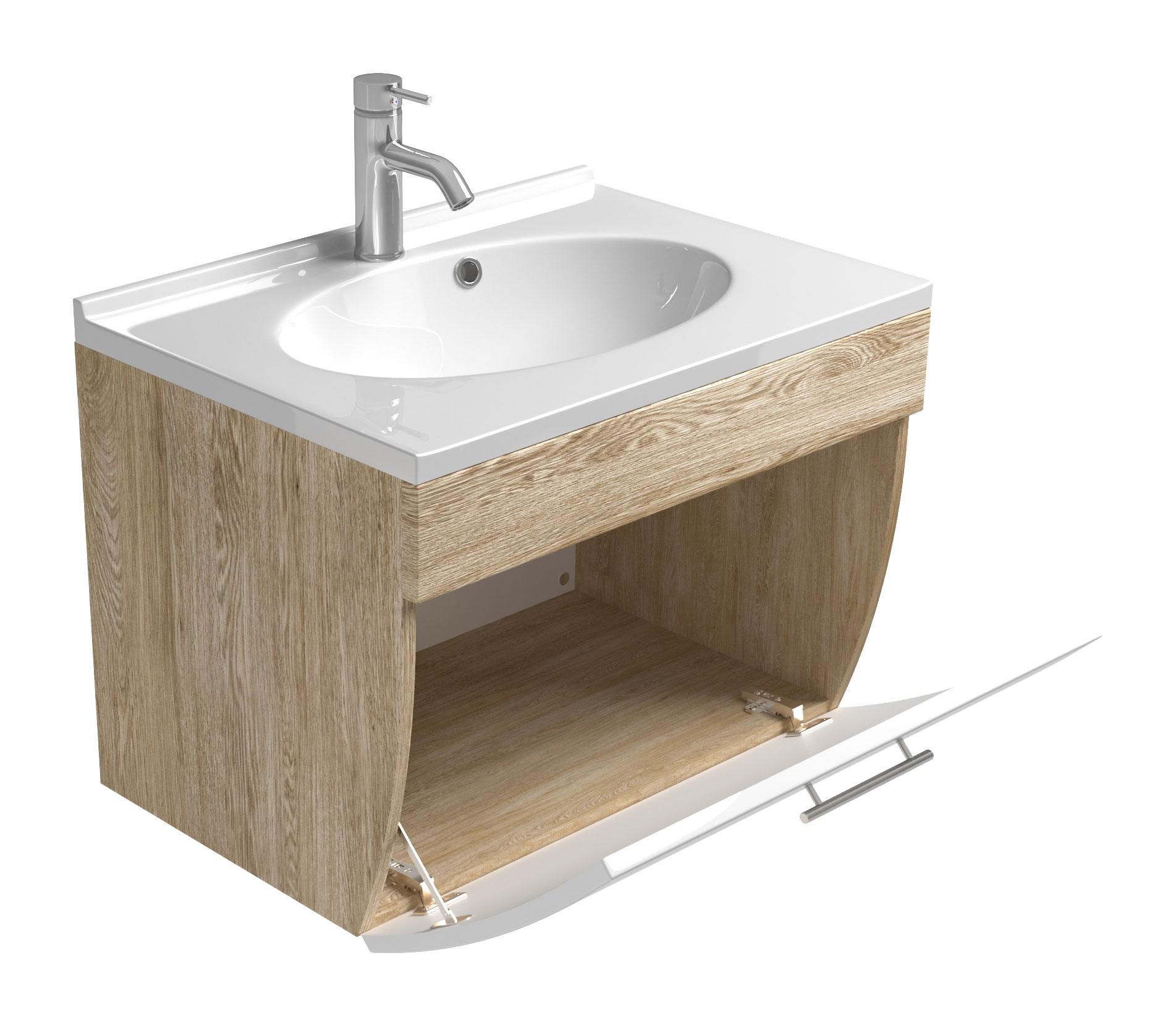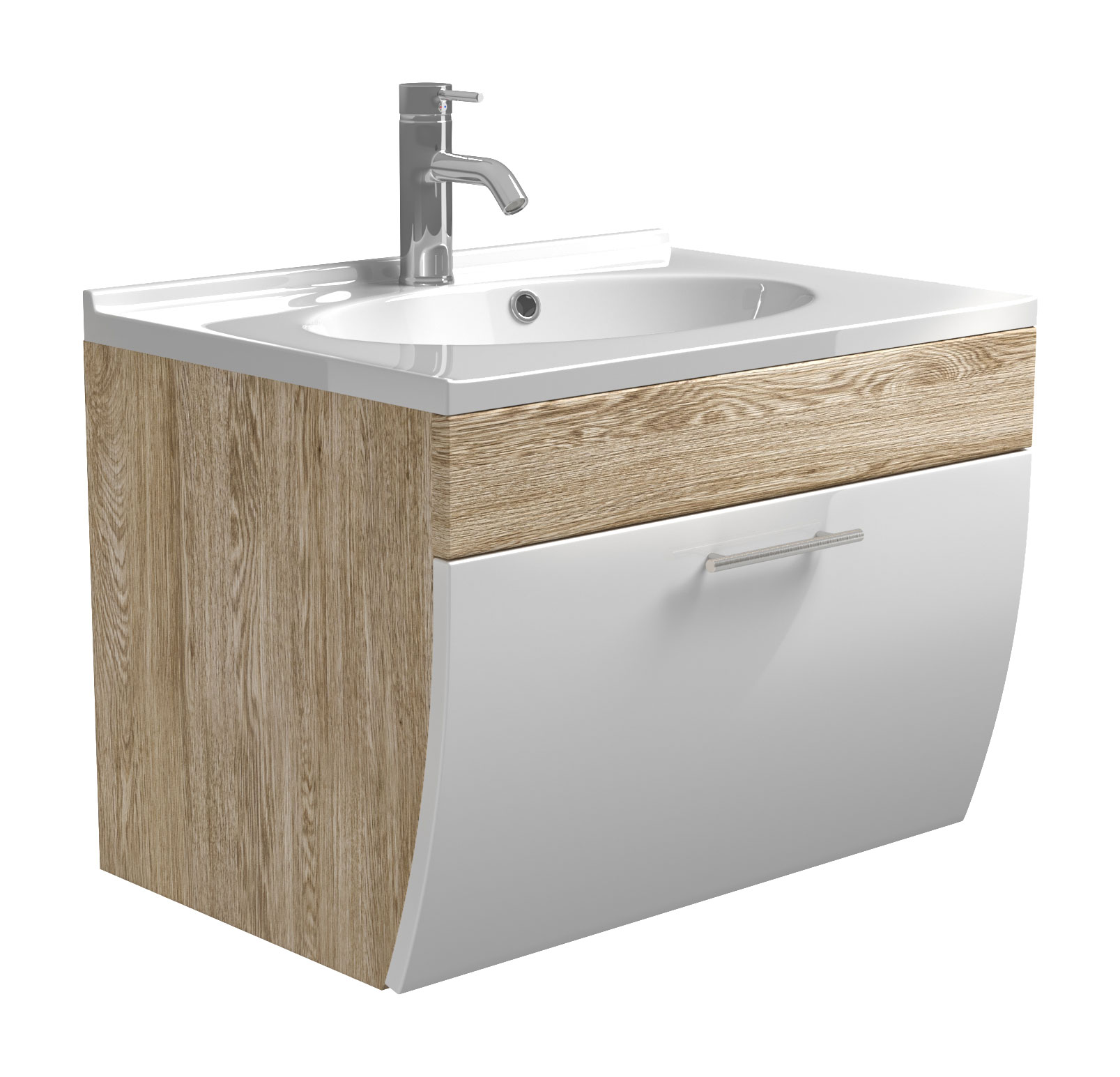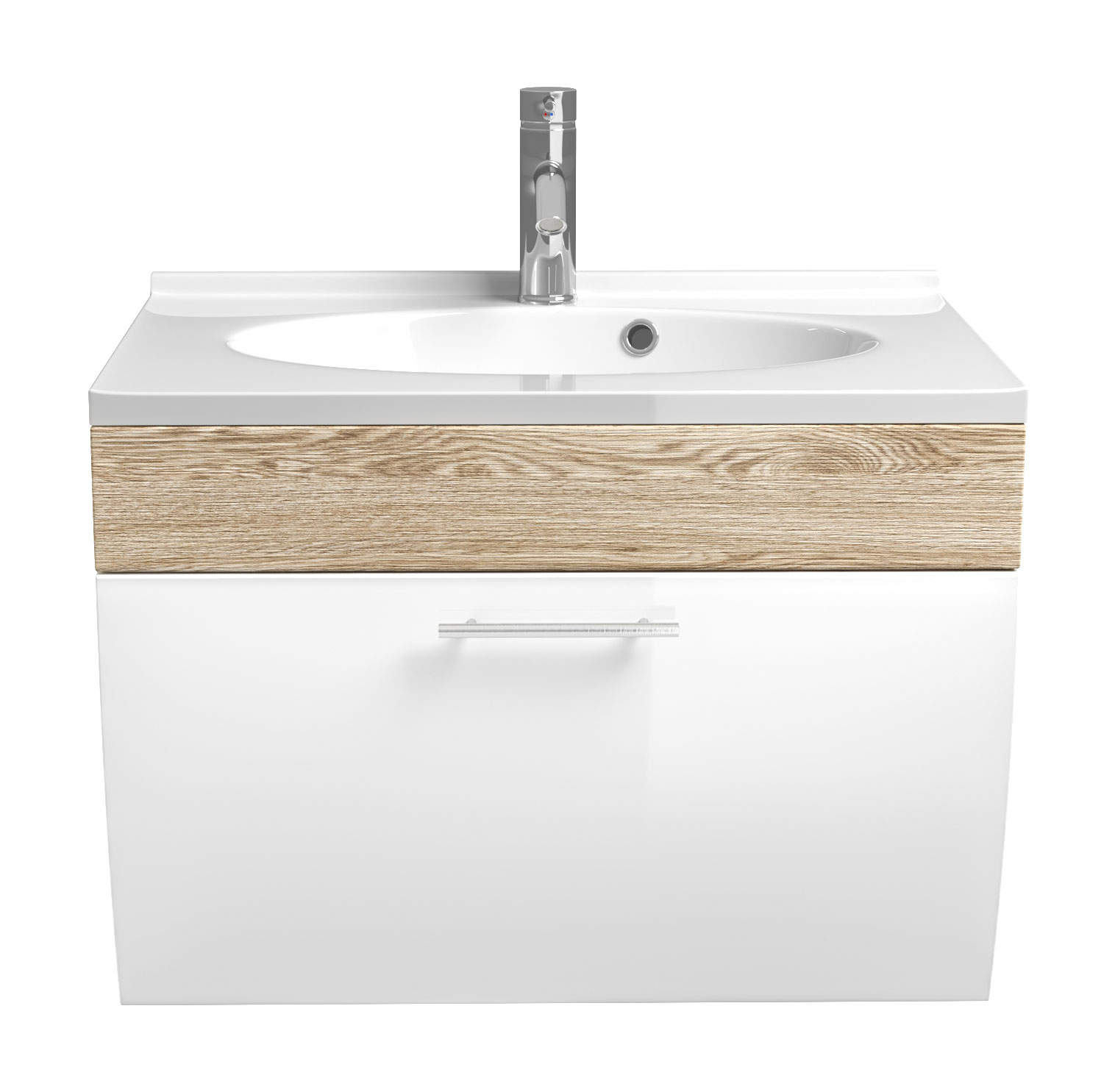 AKTION-SALE Badmöbel Prio 70cm mit weißer Klappe & eiche hell Korpus