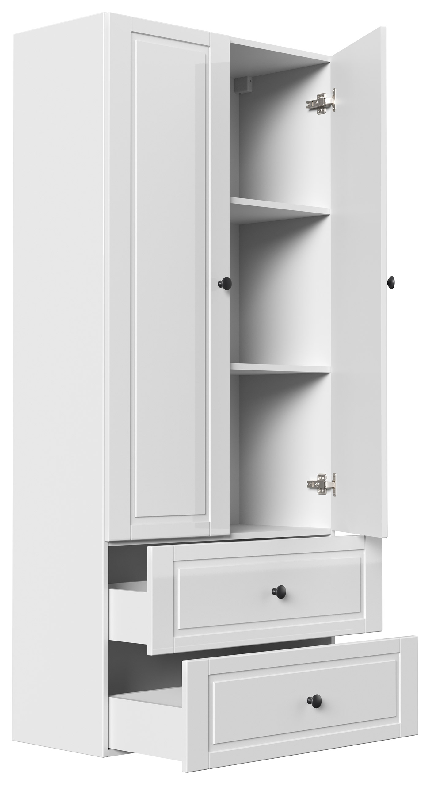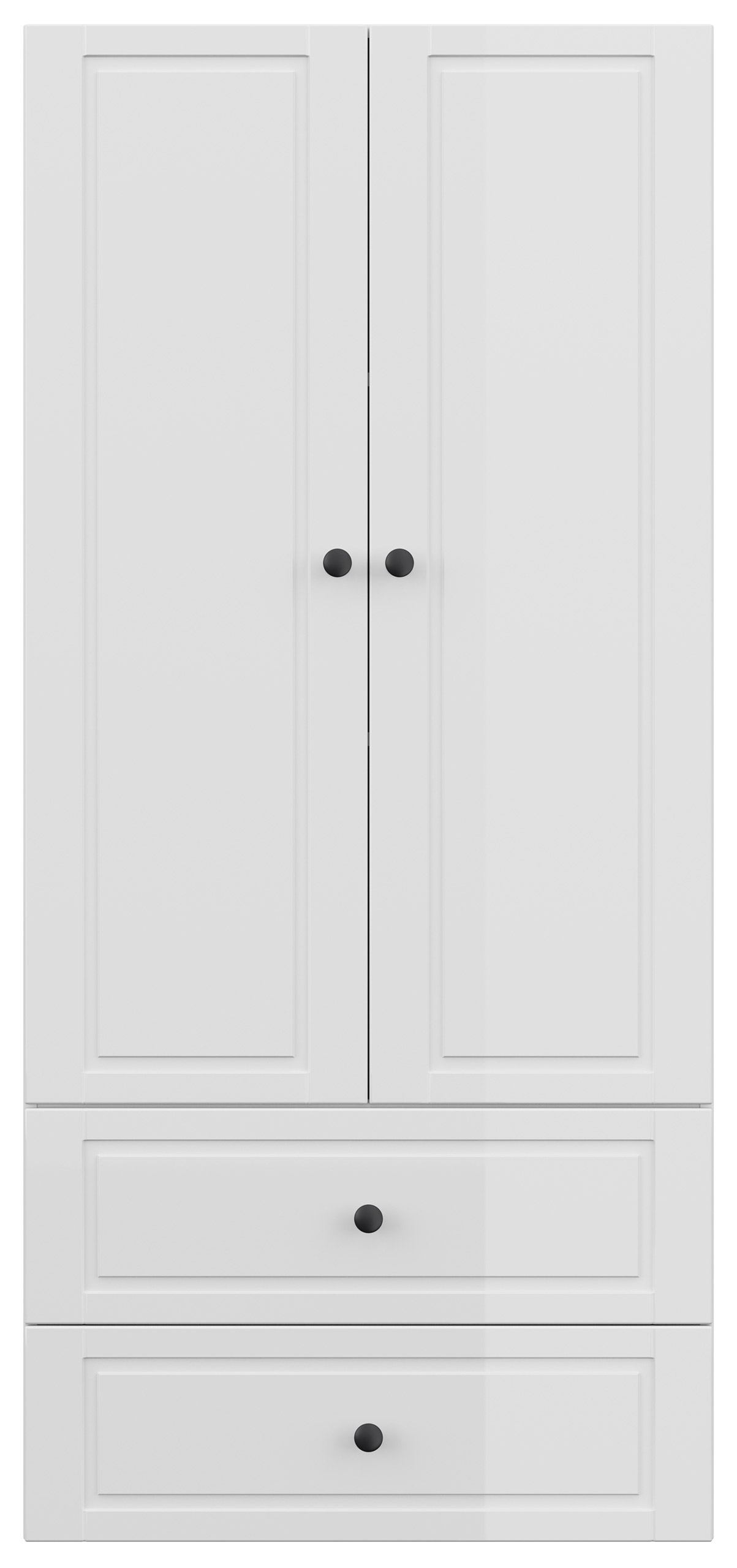 Der Schrank ist mit Knopfgriffen ausgestattet.