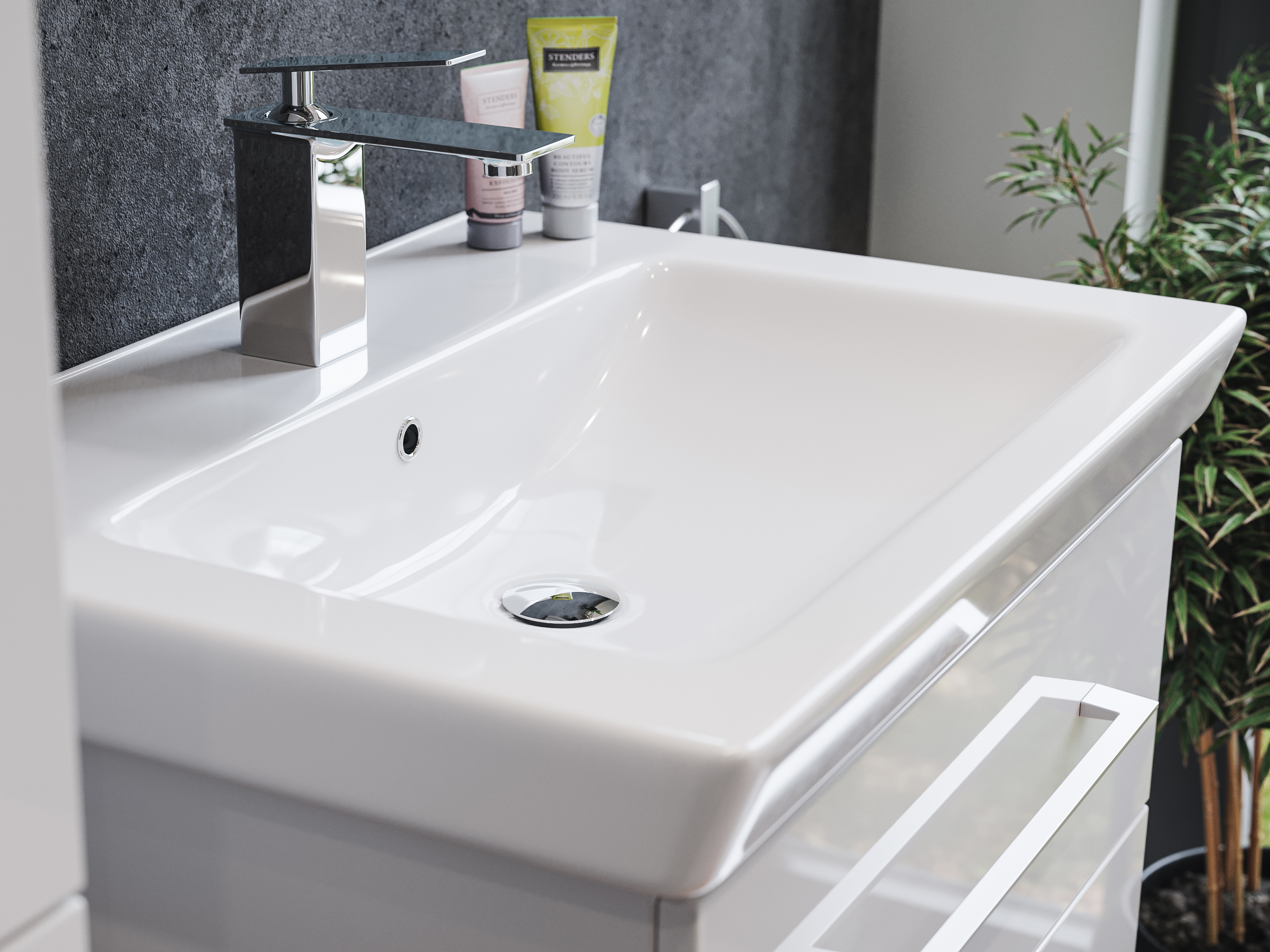 Ein herausragendes Qualitätsmerkmal unserer Badmöbel sind die hervorragend verarbeiteten Oberflächen. Die Beschichtung ist - sowohl über die Frontseite, als auch über die sichtbaren Seitenteile - über die Kanten und Ecken tiefgezogen und weich abgerundet.