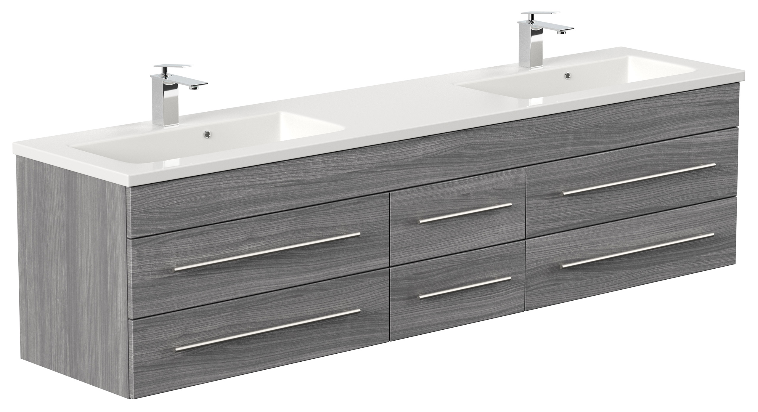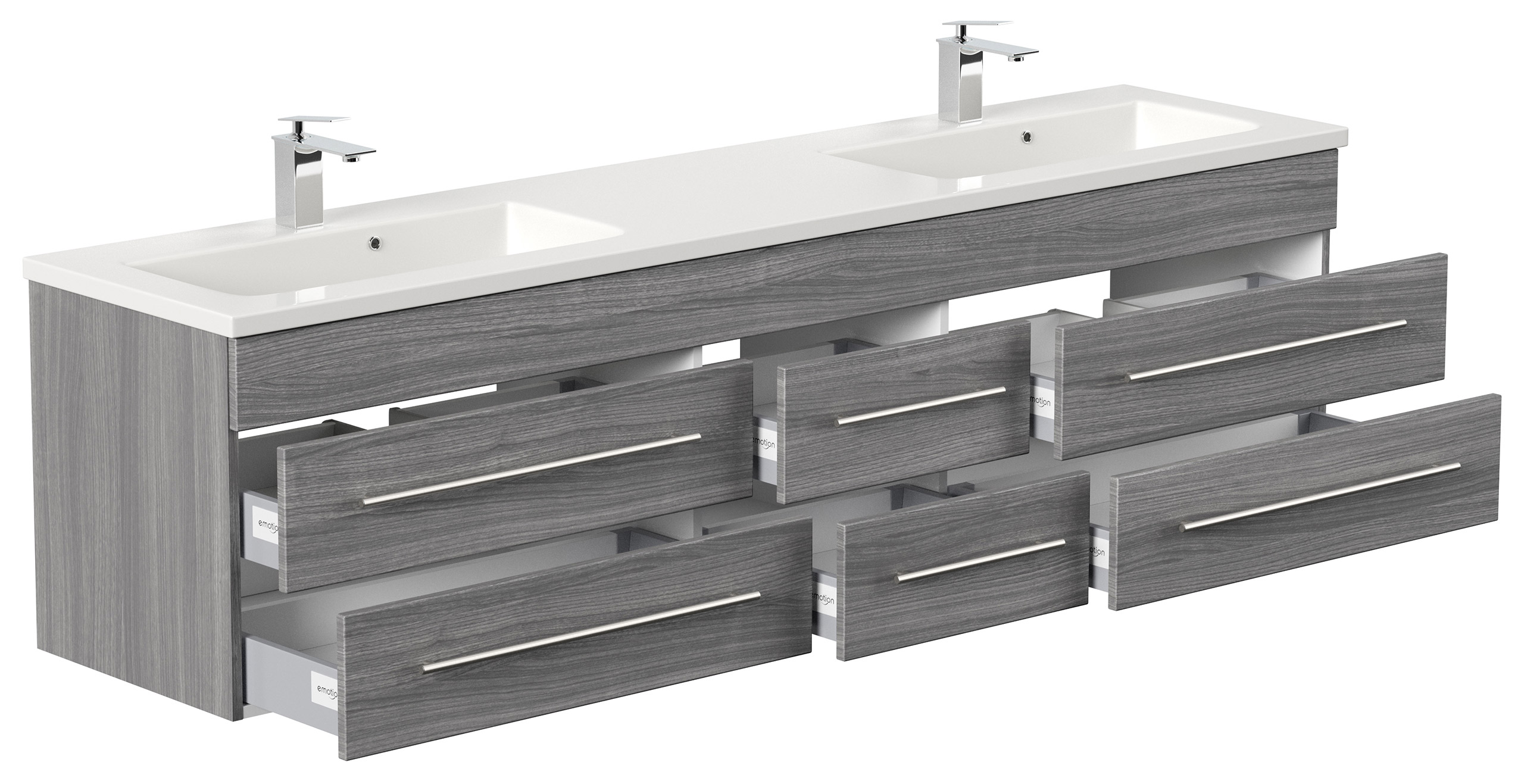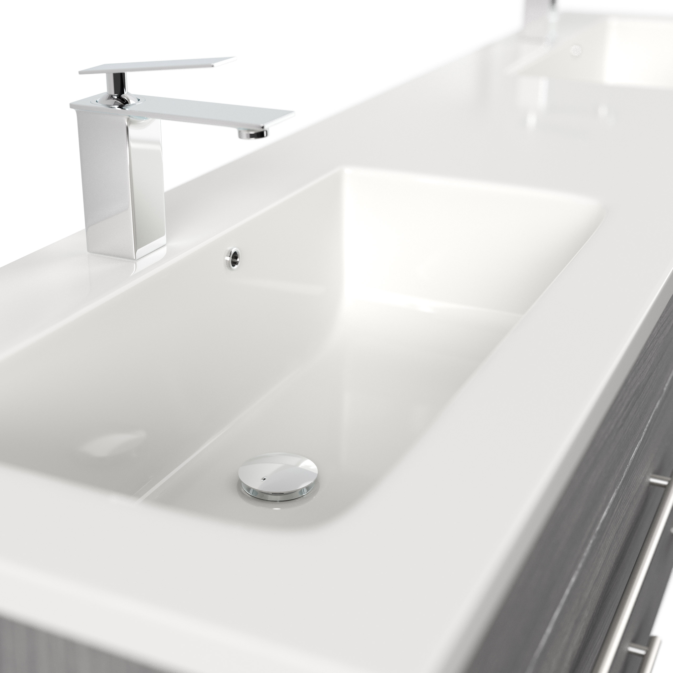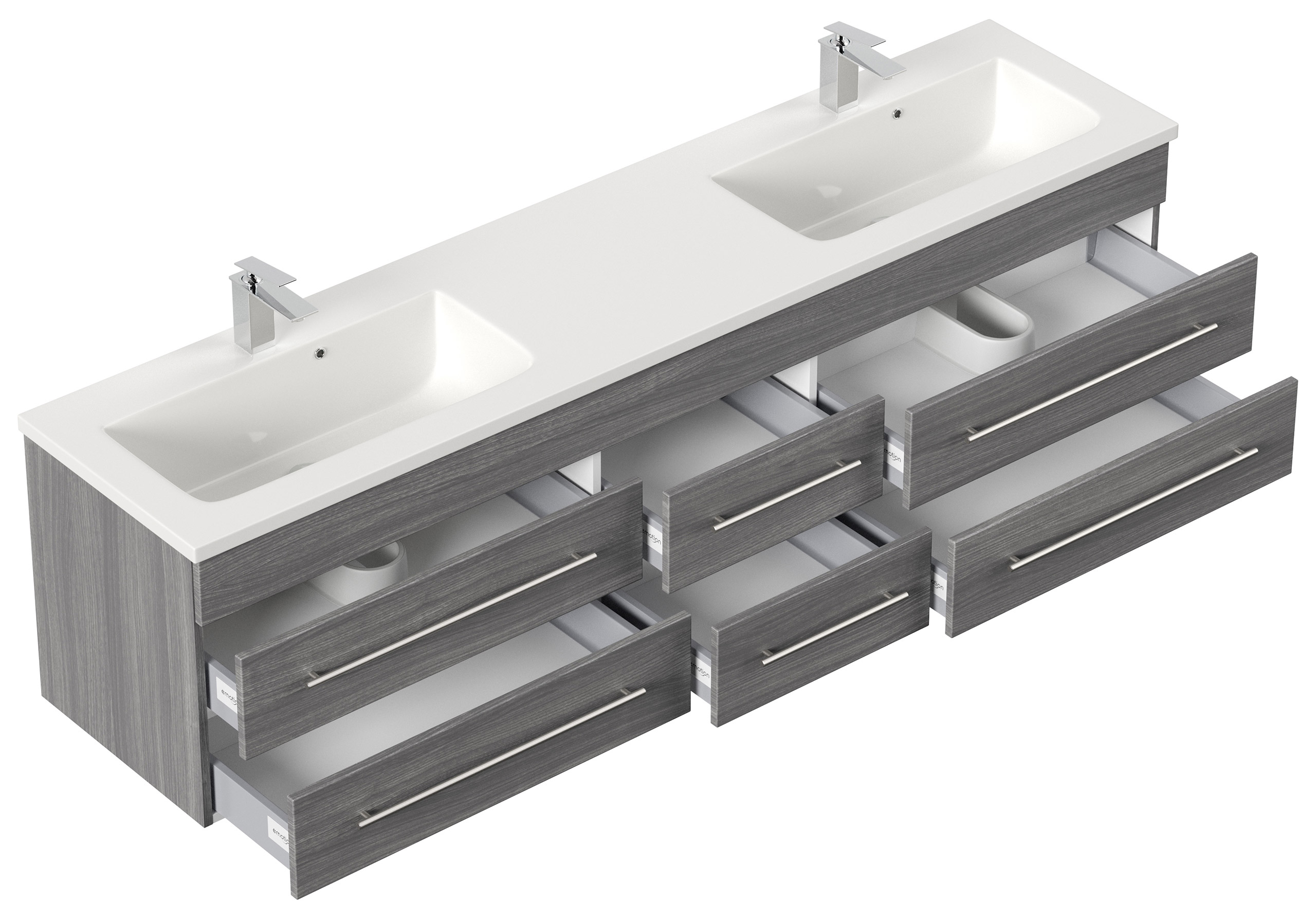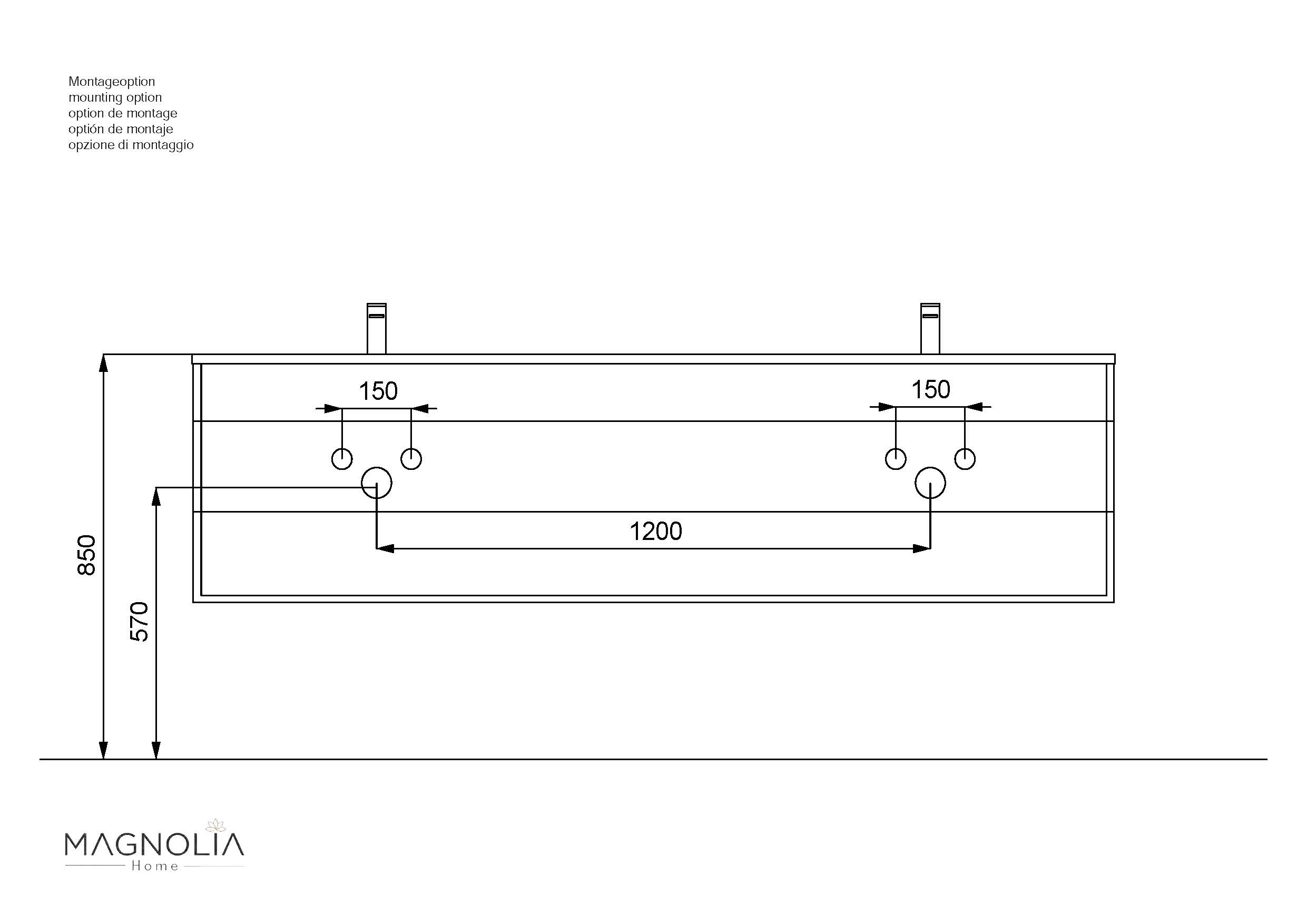 Magnolia bietet exklusiv dieses Sondermaß Ihr neues Badezimmer an. Der mit sechs Vollauszügen ausgestattete Waschtischunterschrank wird Ihr Badezimmer rundum erneuern. Der glänzende Mineralgusswaschtisch besteht aus einem durchgehenden Element mit großer Ablagefläche in der Mitte.