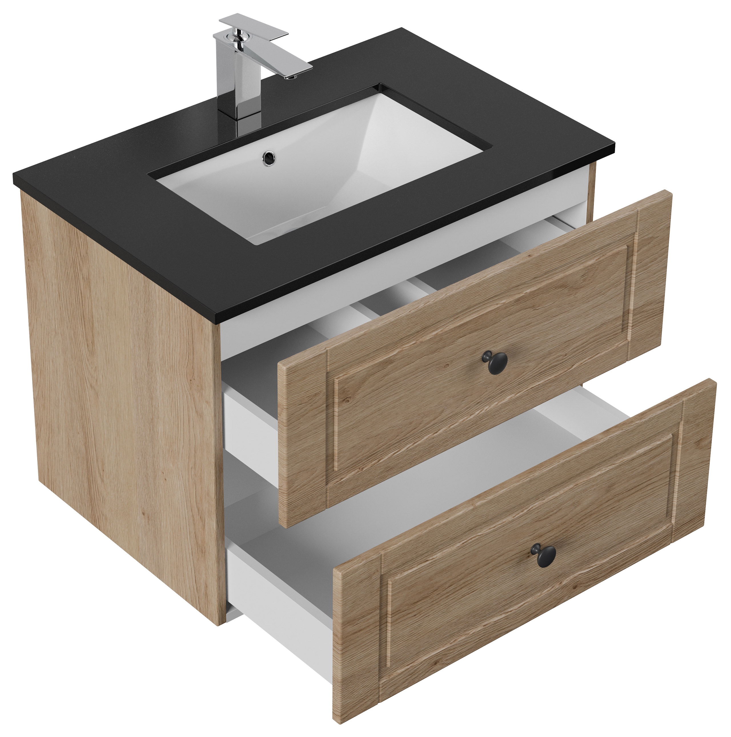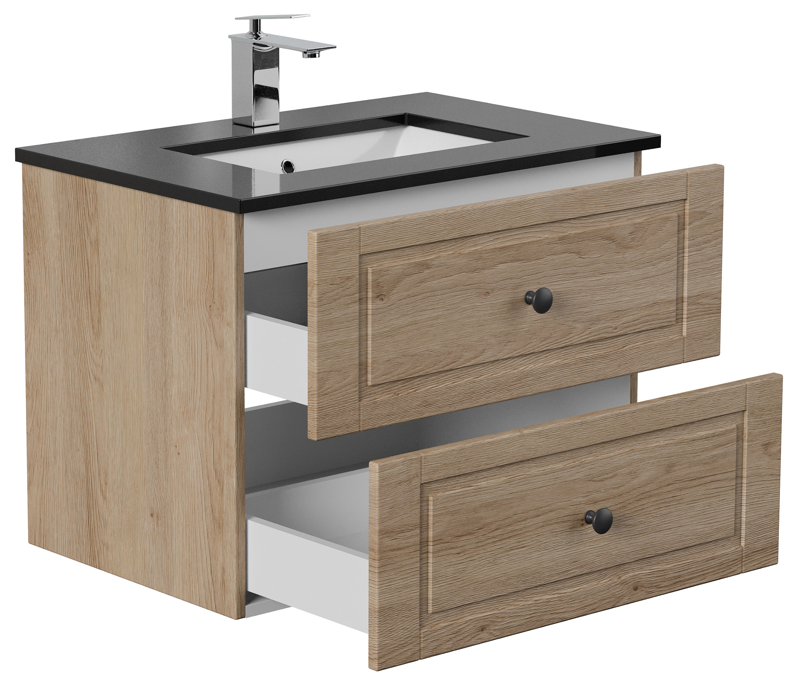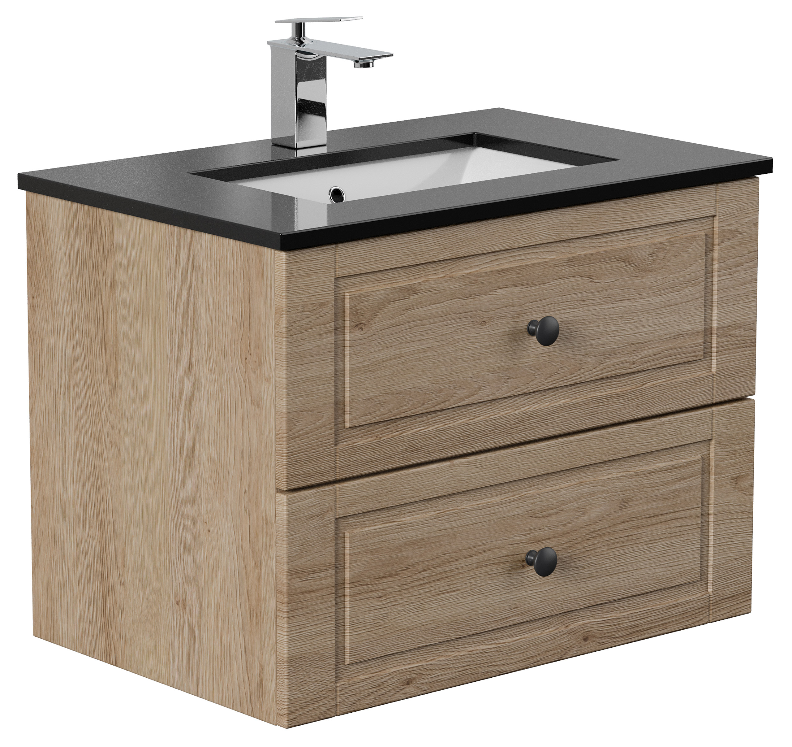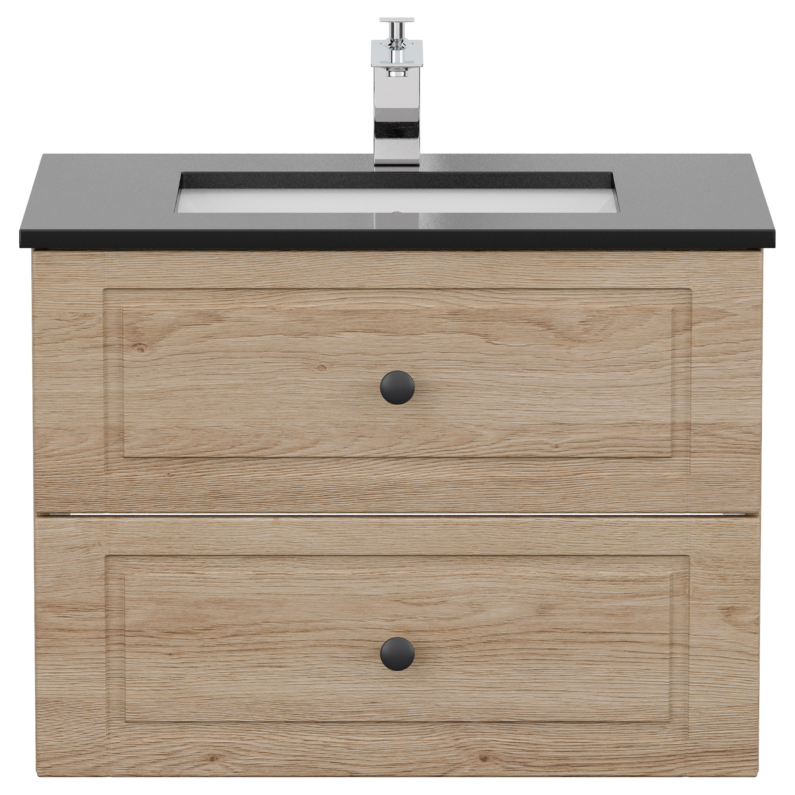 Badmöbel Ely 70 Cottage schwarzes Quarz SoftClose eiche hell