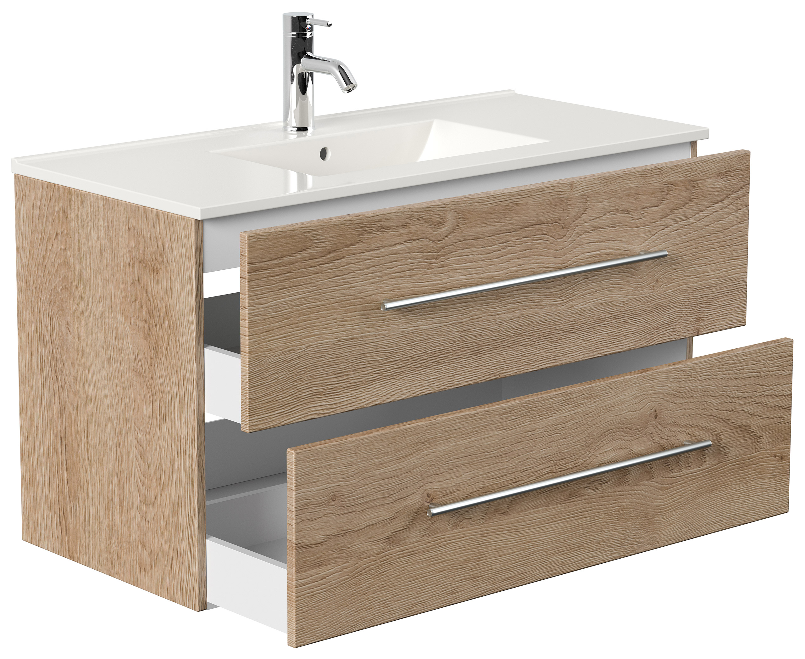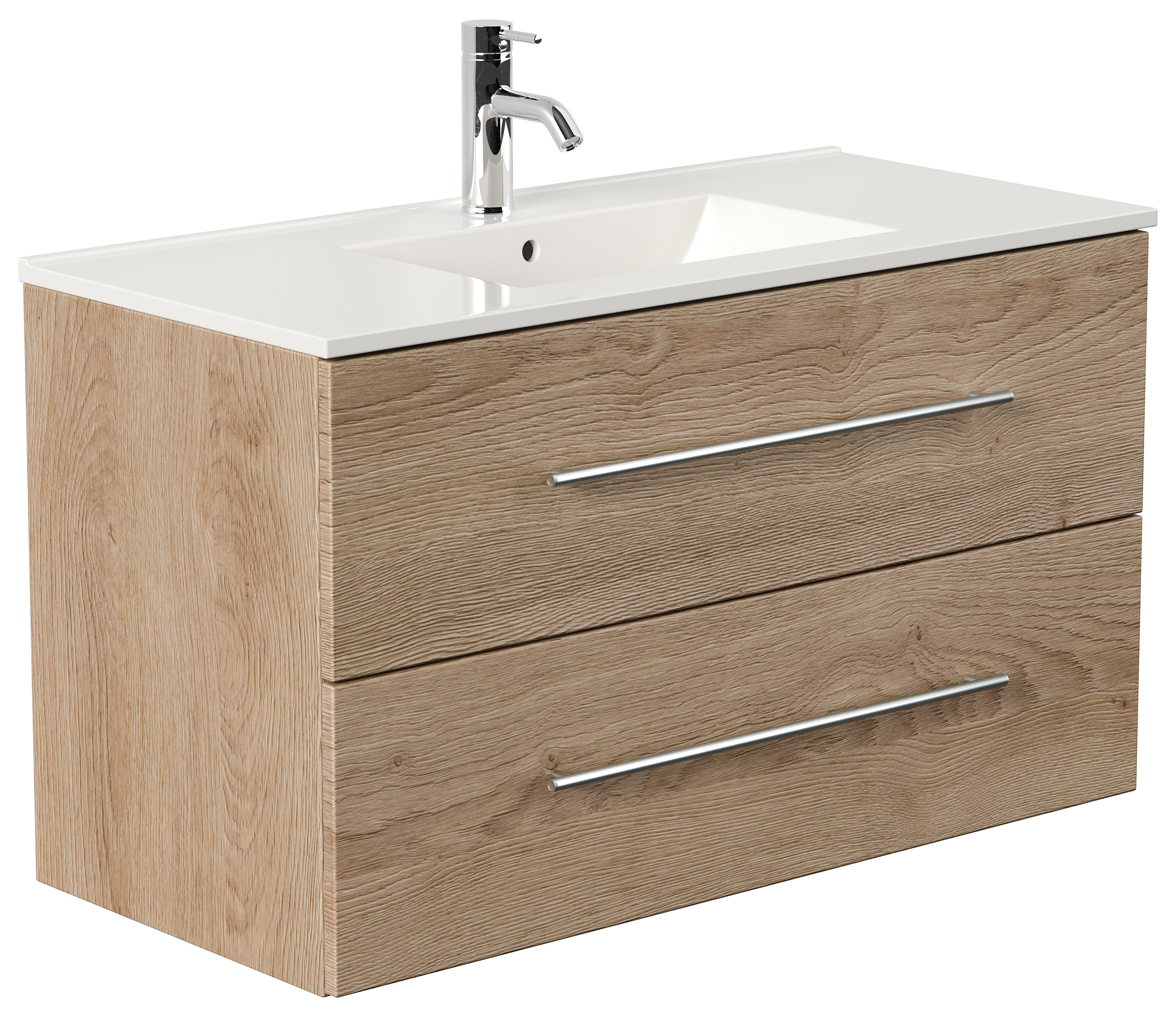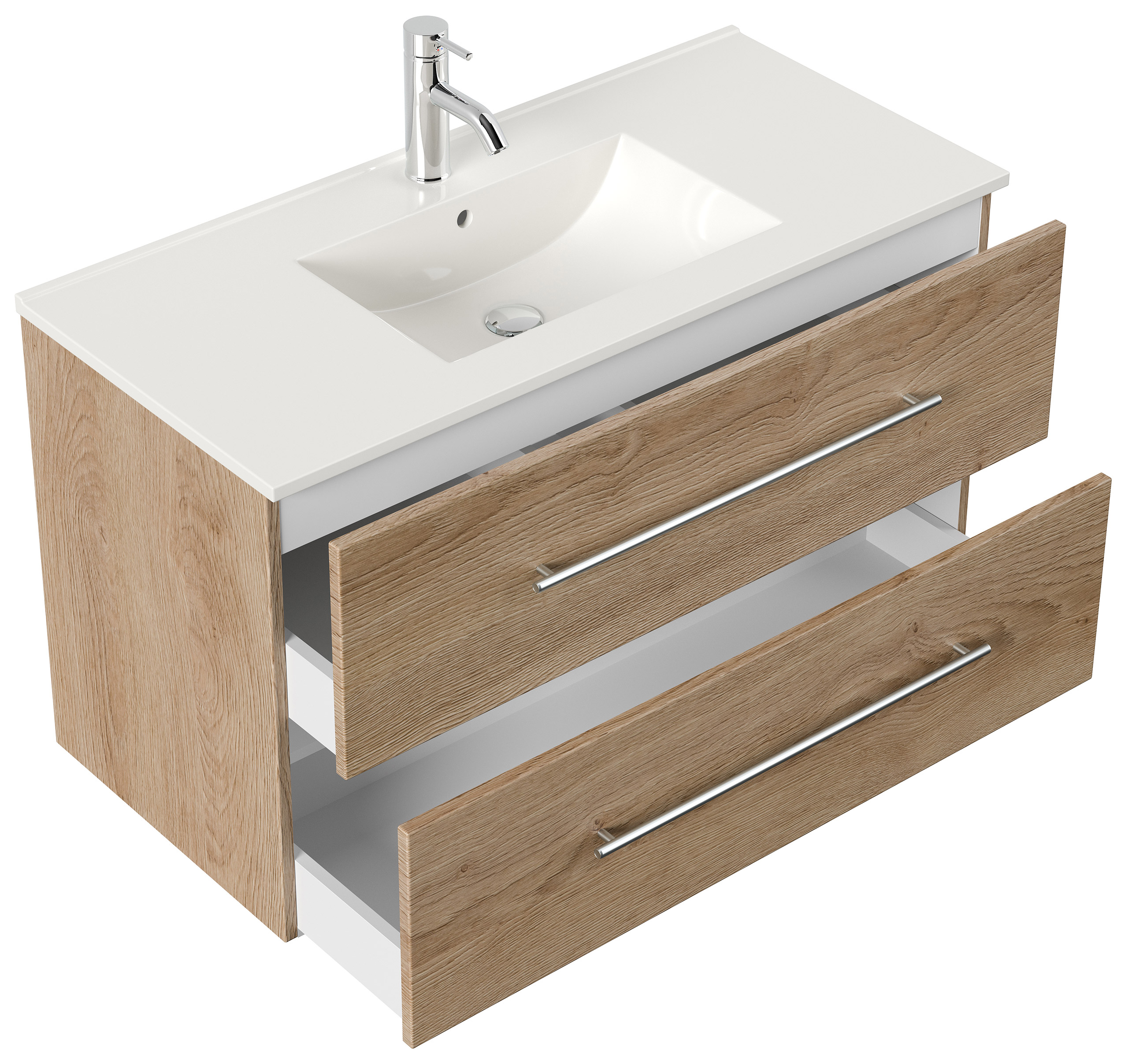 Badmöbel Waschtisch Unterschrank 2 Schubladen mit Softclose (B/H/T) 100/54/46 cm.