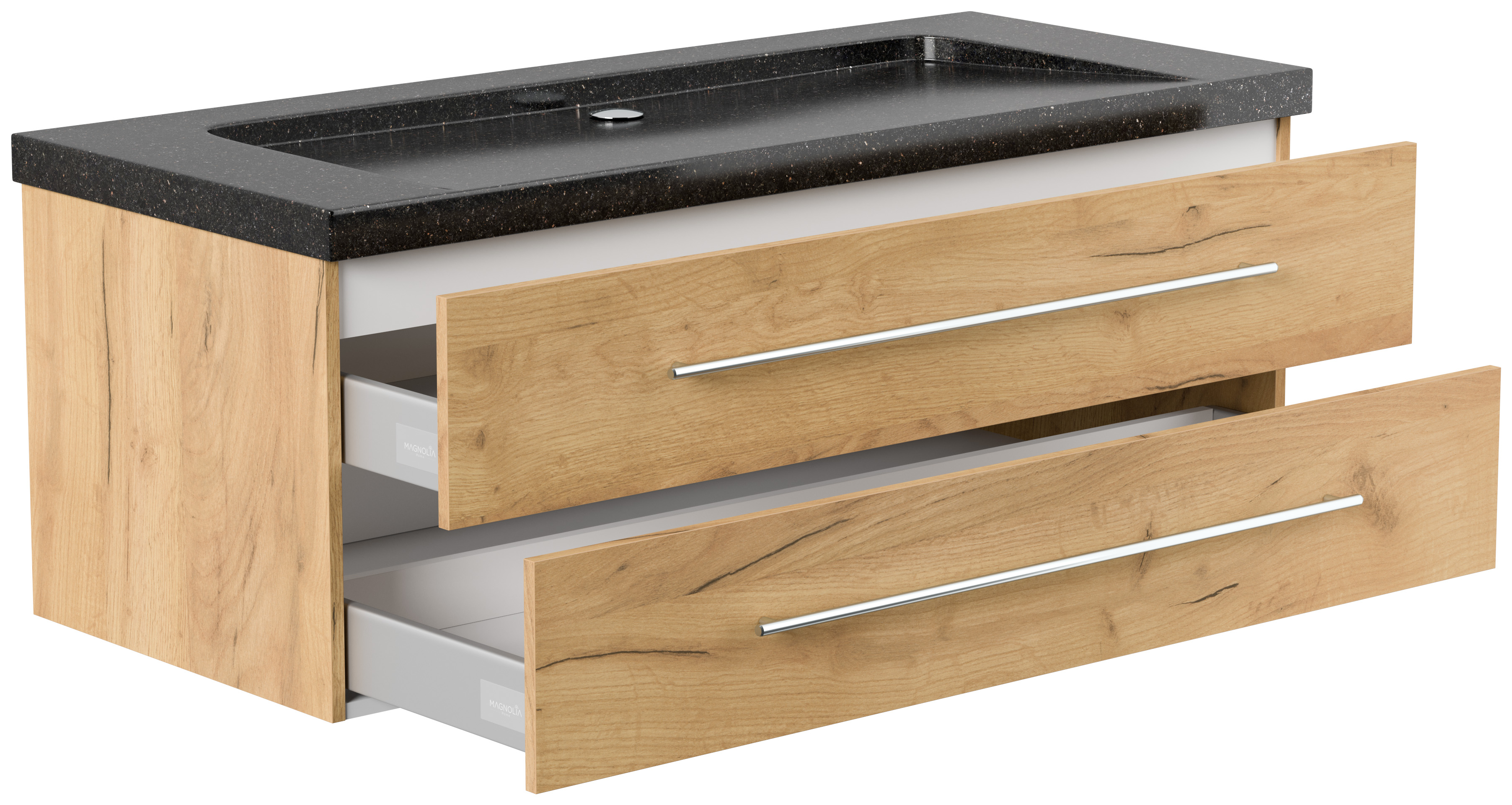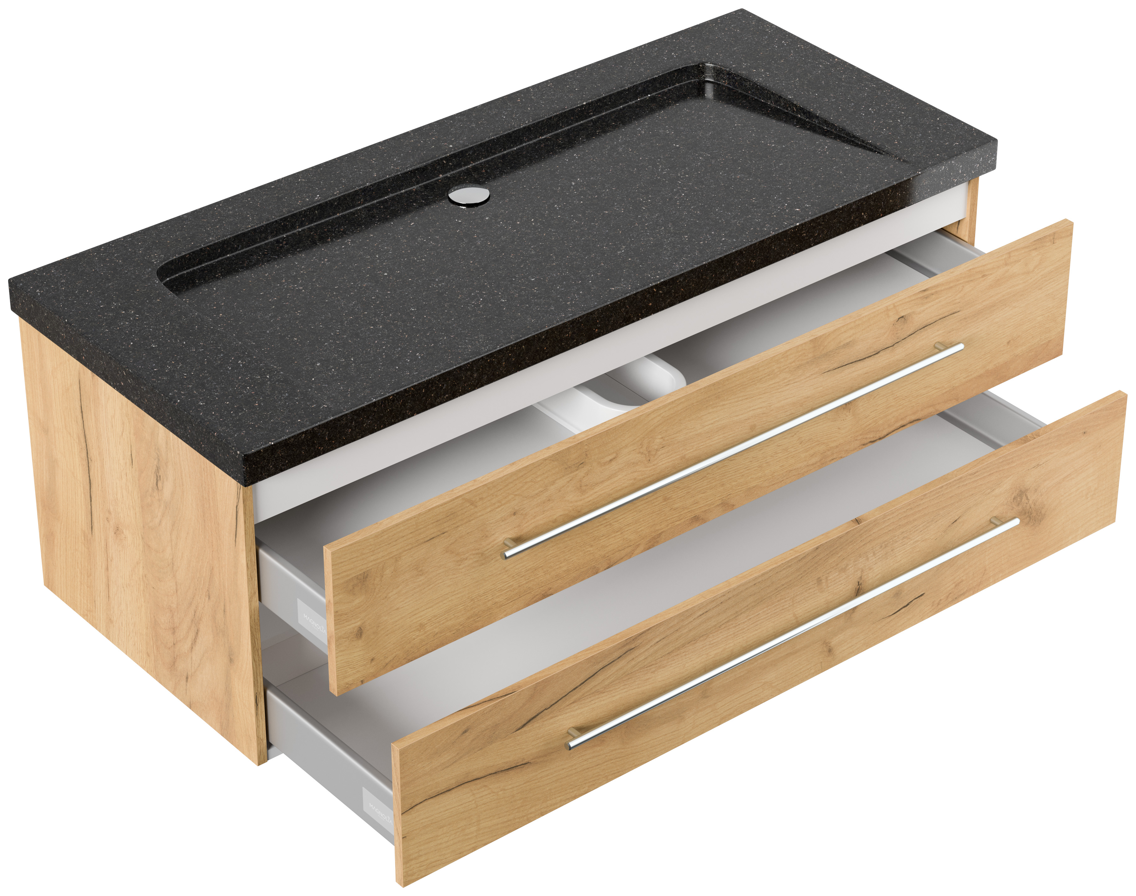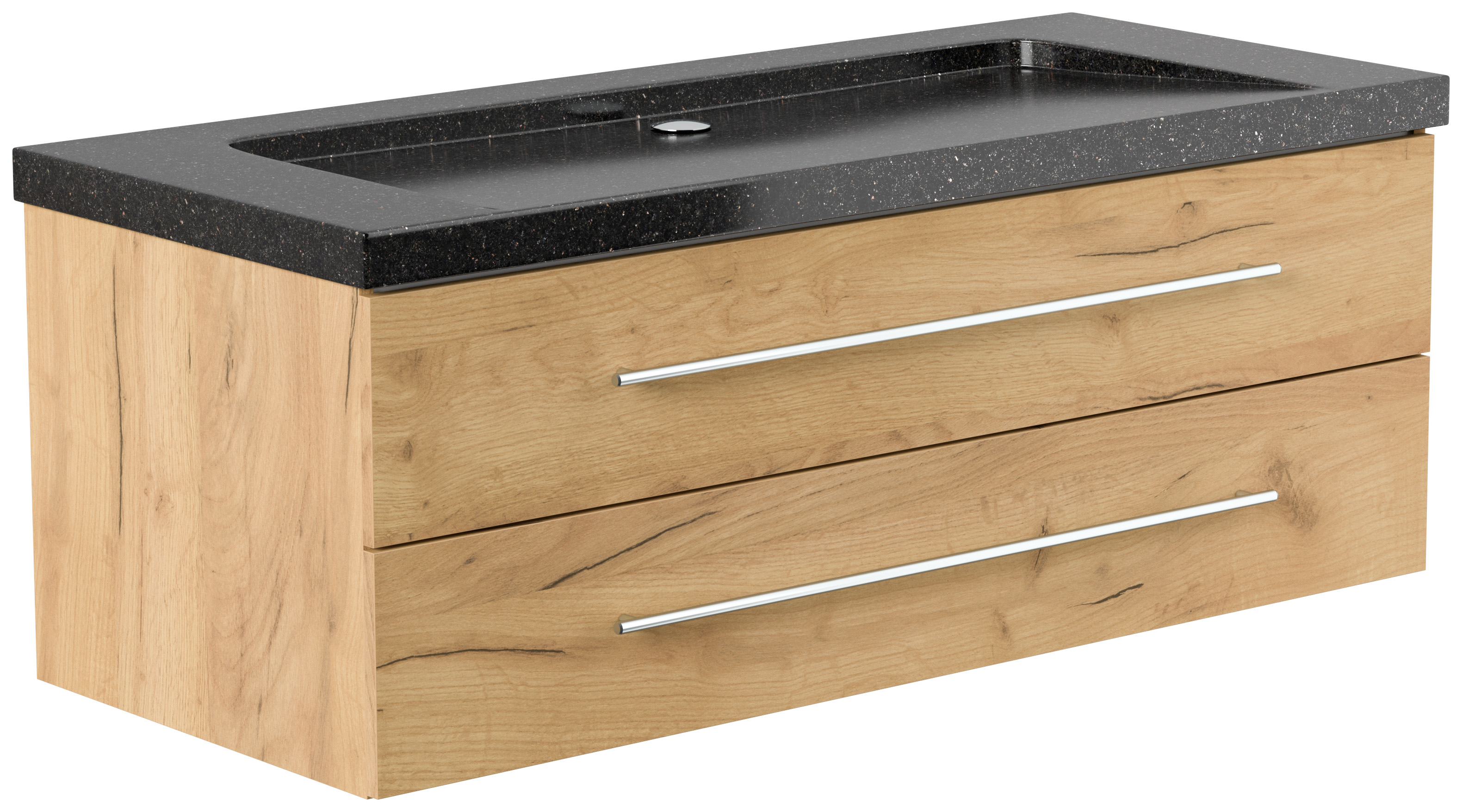 Badmöbel Granit Galaxy Black Damo 130 cm ohne Hahnloch SoftClose eiche gold