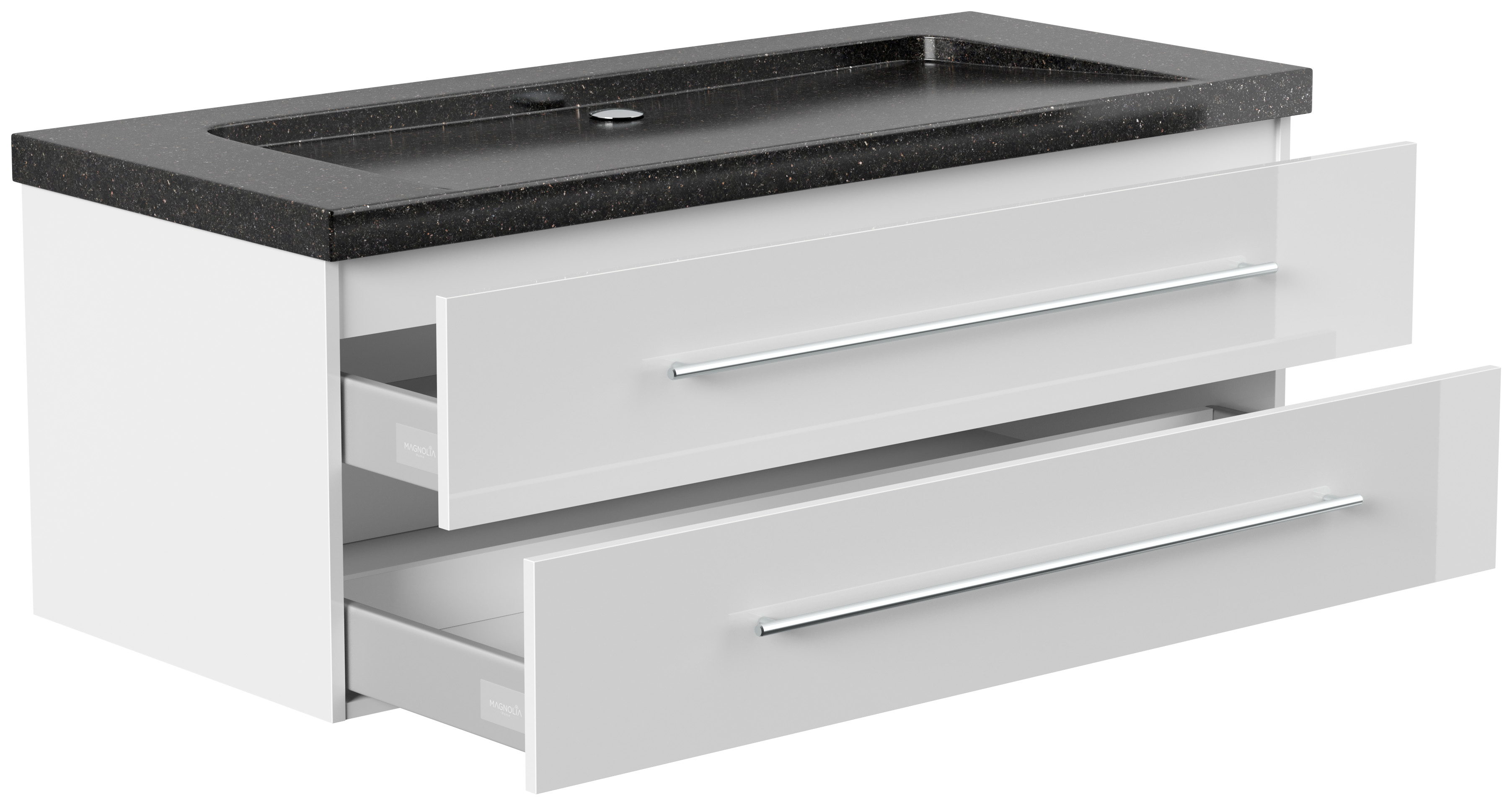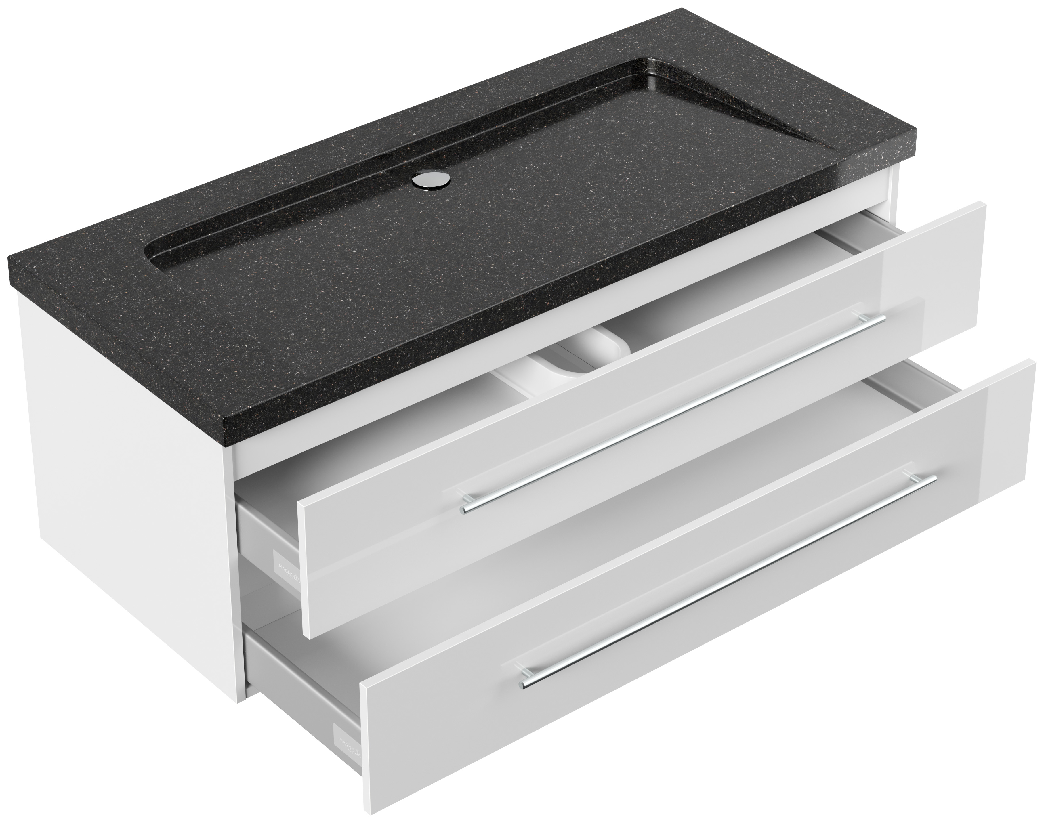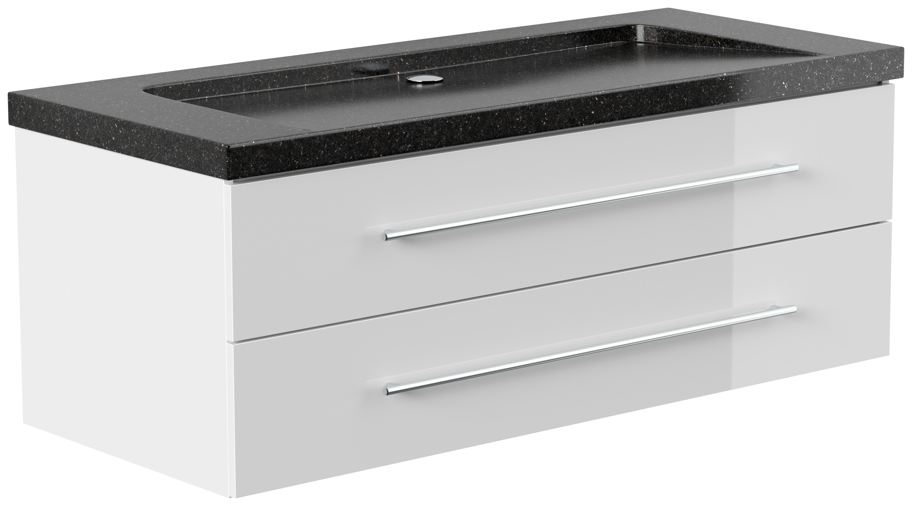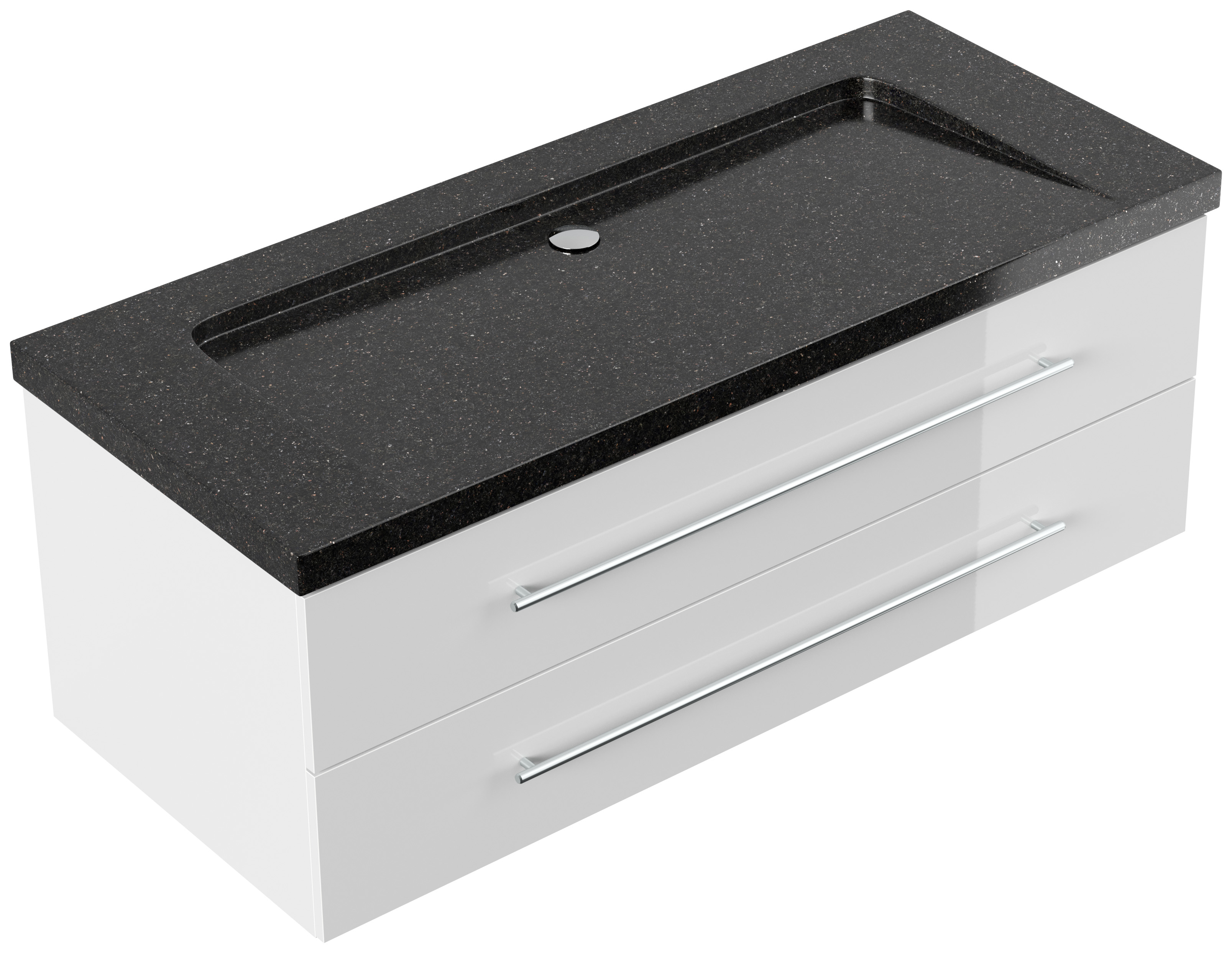 Badmöbel Granit Galaxy Black Damo 130 cm ohne Hahnloch SoftClose weiß hochglanz