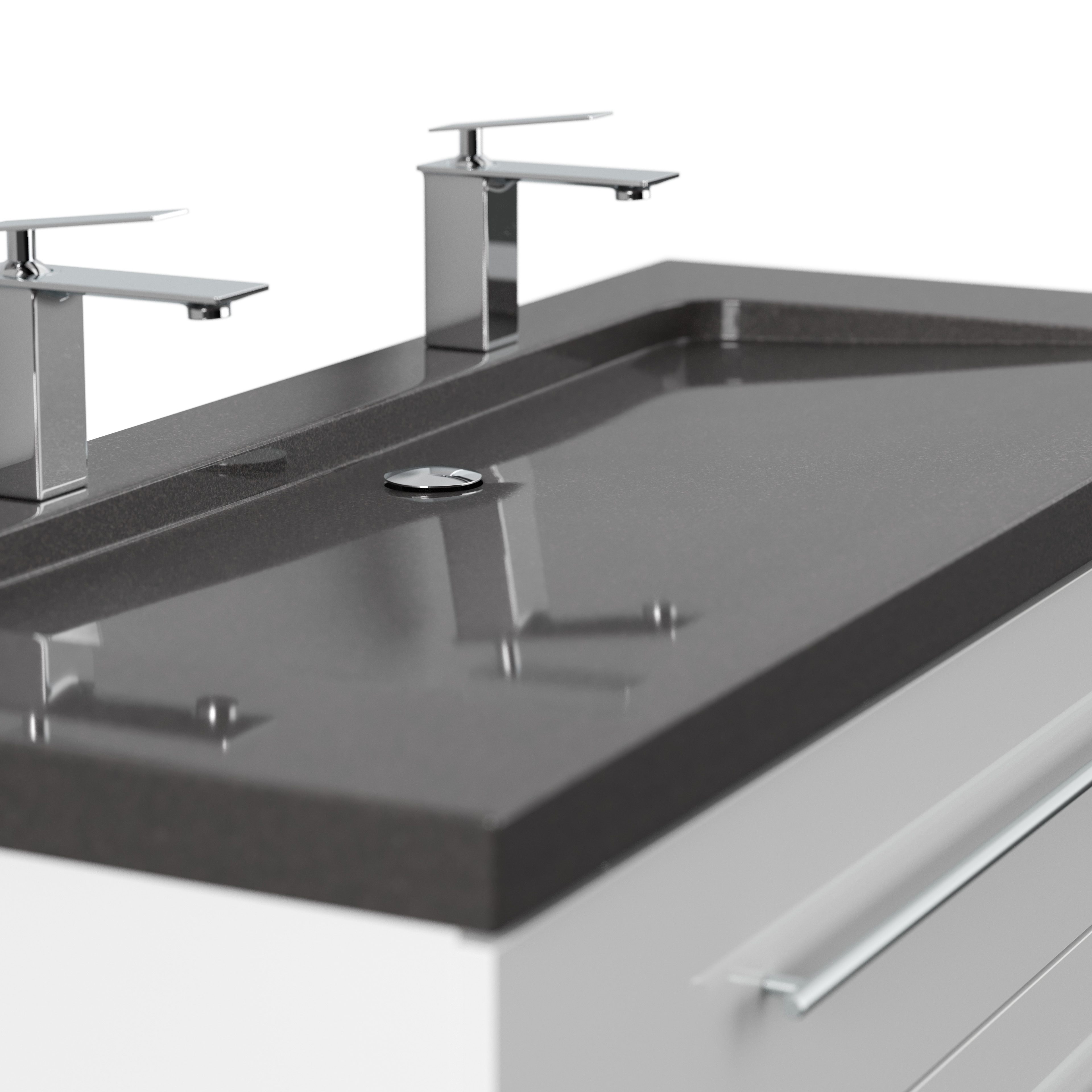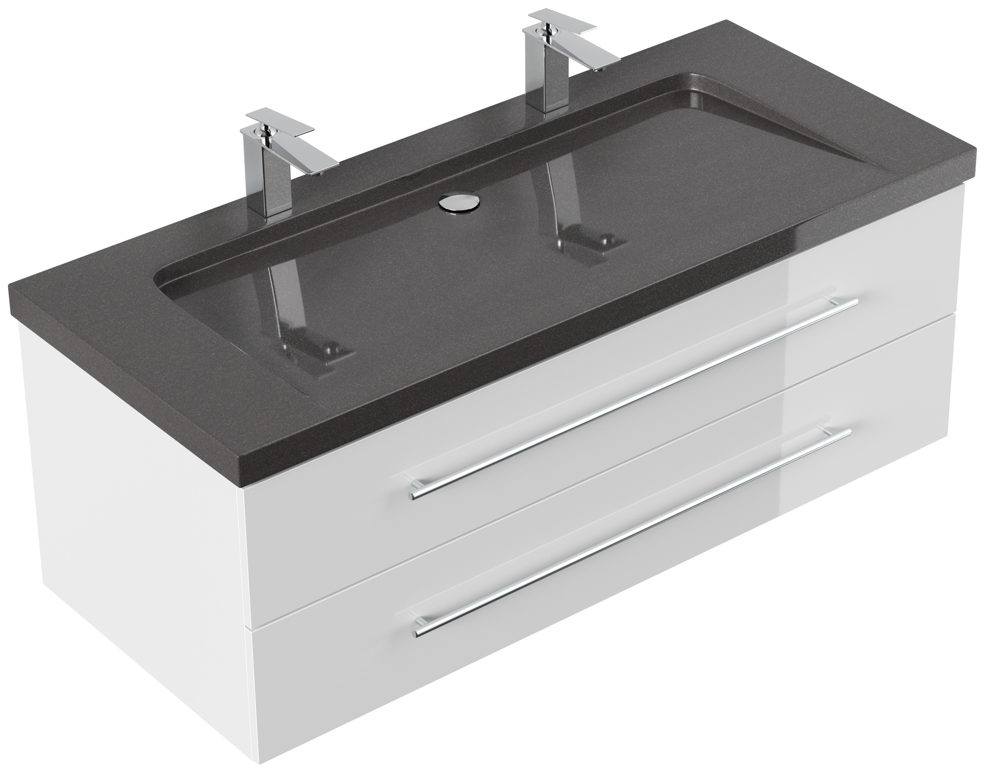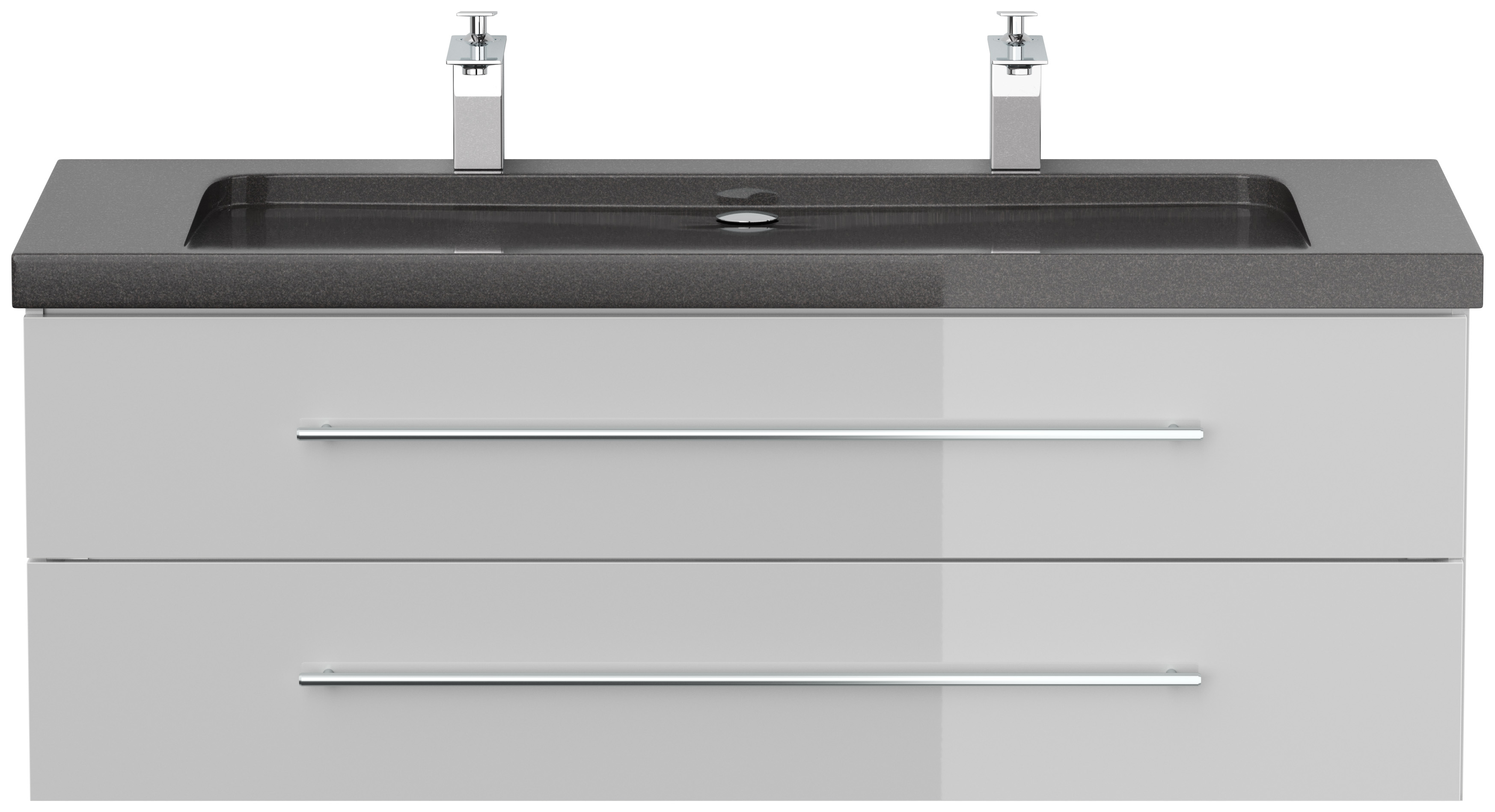 Badmöbel Granit India Black Damo 130 cm 2 Hahnlöcher SoftClose weiß hochglanz