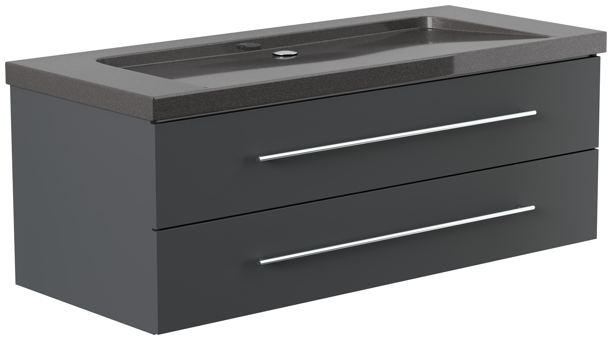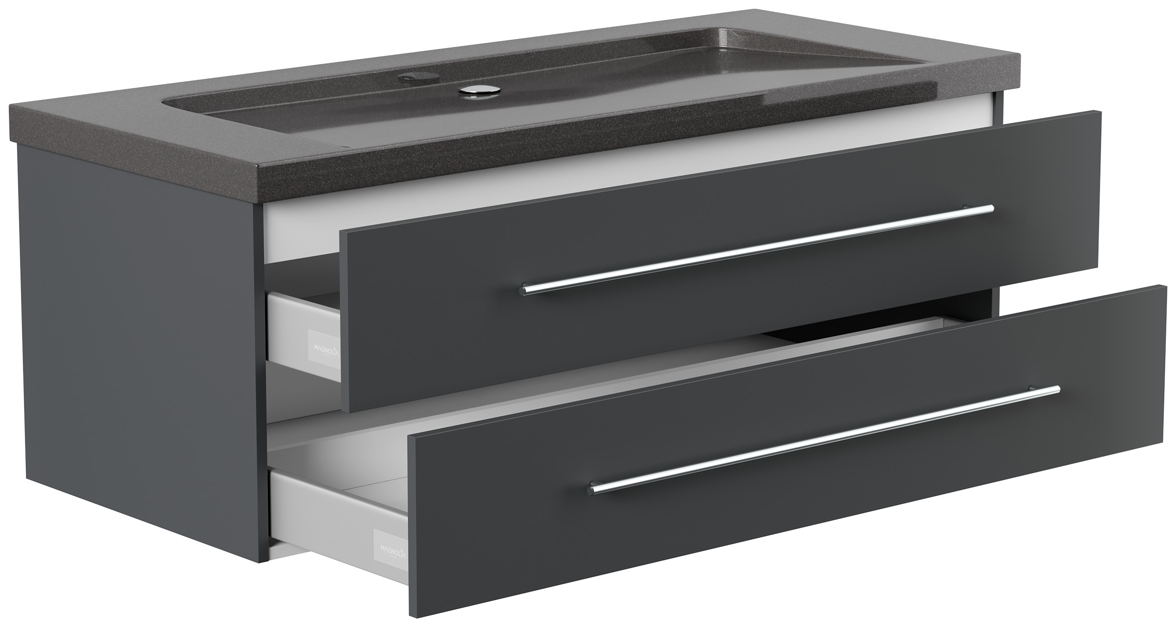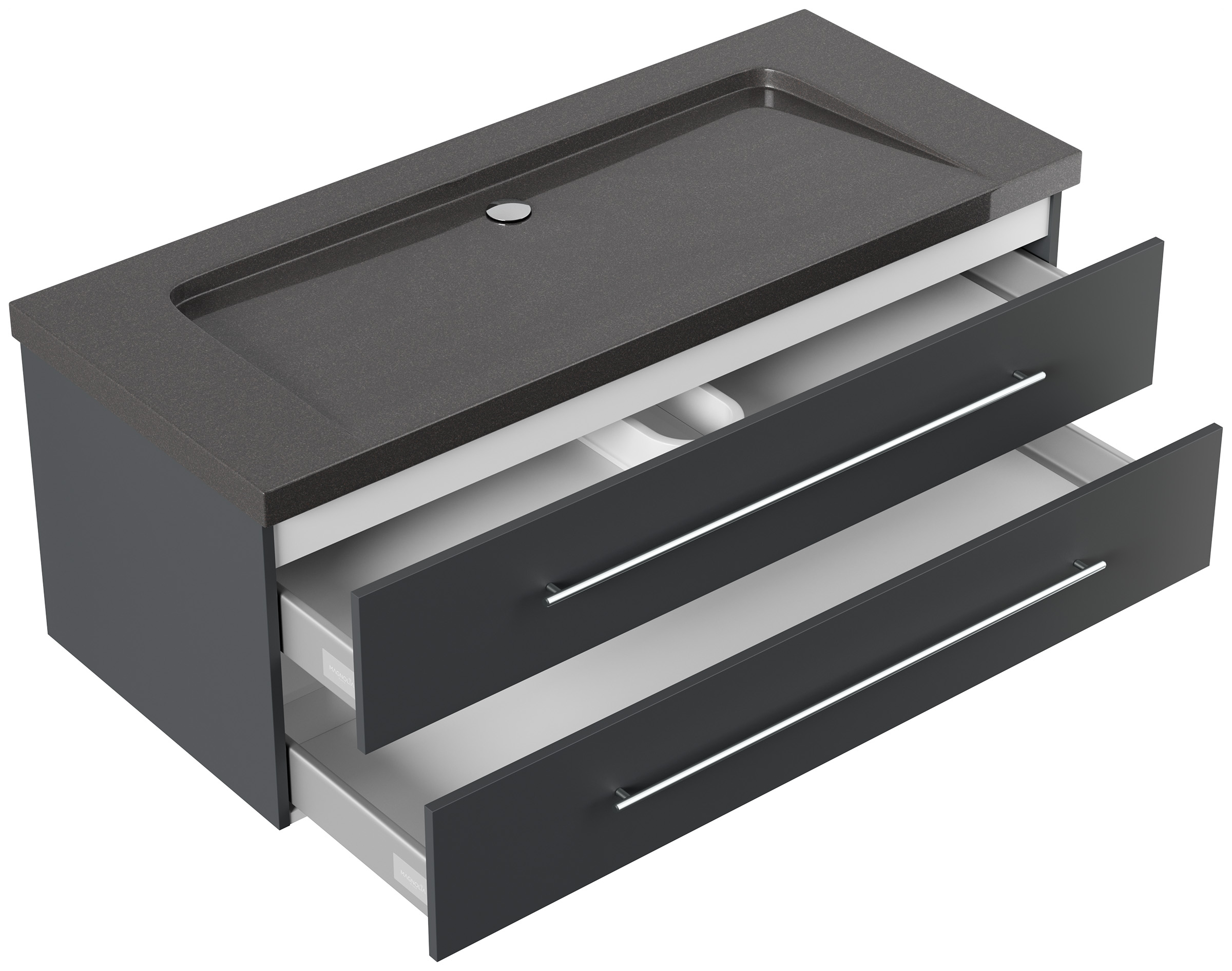 Badmöbel Granit India Black Damo 130 cm ohne Hahnloch SoftClose grafit