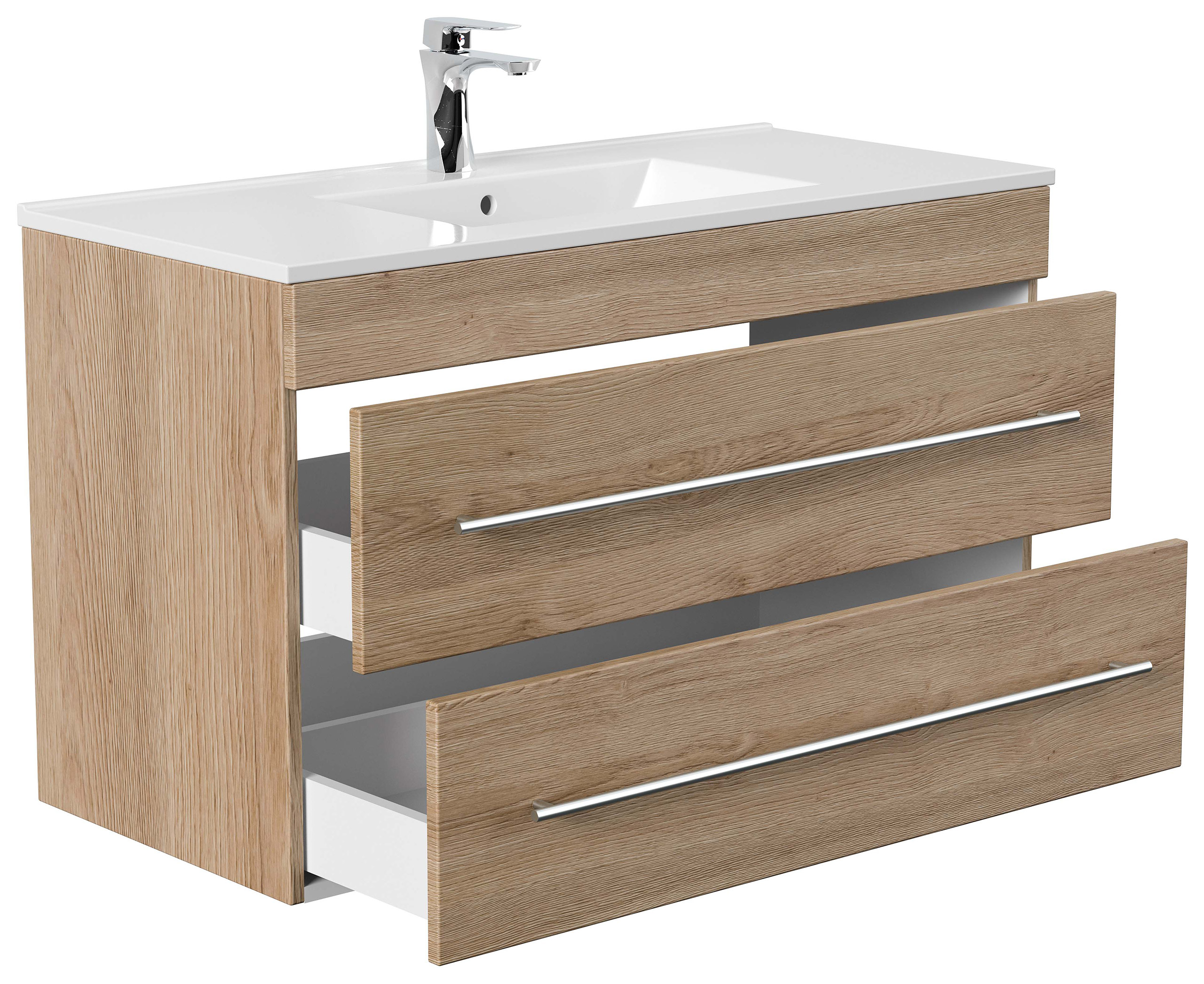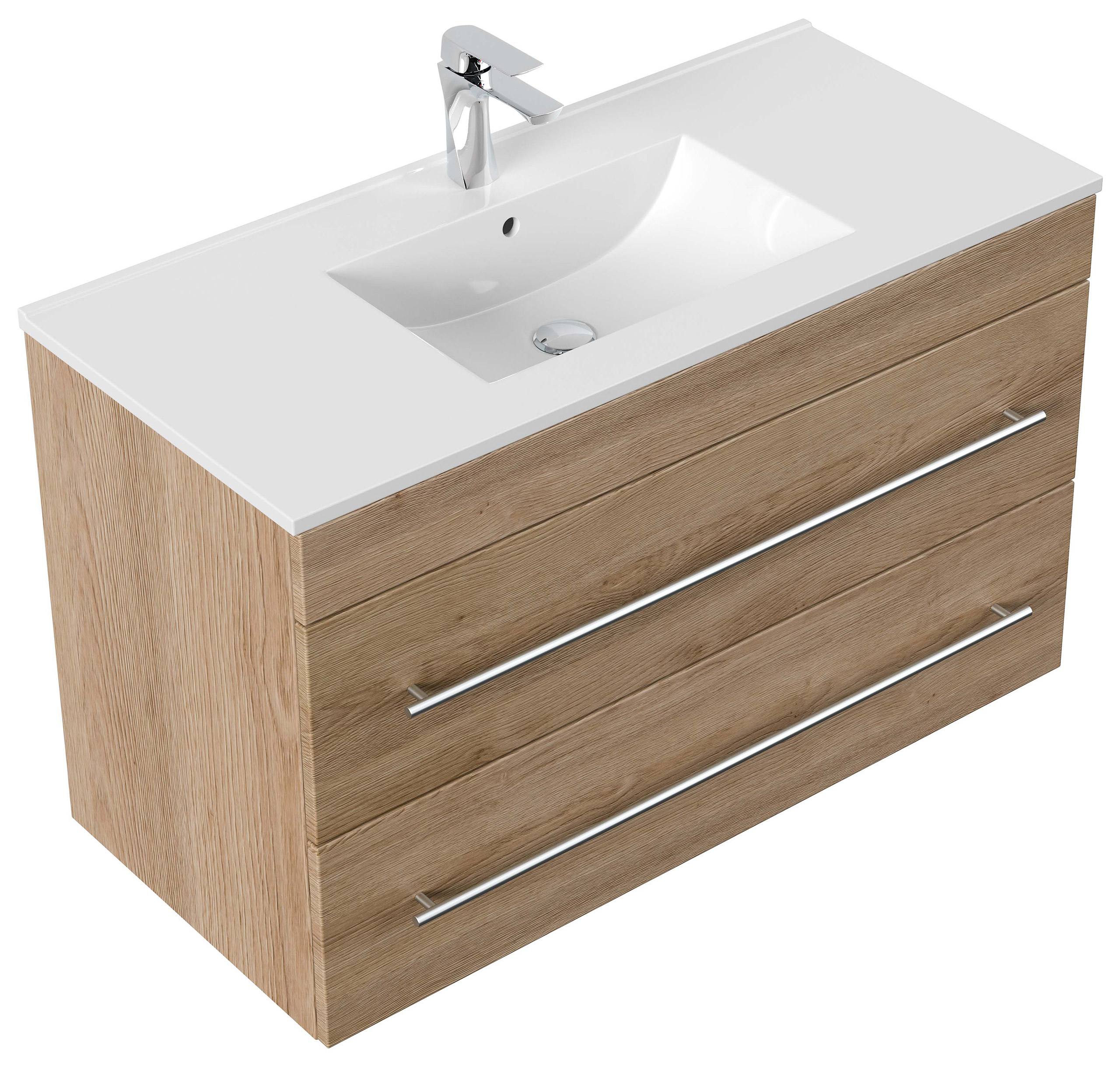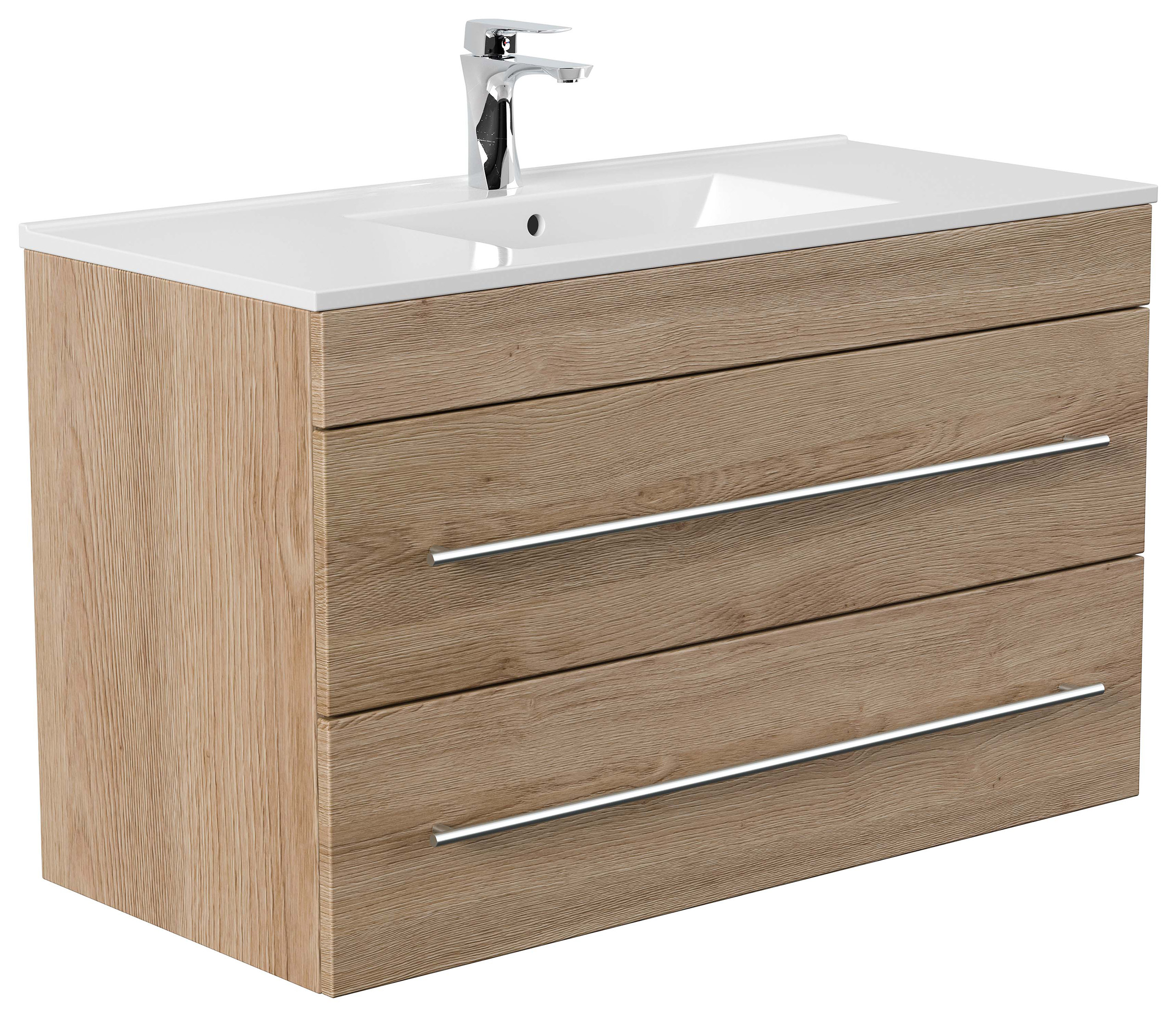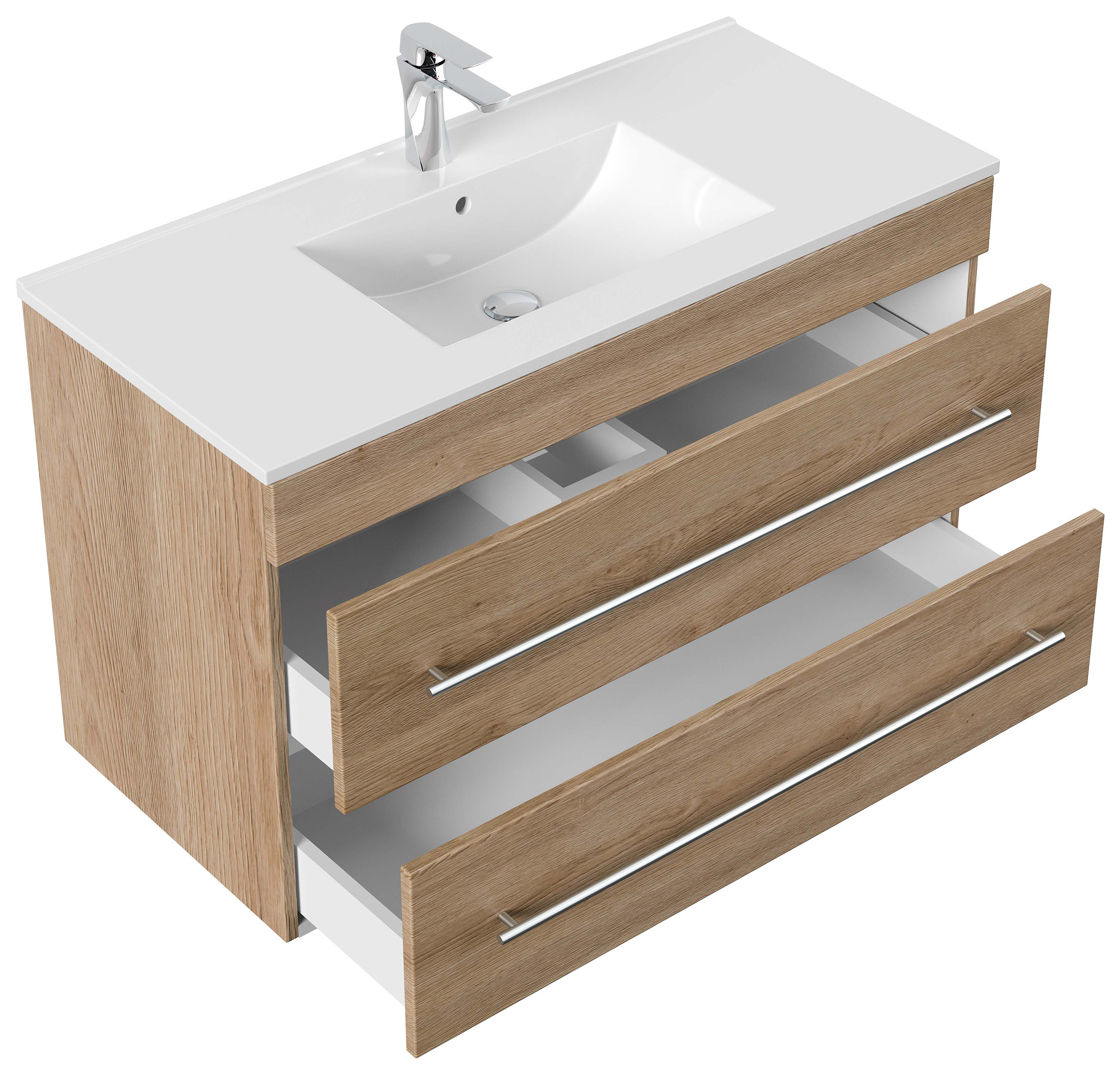 Waschtischunterschrank: (B/H/T) 100/60/45,5 cm,Waschbecken Keramik mit Überlauf (B/H/T) 101/2/47 cm.