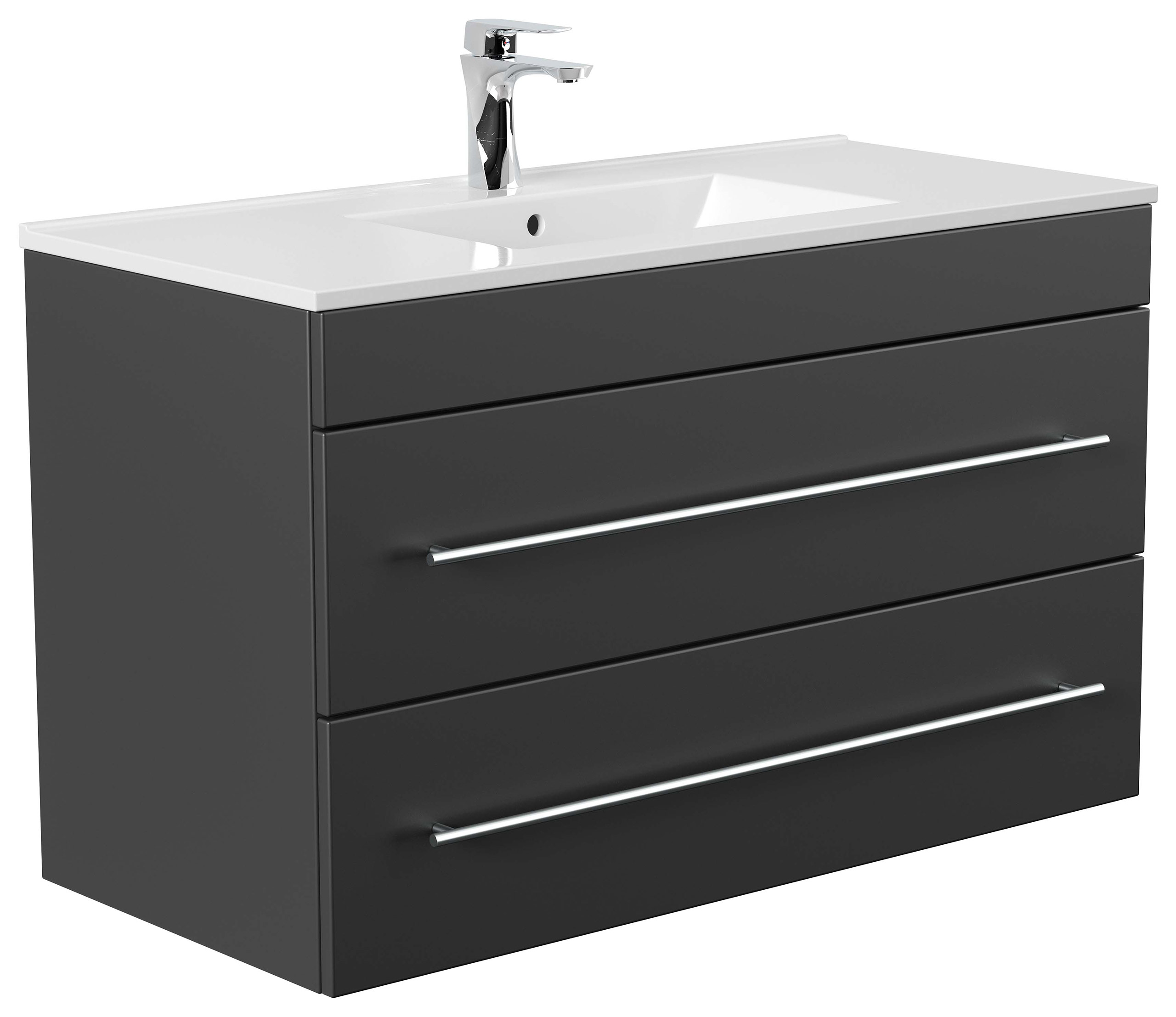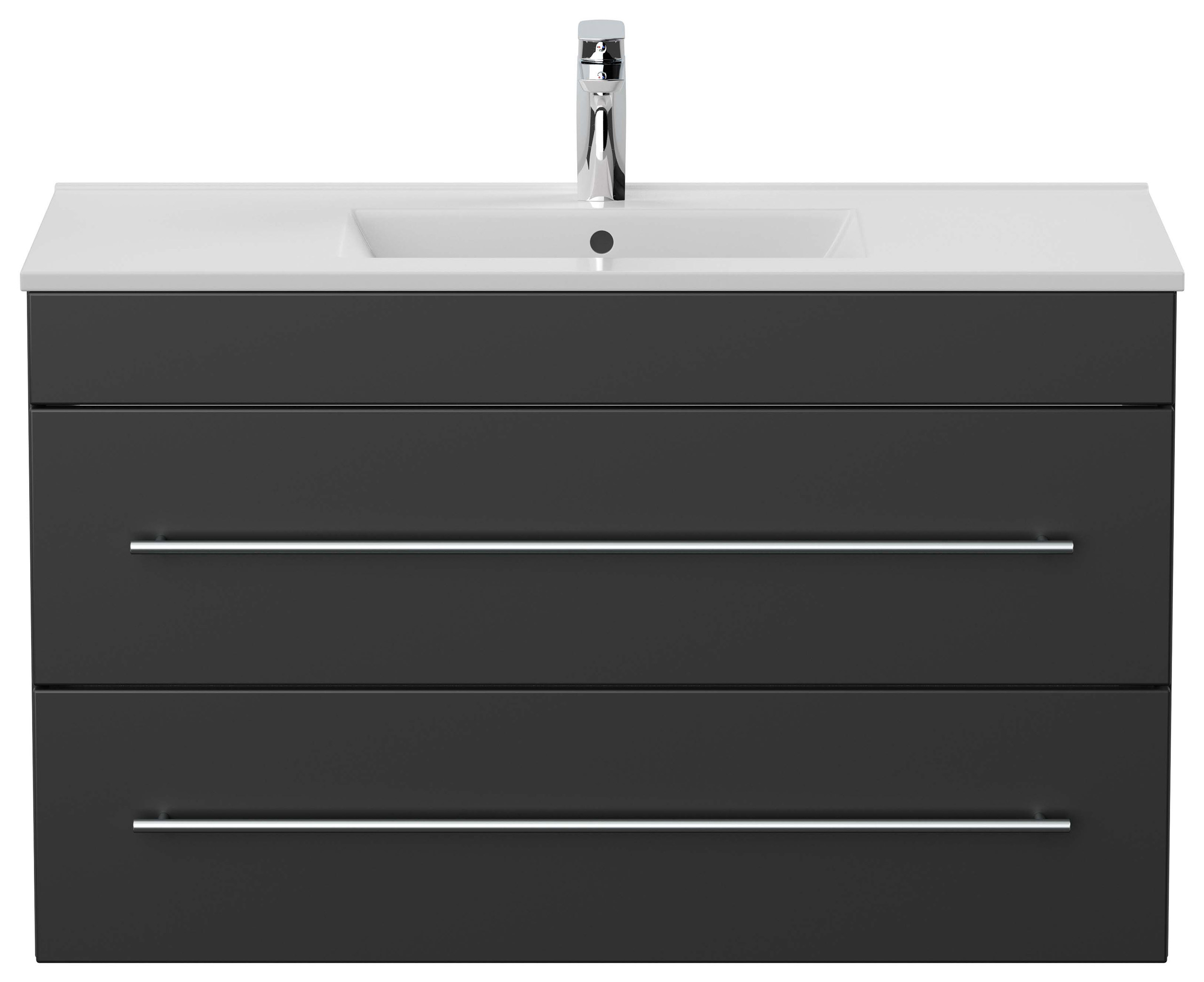 Waschtischunterschrank: (B/H/T) 100/60/45,5 cm,Waschbecken Keramik mit Überlauf (B/H/T) 101/2/47 cm.