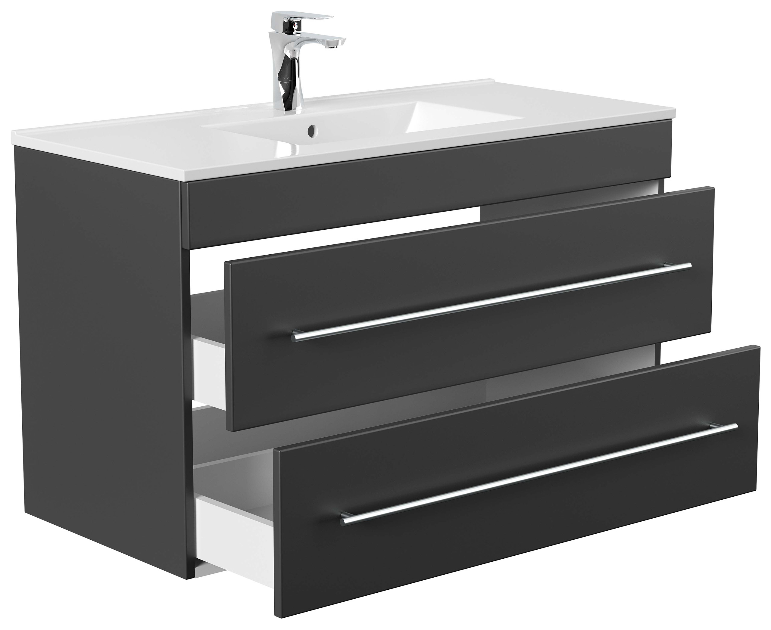 Ebenfalls passend zu unseren Badschränken der Farbe Schwarz. Die einen Meter breiten Schubladen ist mit Soft Close ausgestattet und werden Sie als Kunden begeistern. Dieses Badset mit seinem extra großen Waschtisch lässt keinen Spielraum mehr für Träume rund um Ihr Badezimmer. Das Badmöbel Infinity 1000 mit zwei Soft Close Schubladen sollte dabei Ihre – Erste Wahl – sein!
