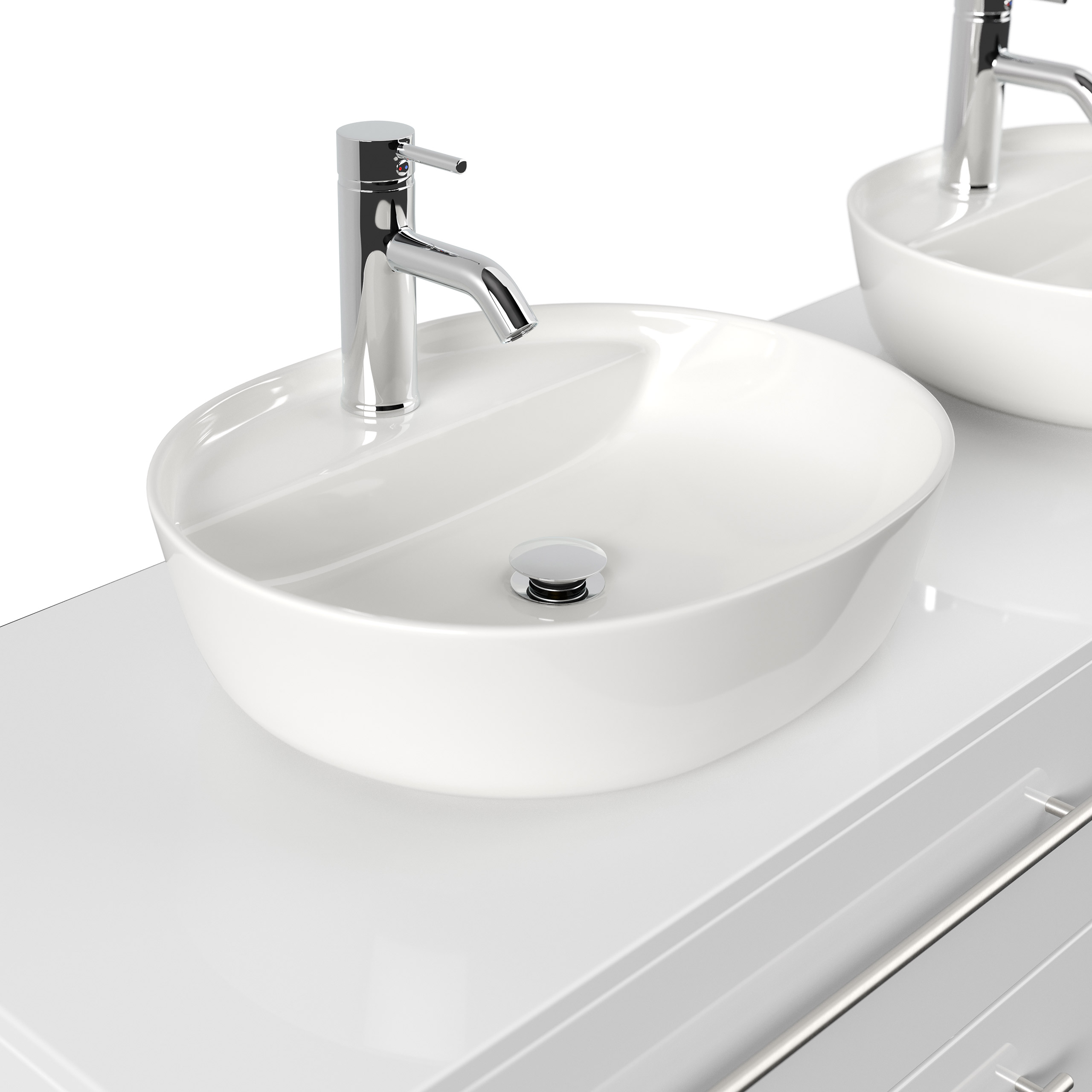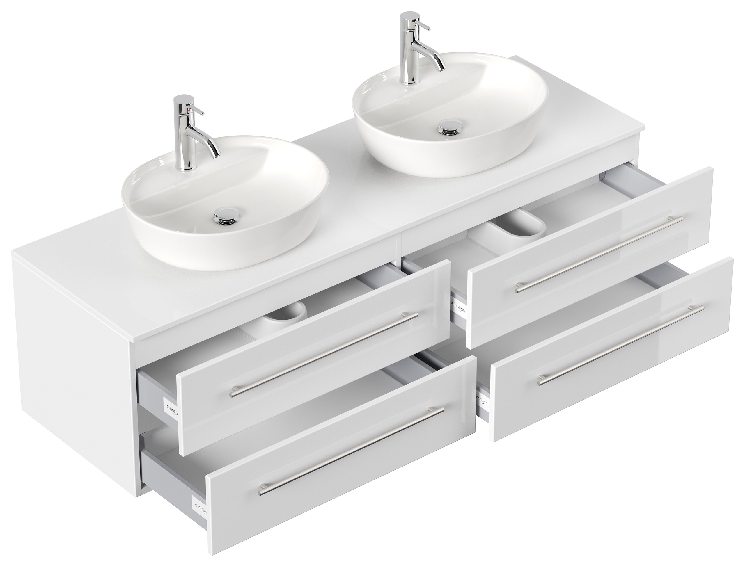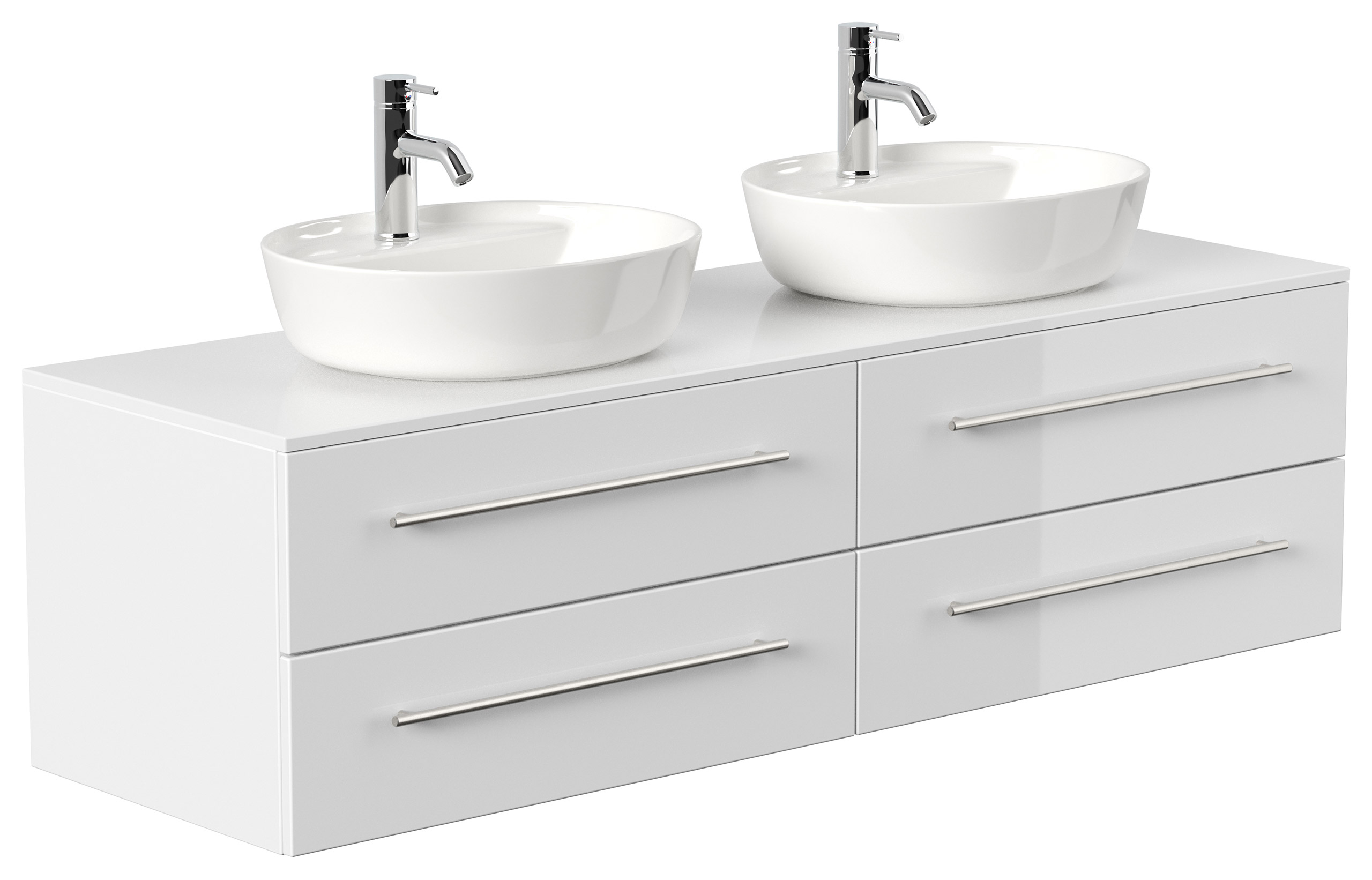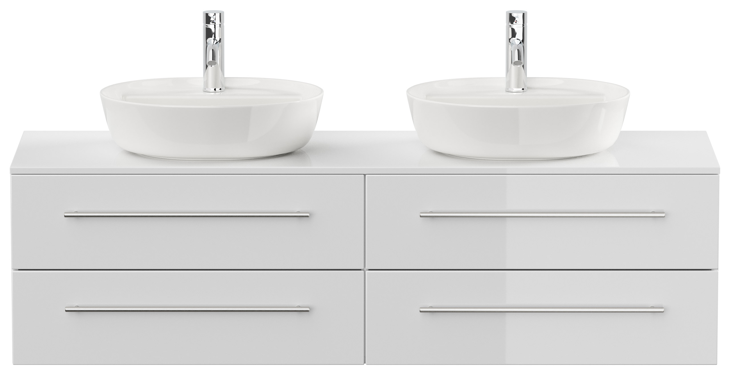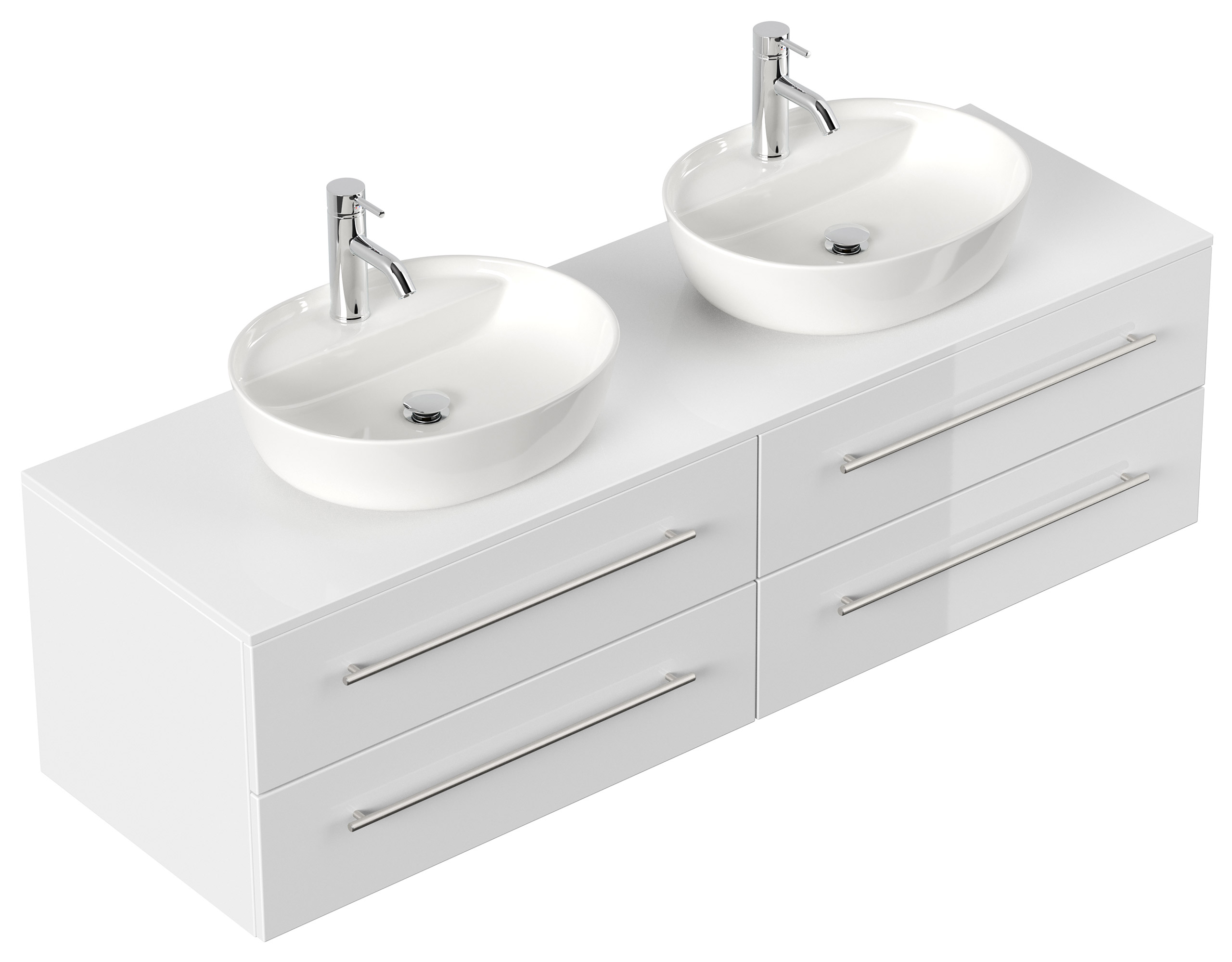 Badmöbel MORGAN A 160cm mit zwei Aufsatzwaschbecken weiß hochglanz