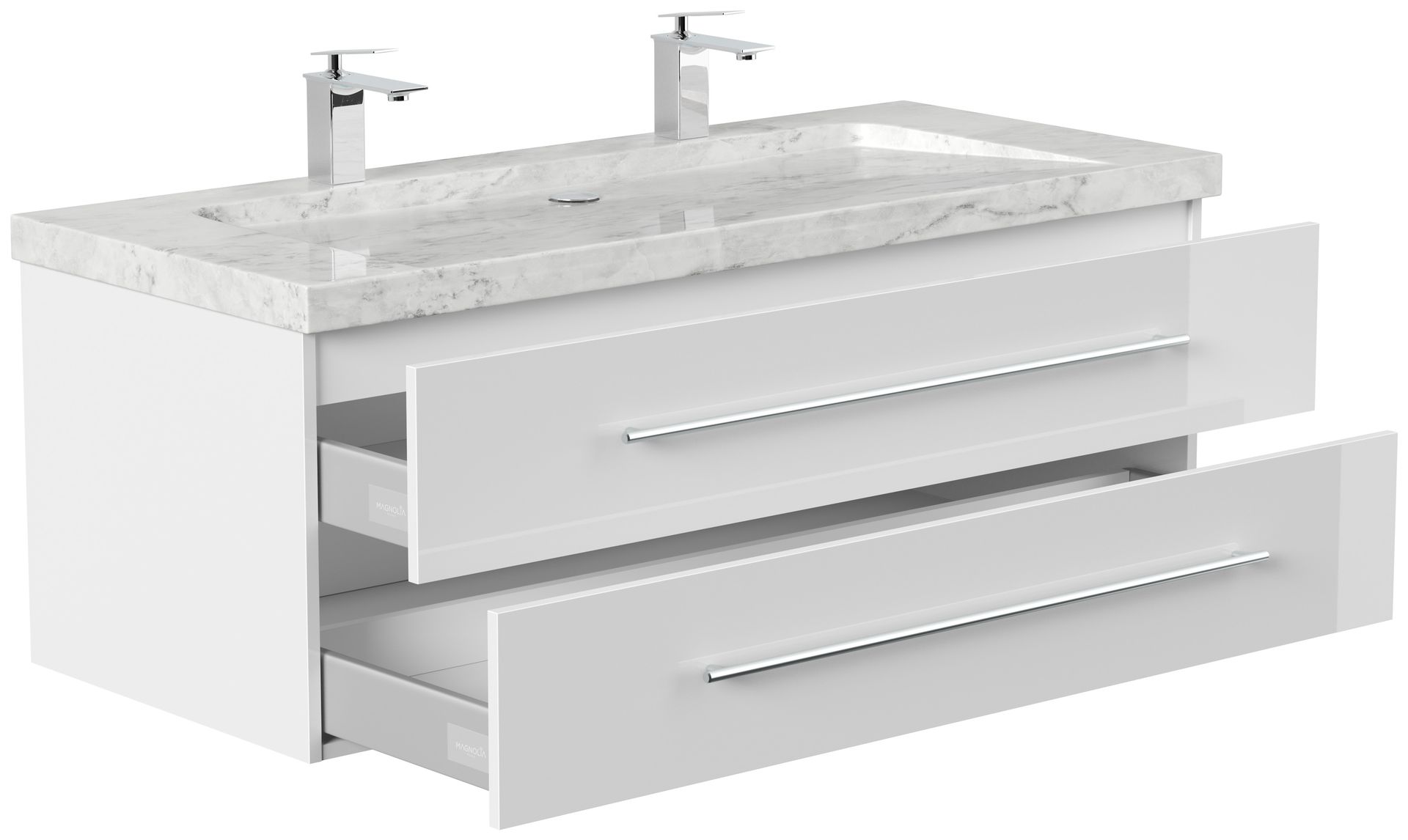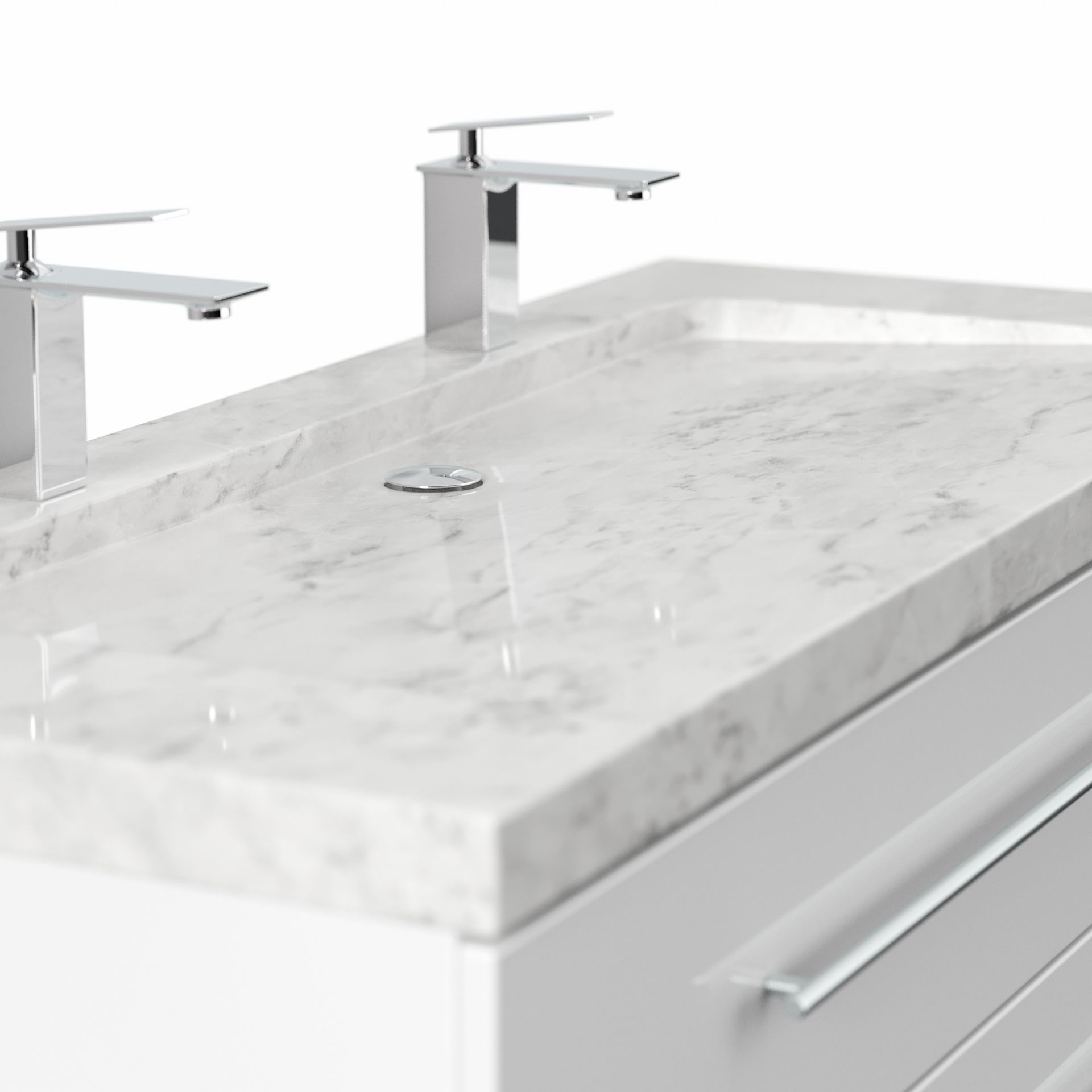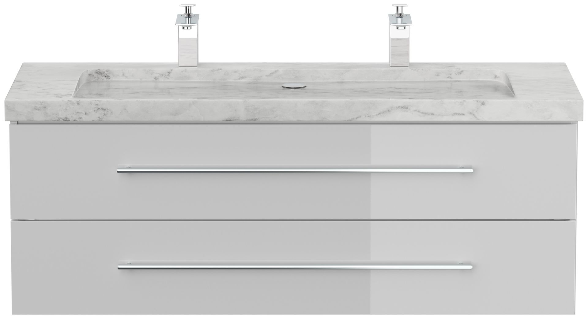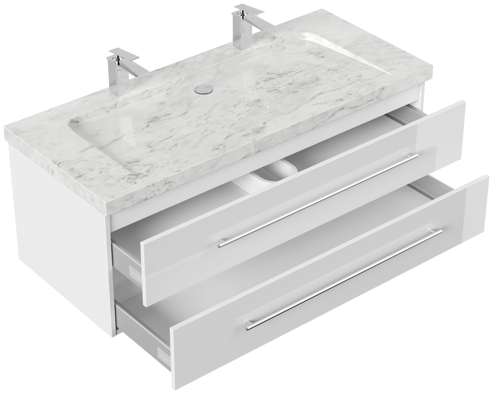 Badmöbel Marmor Carrara White Damo 130 cm 2 Hahnlöcher SoftClose weiß hochglanz