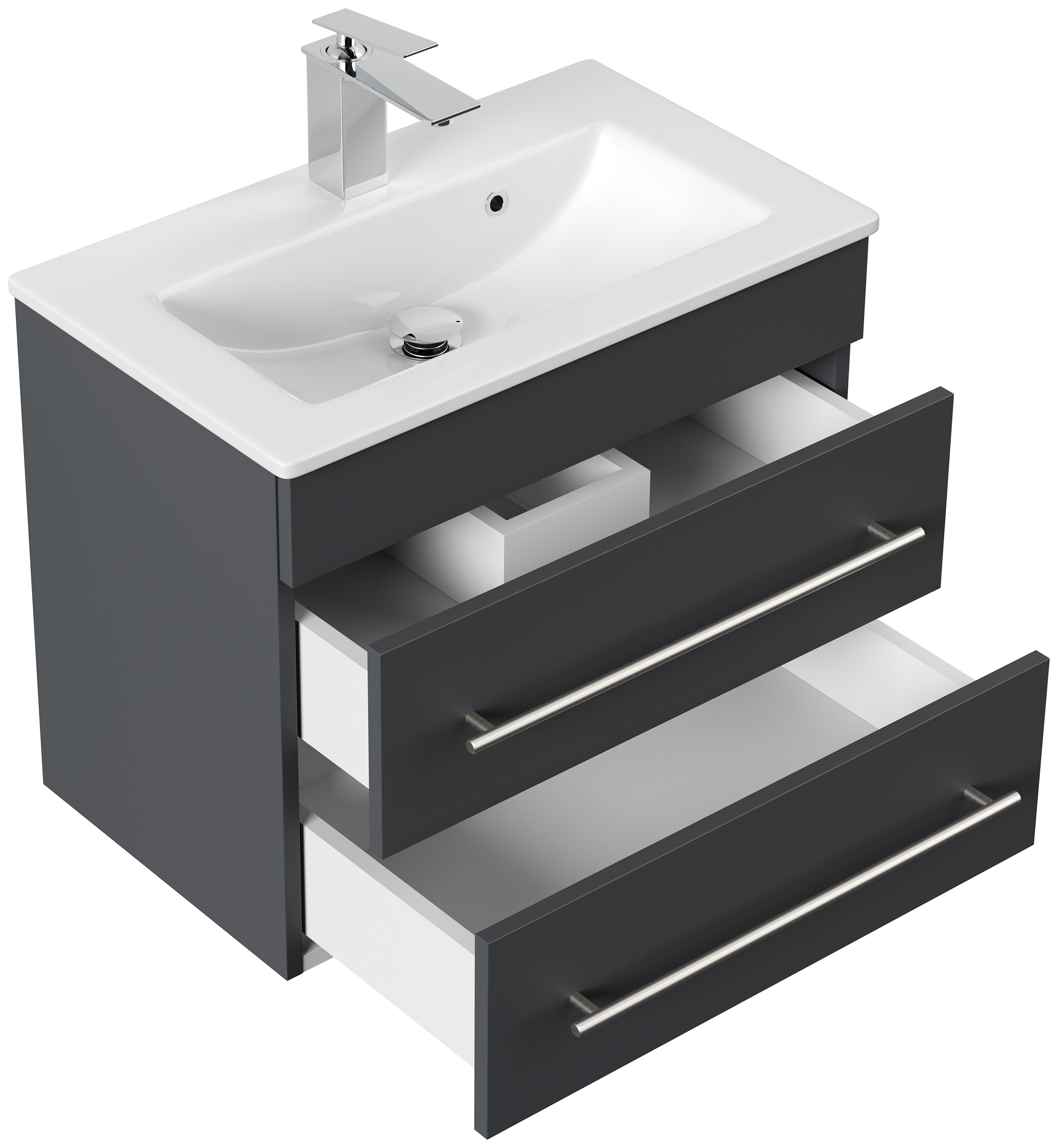 Badmöbel Mars 600 2-teilig mit LED Spiegel SlimLine grafit