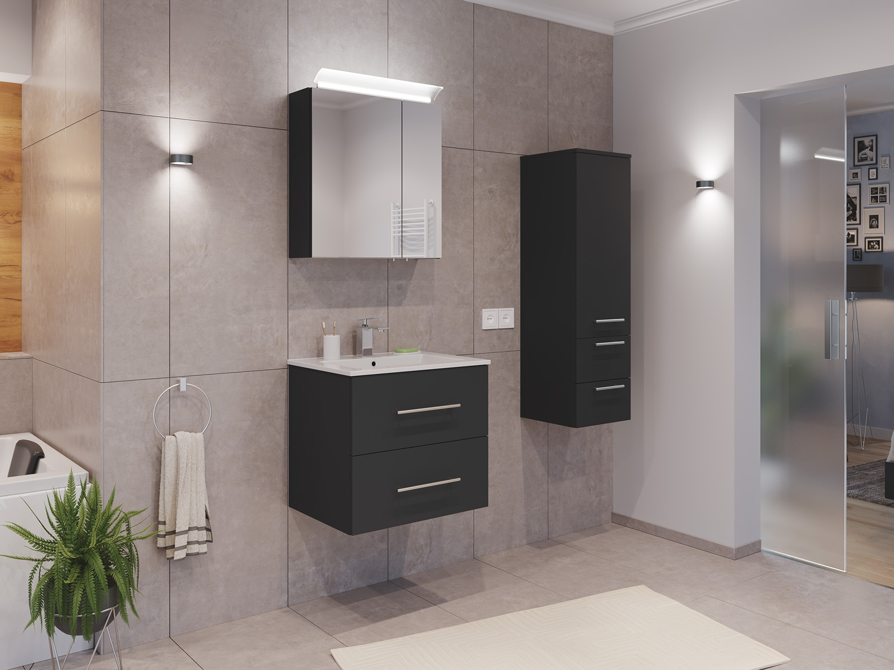 Badmöbel Set Firenze 60 3tlg. Spiegelschrank & Seitenschrank grafit