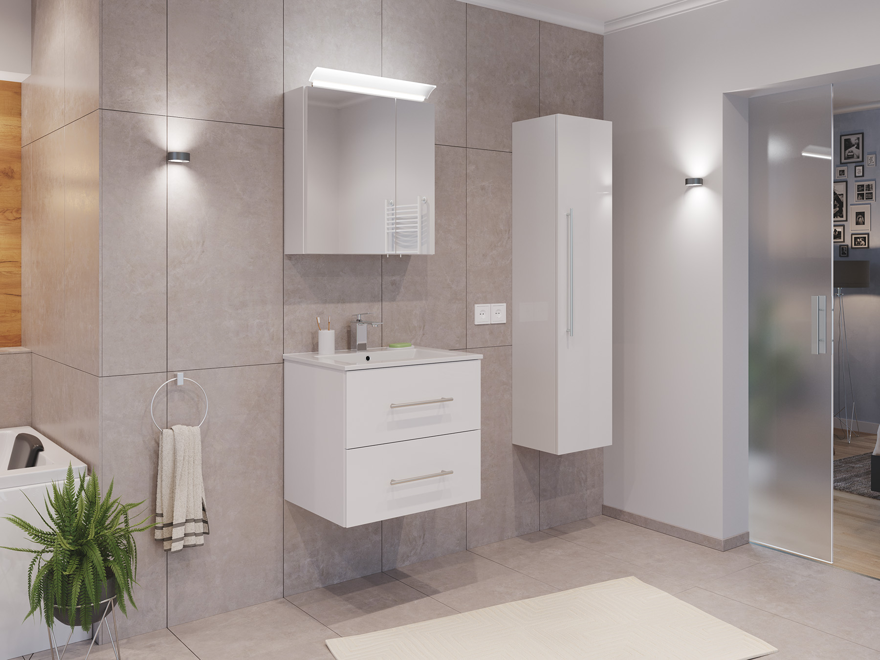 Badmöbel Set Firenze 60 3tlg. Spiegelschrank & Seitenschrank weiß hochglanz