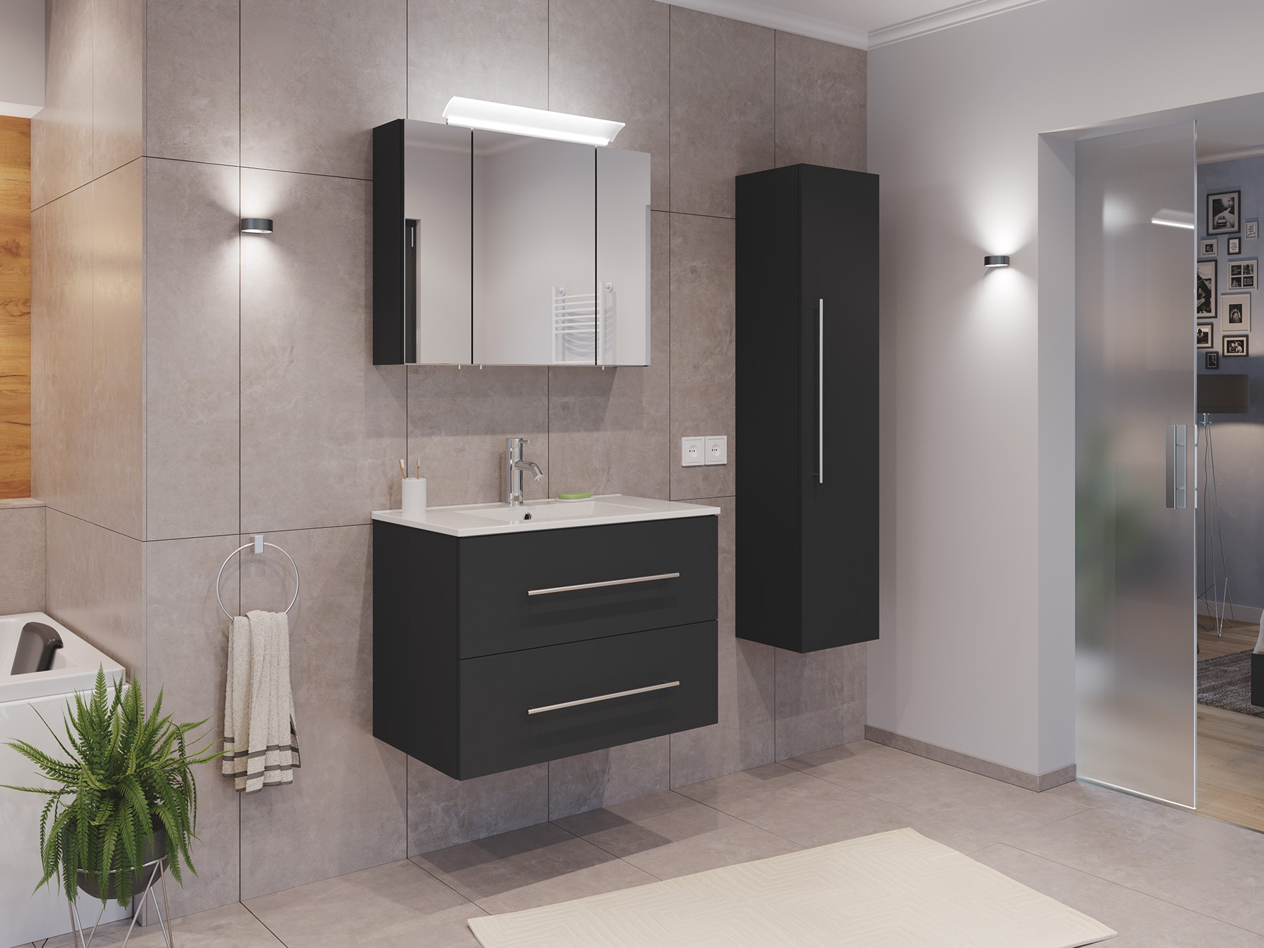 Badmöbel Set Firenze 80 3tlg. Spiegelschrank & Hochschrank grafit