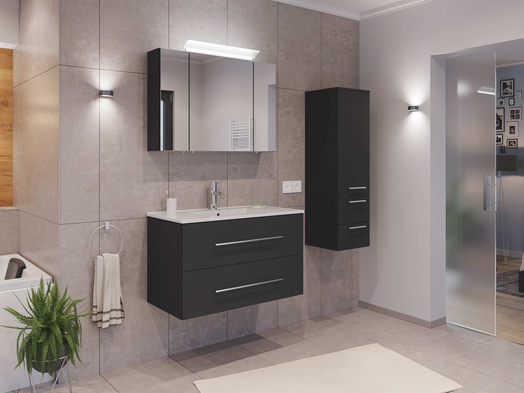 Badmöbel Set Firenze 90 3tlg. Spiegelschrank & Seitenschrank grafit