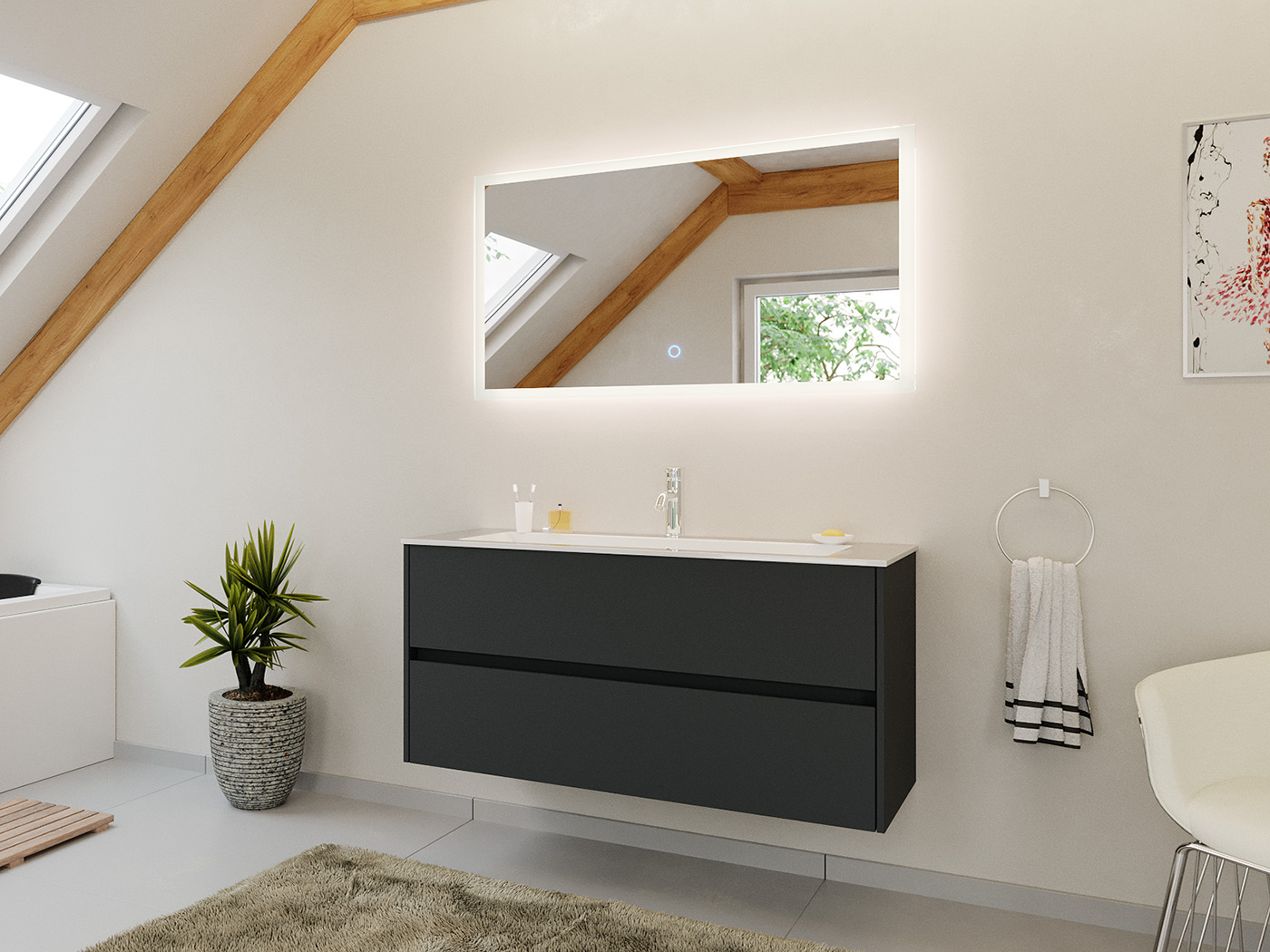 Badmöbel Set Taifun 2tlg. 120 cm mit LED Spiegel Grafit