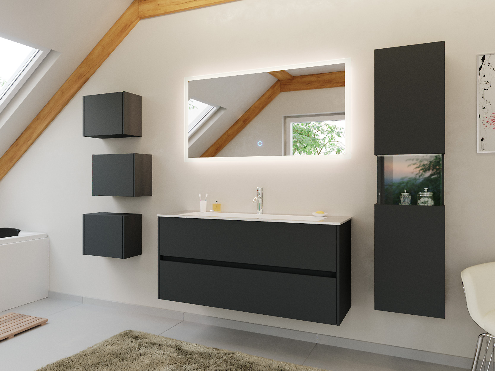 Badmöbel Set Taifun 4tlg. 120 cm mit LED Spiegel 3er Boxen & Hochschrank Grafit