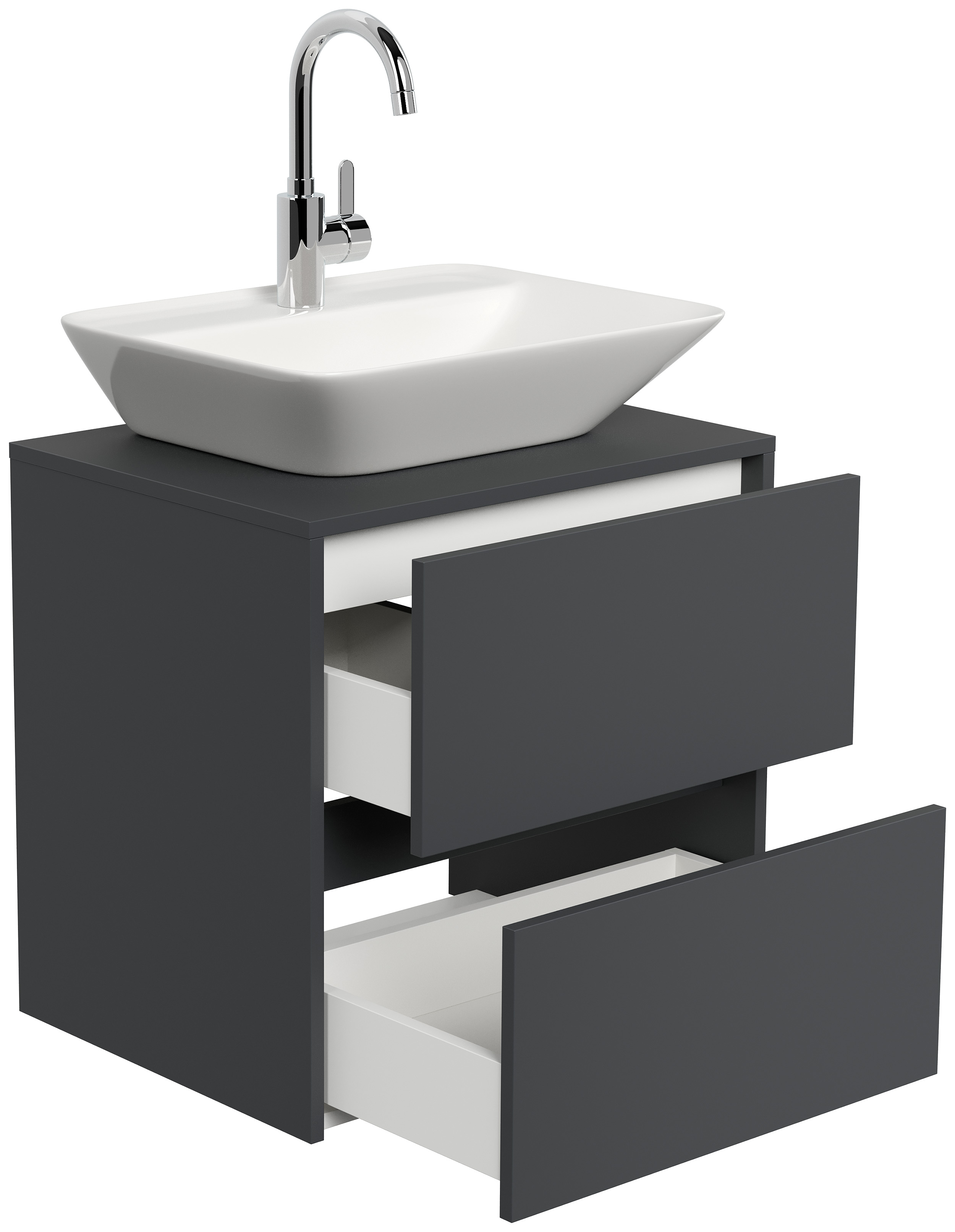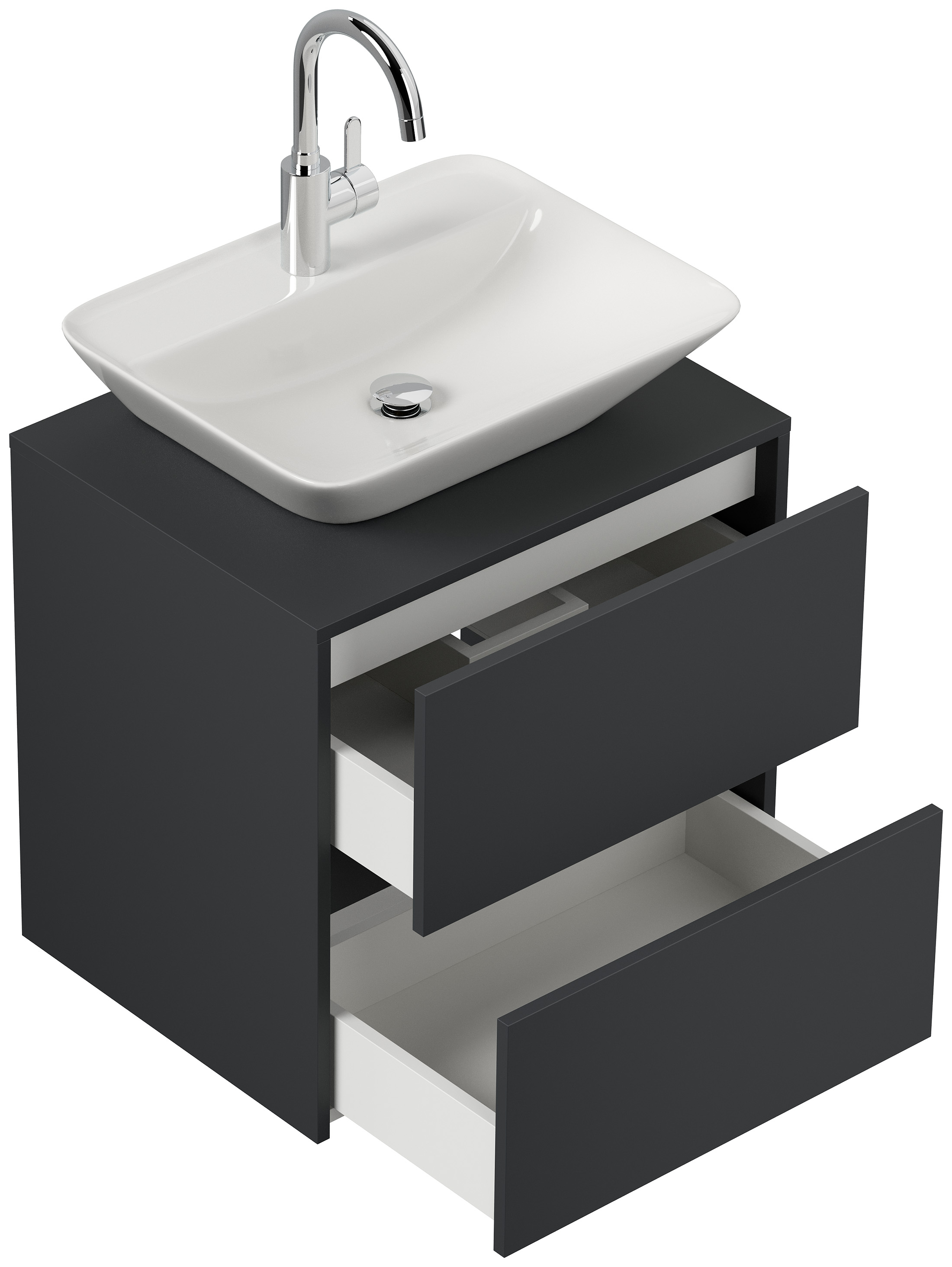 Badmöbel Taifun 60cm mit modernem Aufsatzwaschbecken grafit