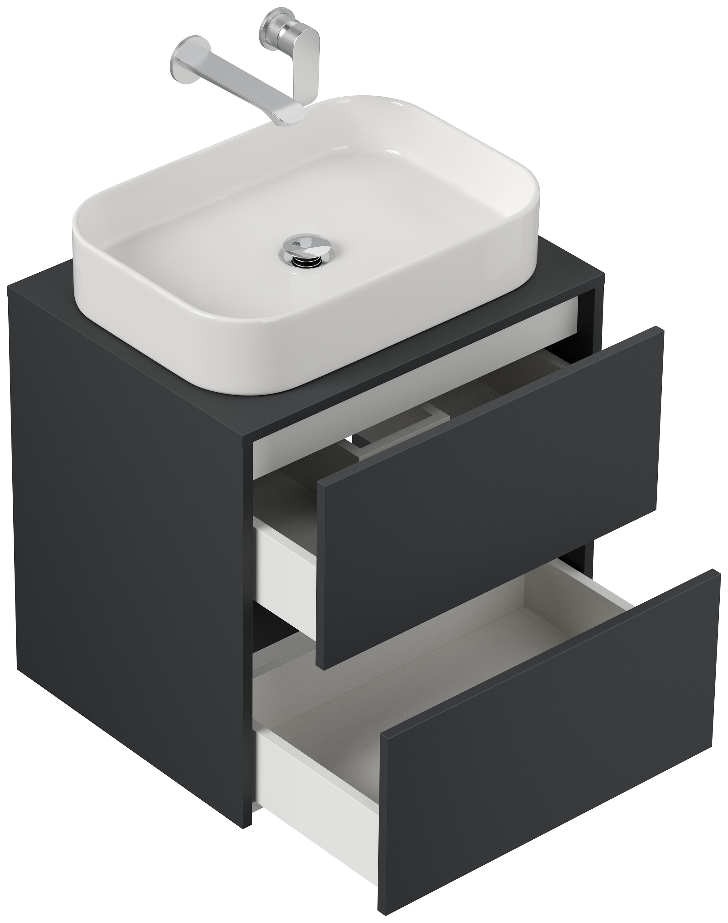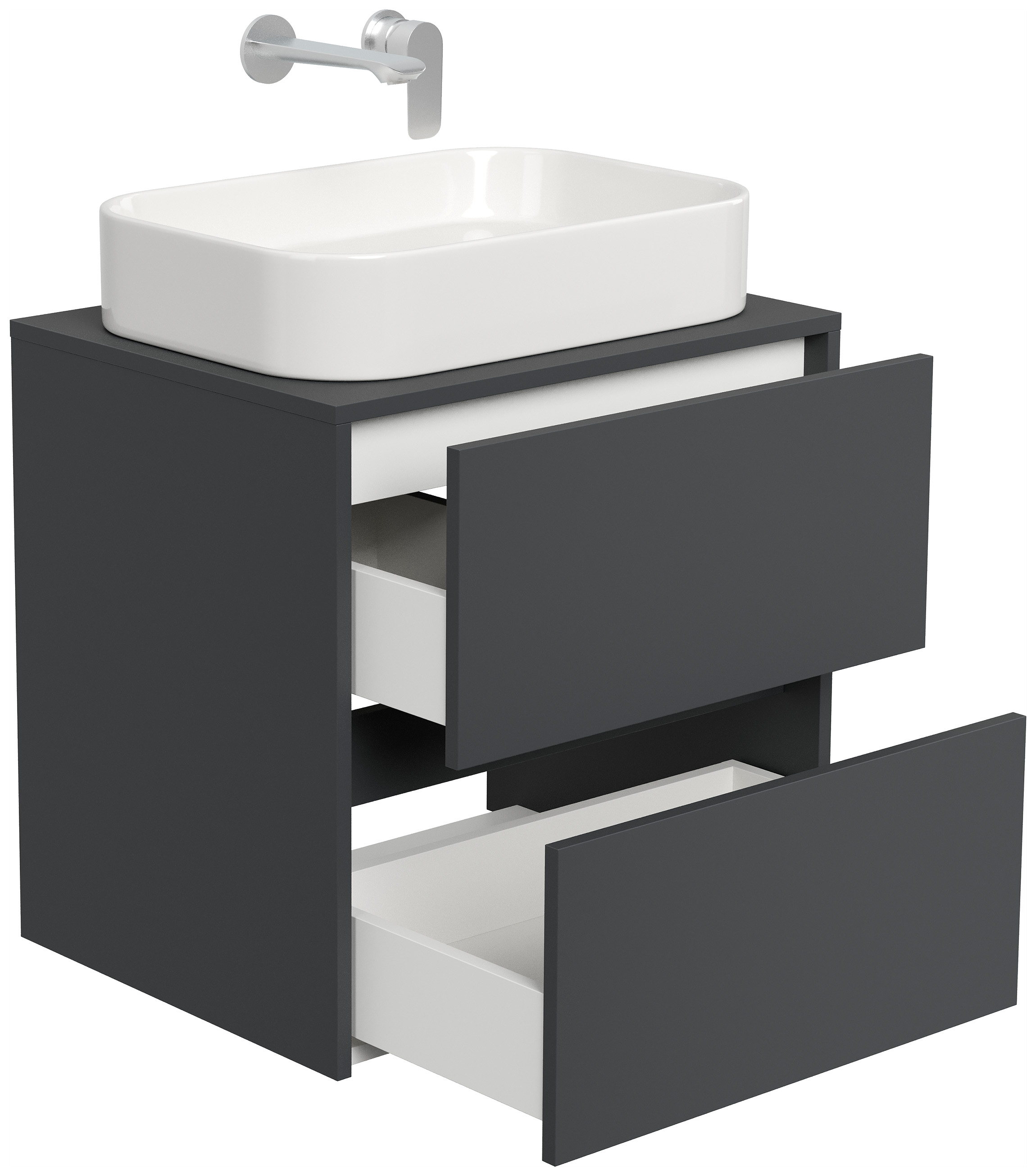 Badmöbel Taifun 60cm mit rechteckigem Aufsatzwaschbecken grafit