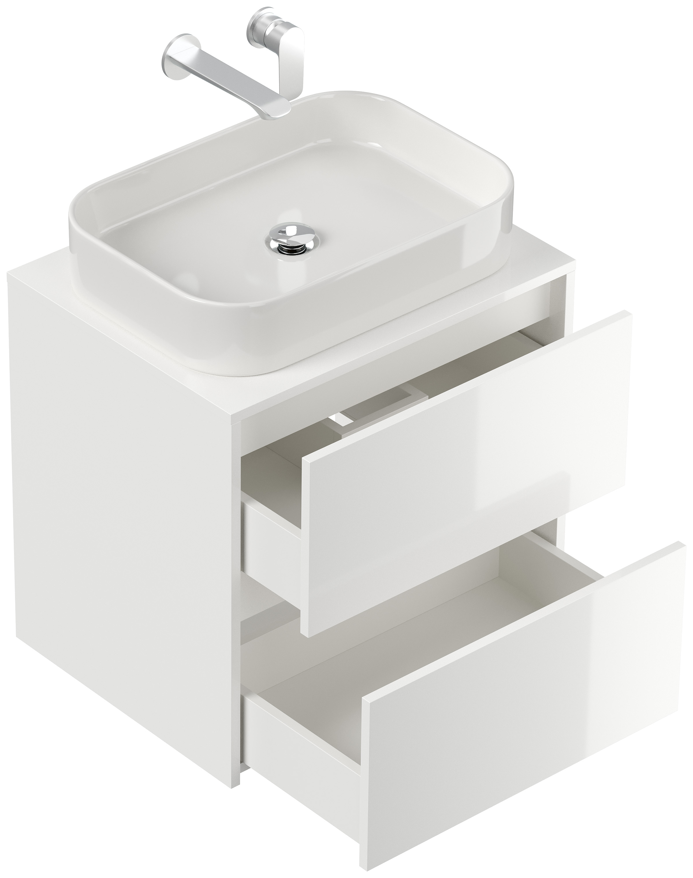 Badmöbel Taifun 60cm mit rechteckigem Aufsatzwaschbecken weiß Hgl
