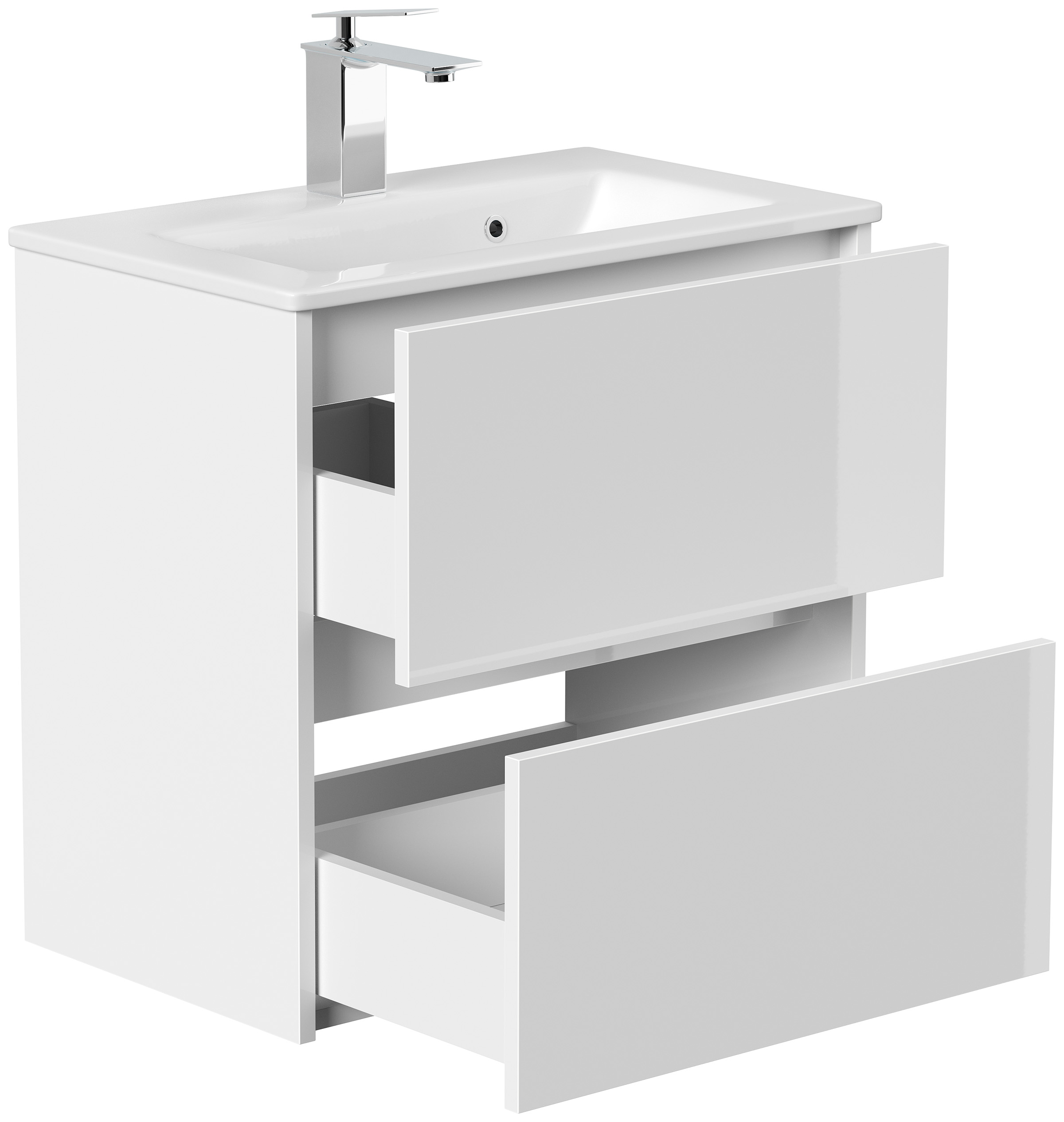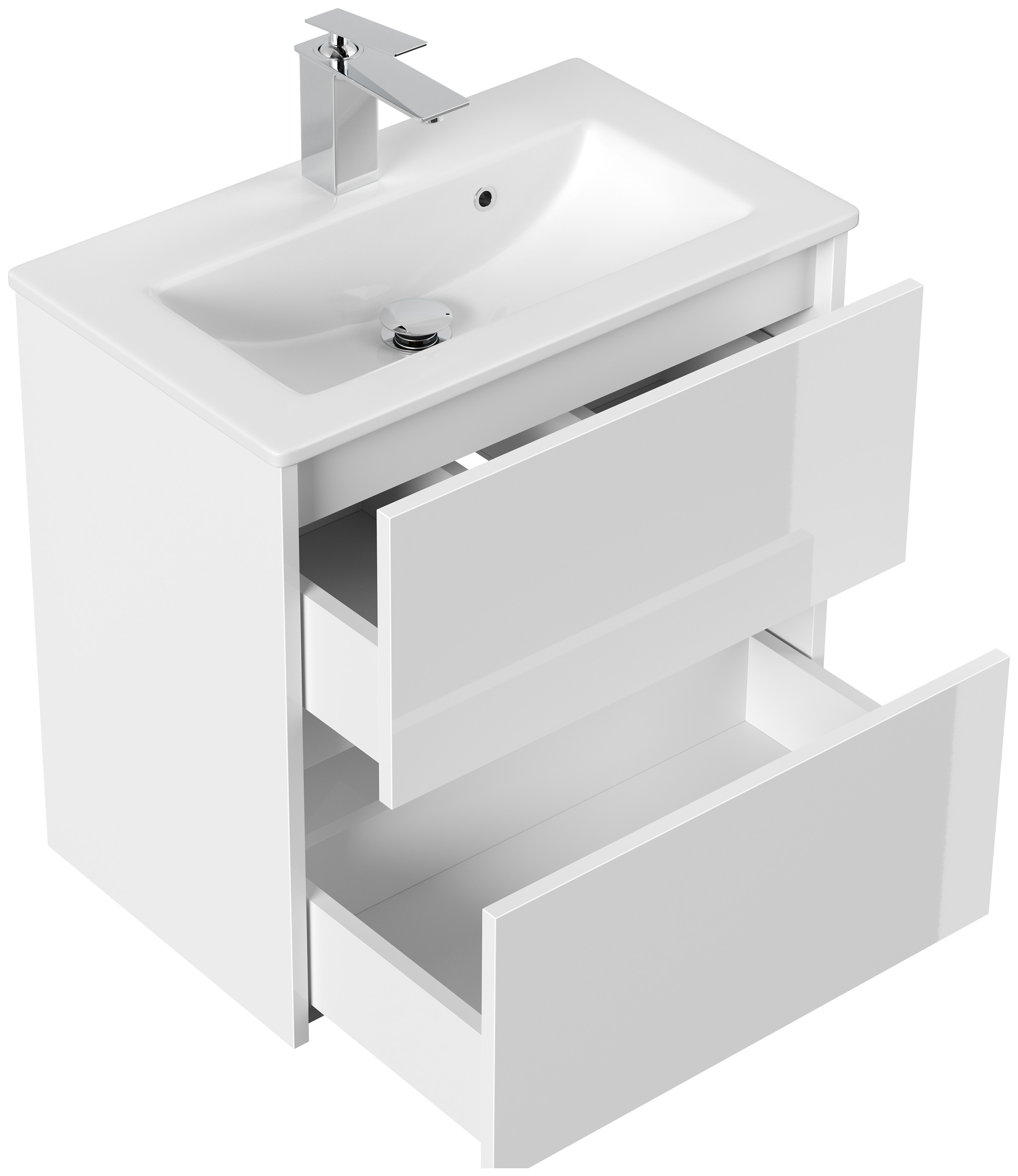 Badmöbel Taifun Slimline 60cm 2 grifflose SoftClose Auszüge weiß Hgl