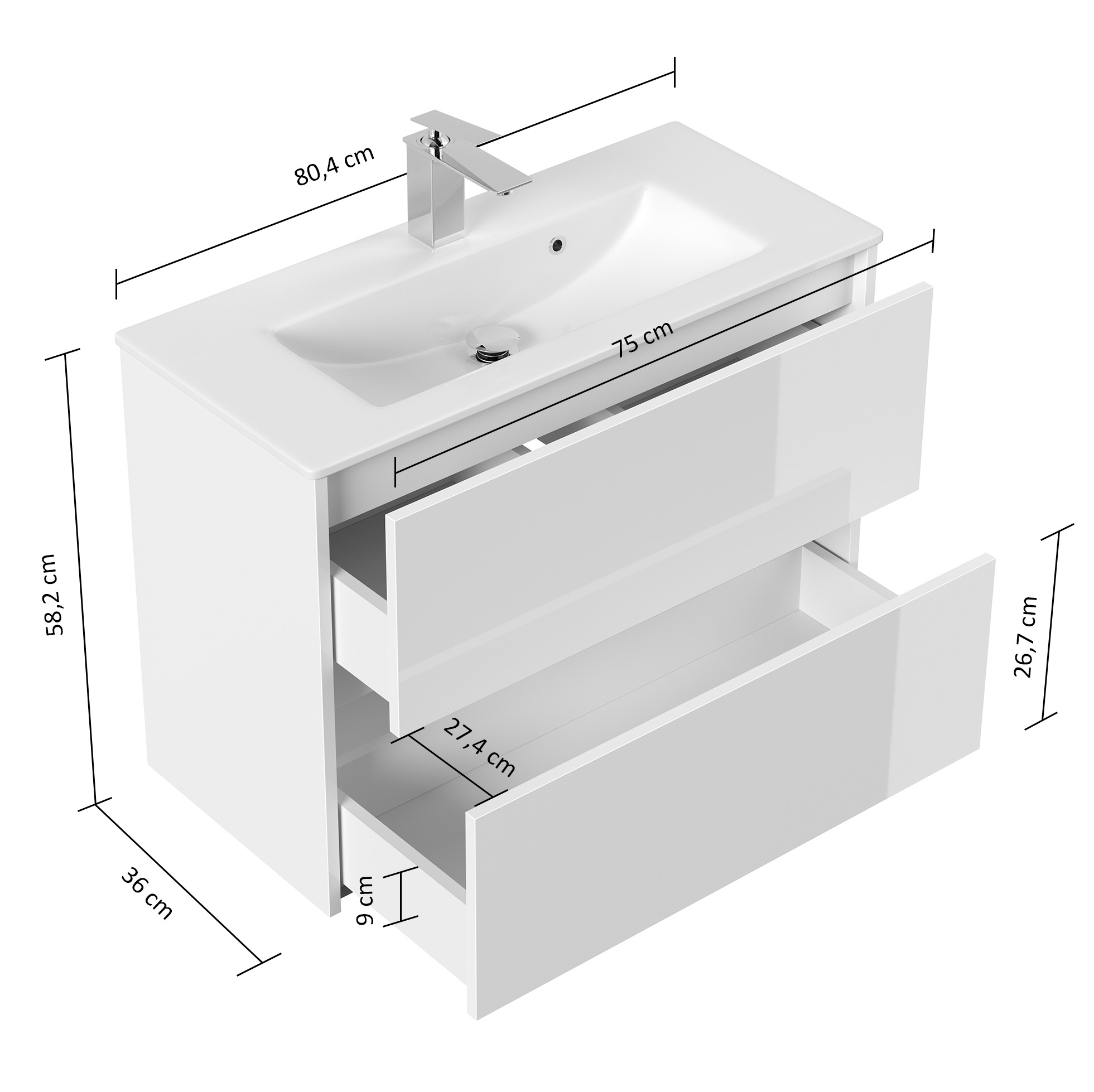 | Lieferumfang | Waschtischunterschrank, Waschbecken, Montageanleitung |