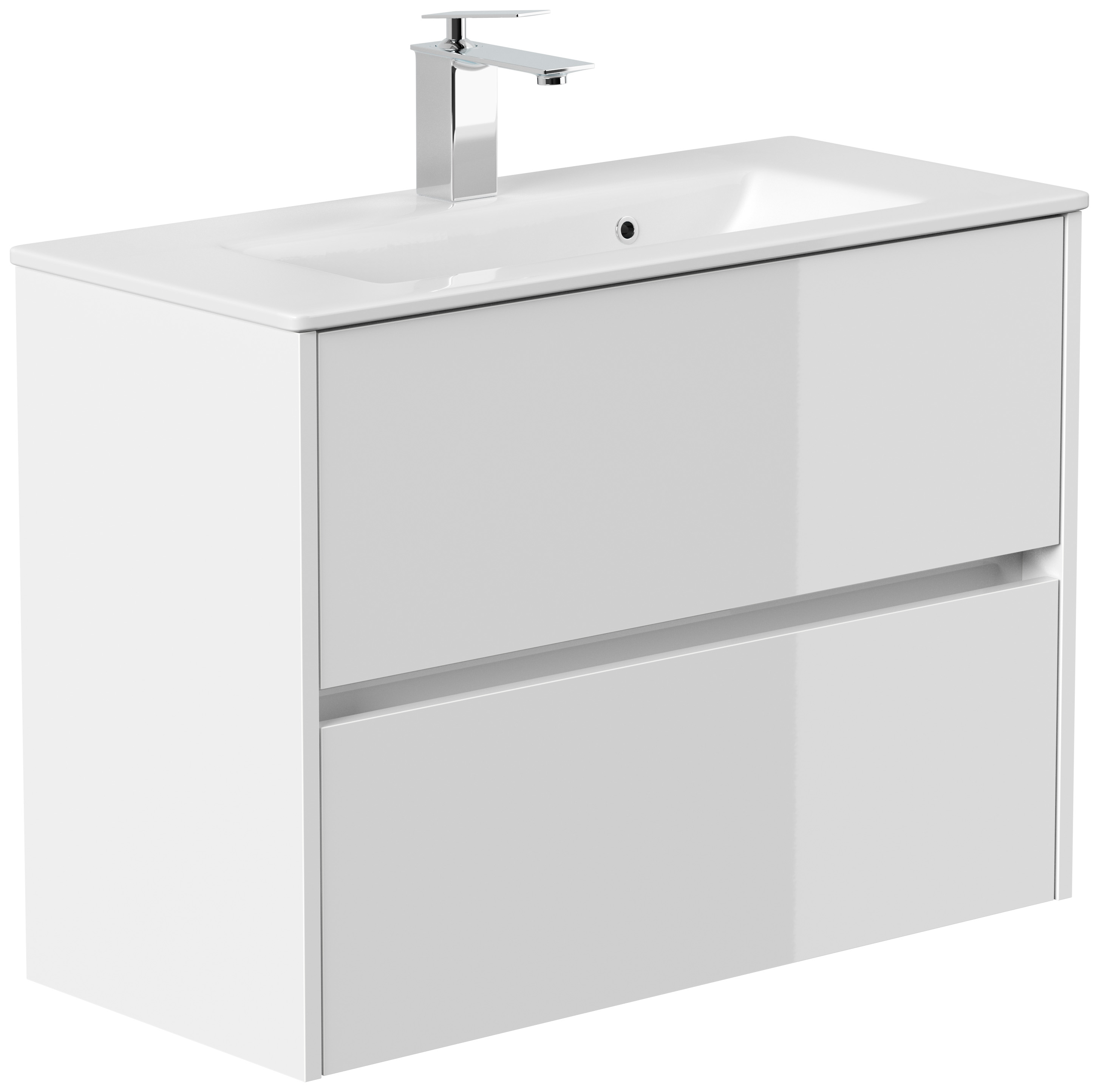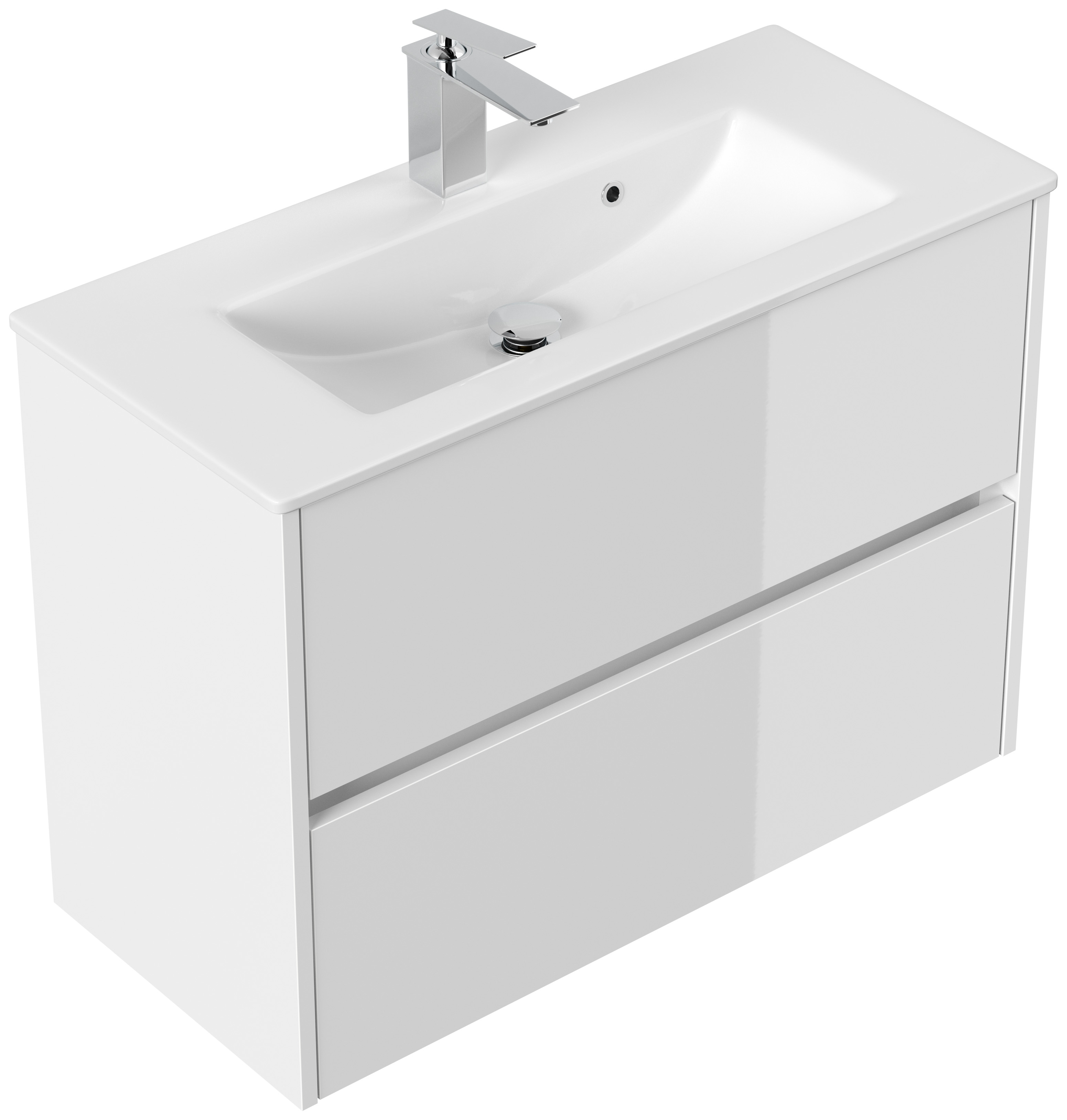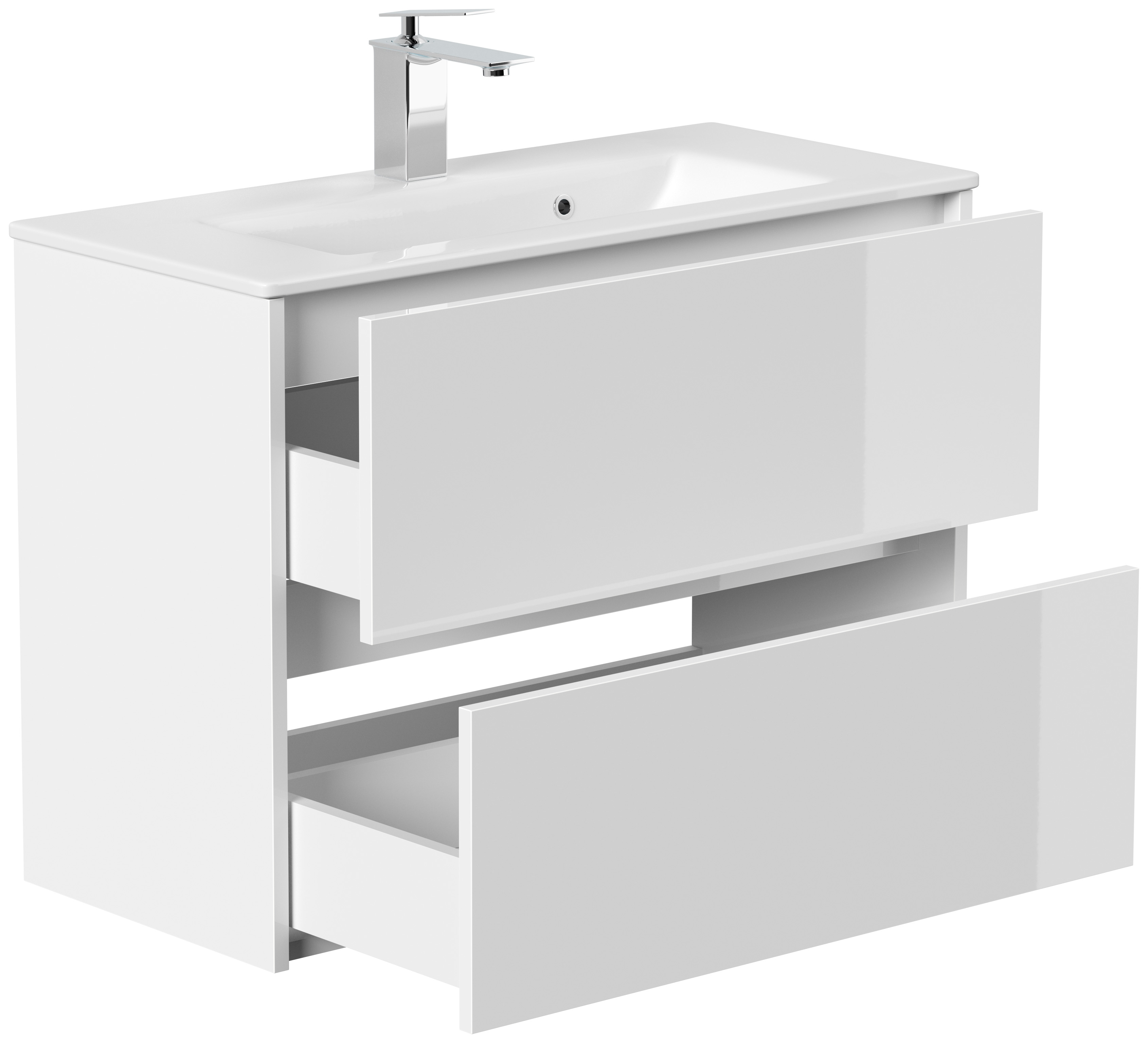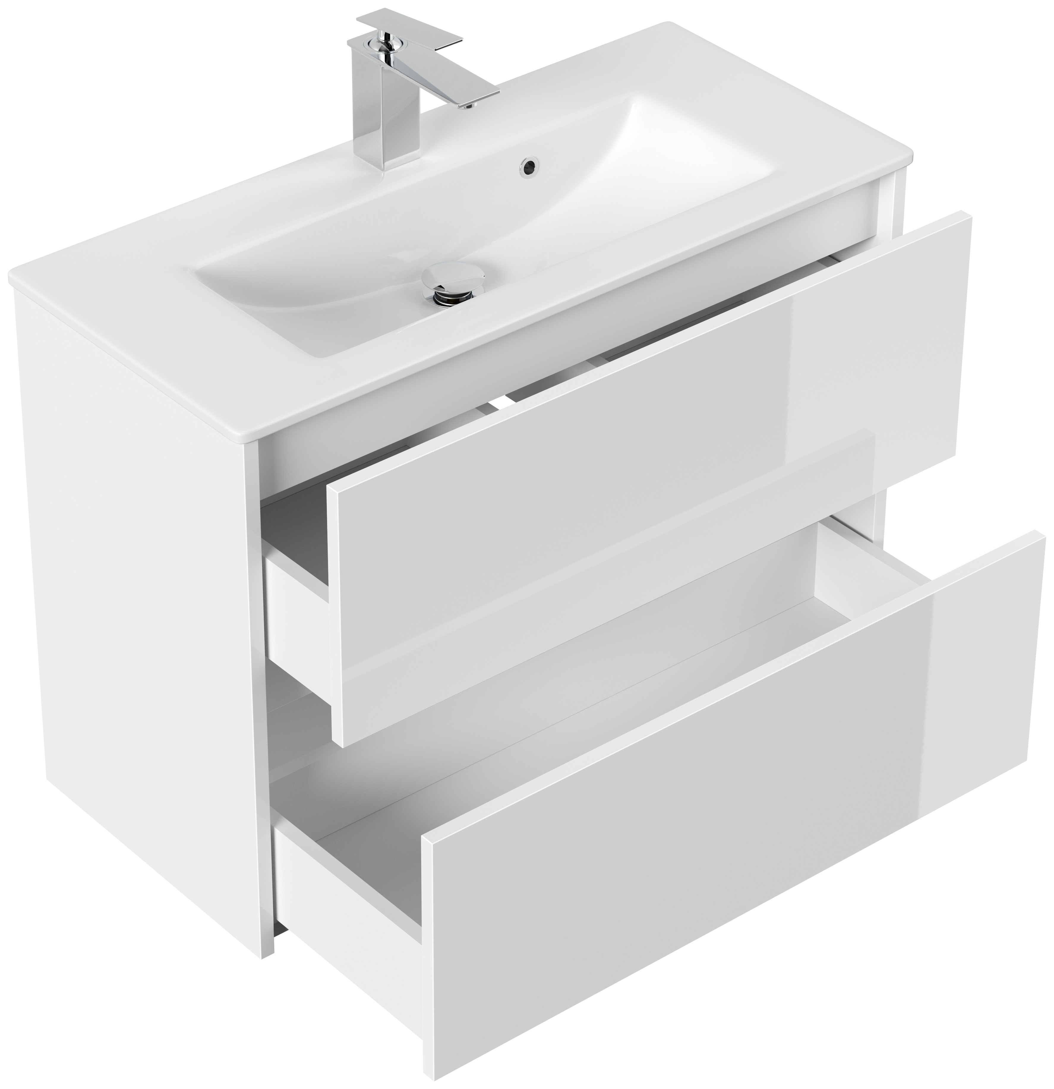 Badmöbel Taifun Slimline 80cm 2 grifflose SoftClose Auszüge weiß Hgl