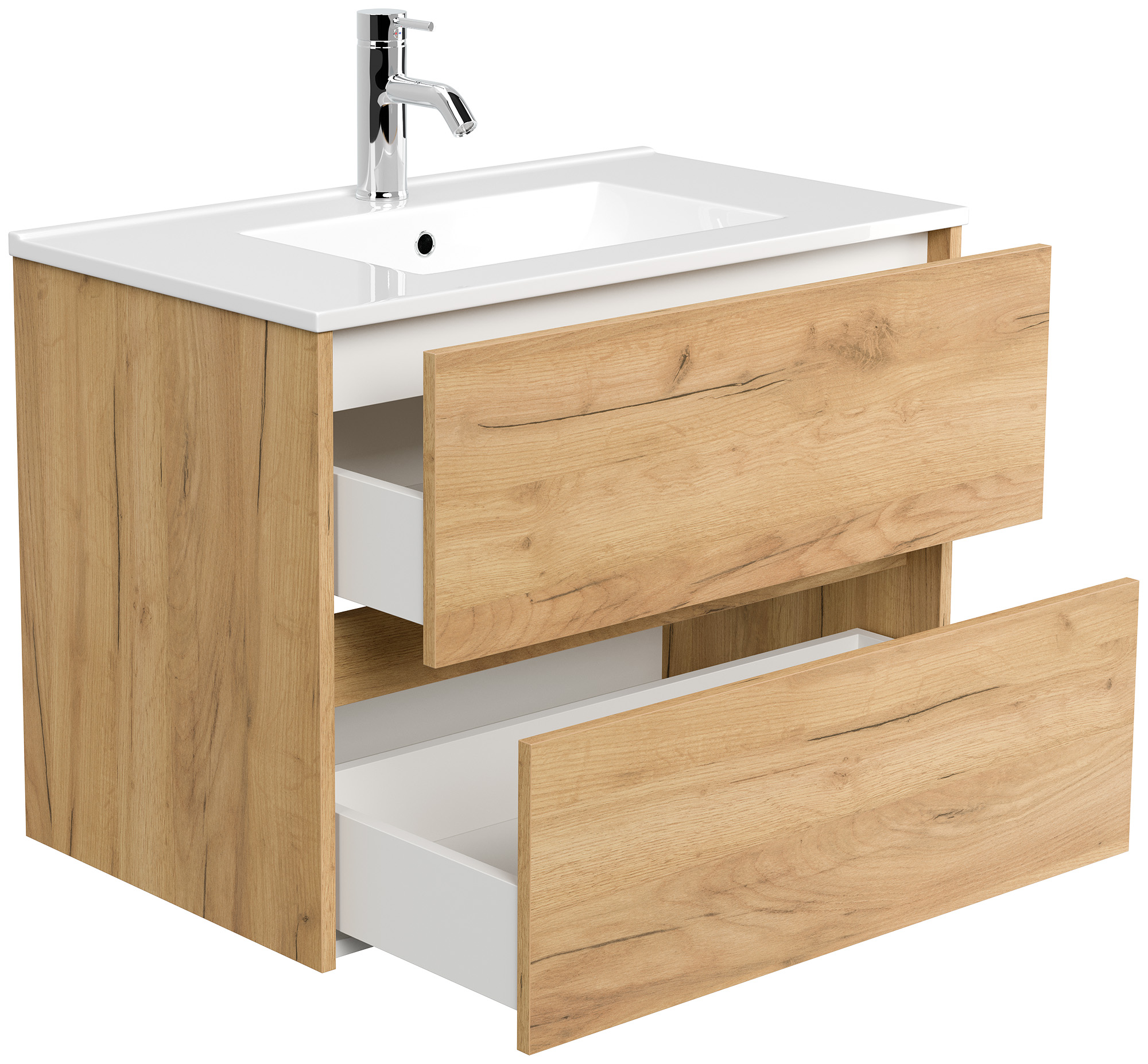 Badmöbel Taifun & Waschtisch 80 cm 2 Greifraum SoftClose Auszüge eiche gold