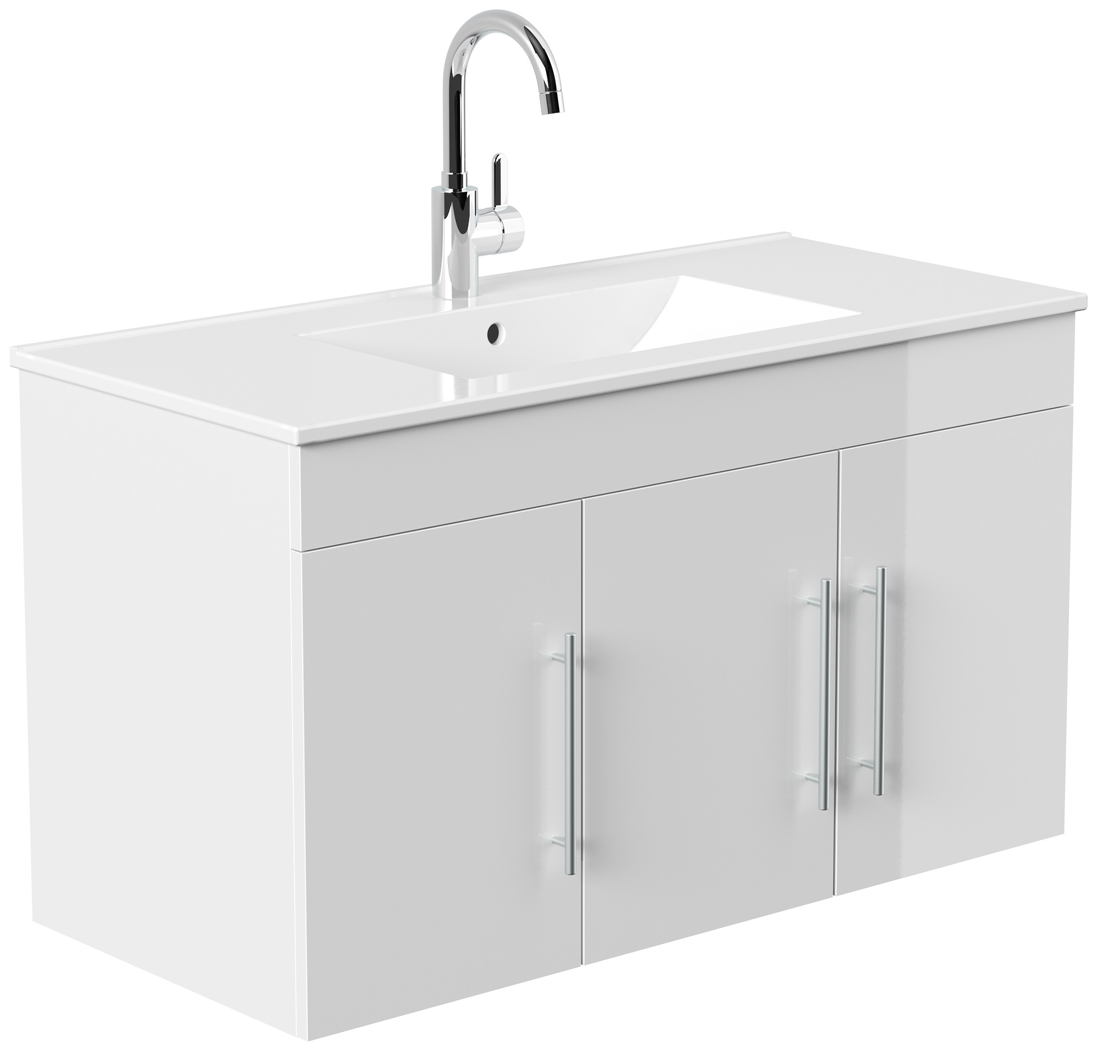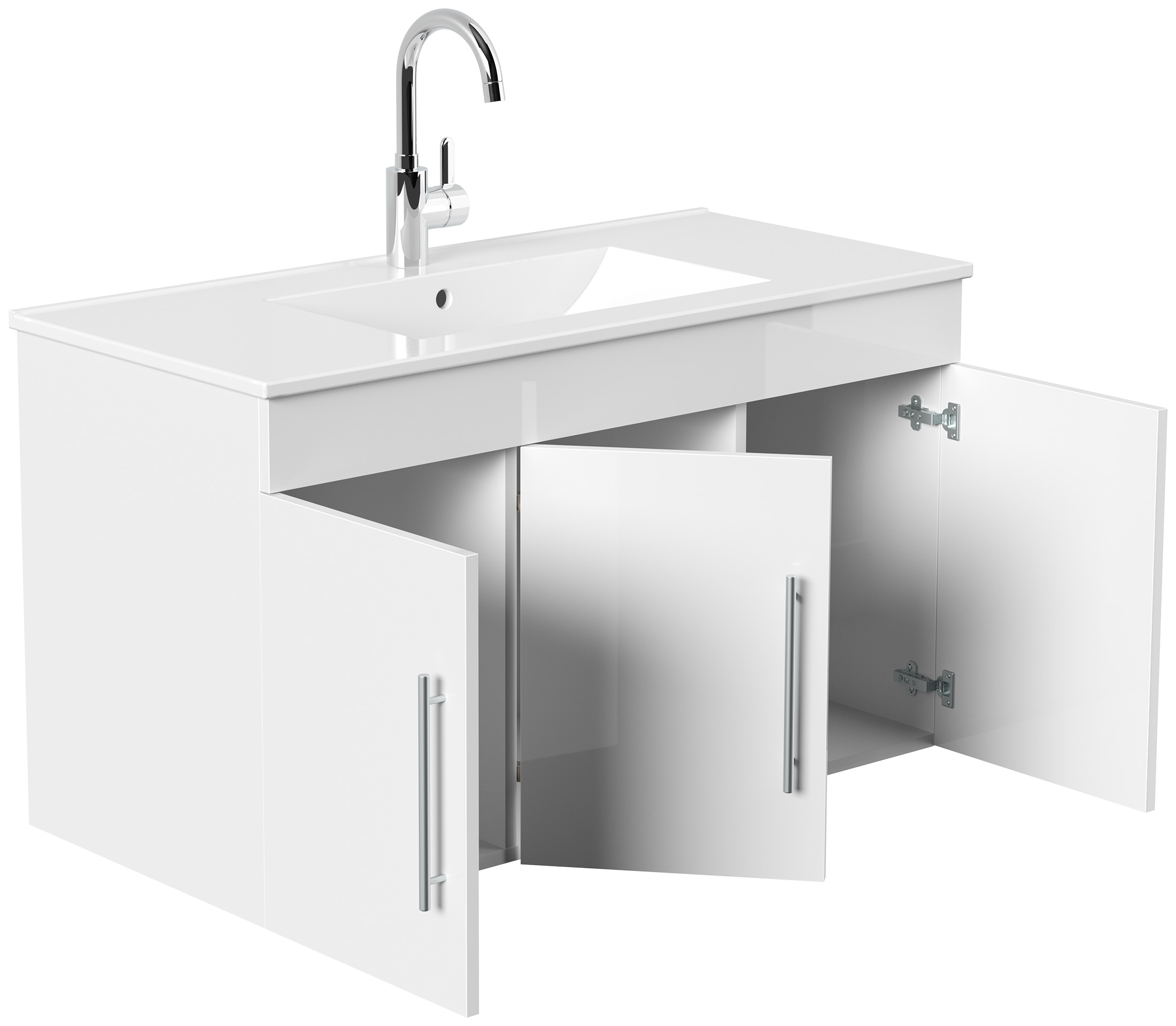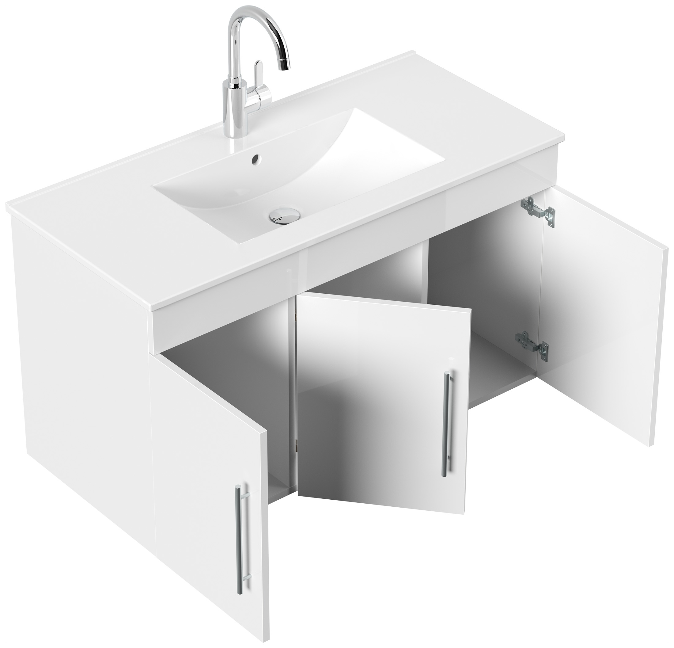 Badmöbel Venezia weiss hochglanz Waschtisch mit 3 Softclose Türen