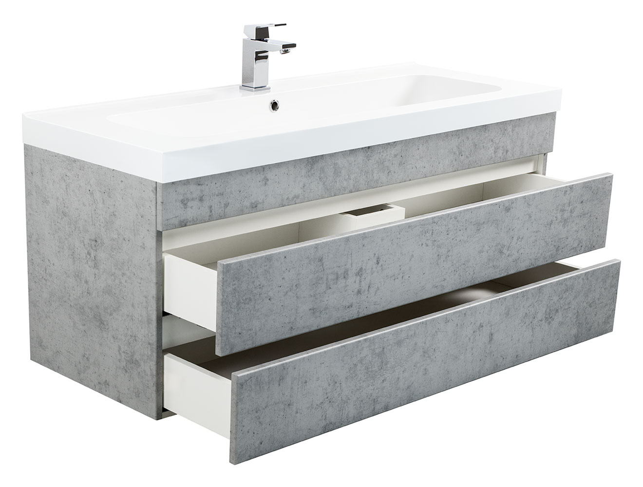 Badmöbel Via 120 SoftClose beton mit grifflosen Schubladen