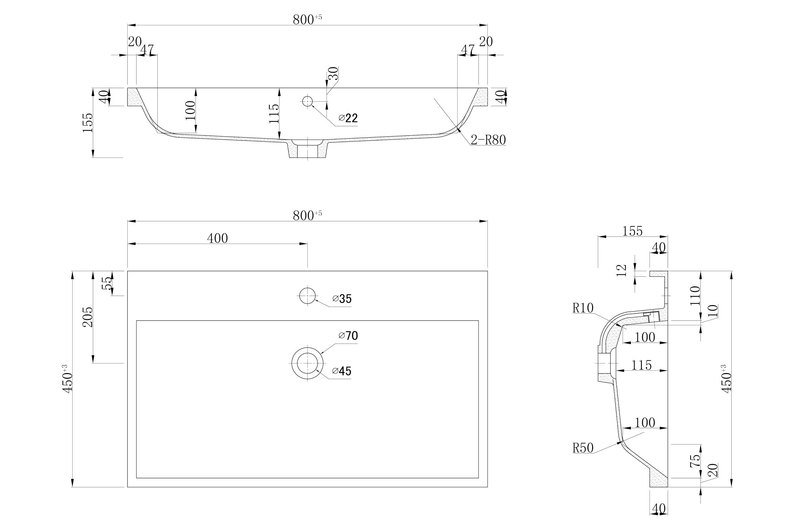 Waschbecken: (B/H/T) 81/4/45,2 cm.