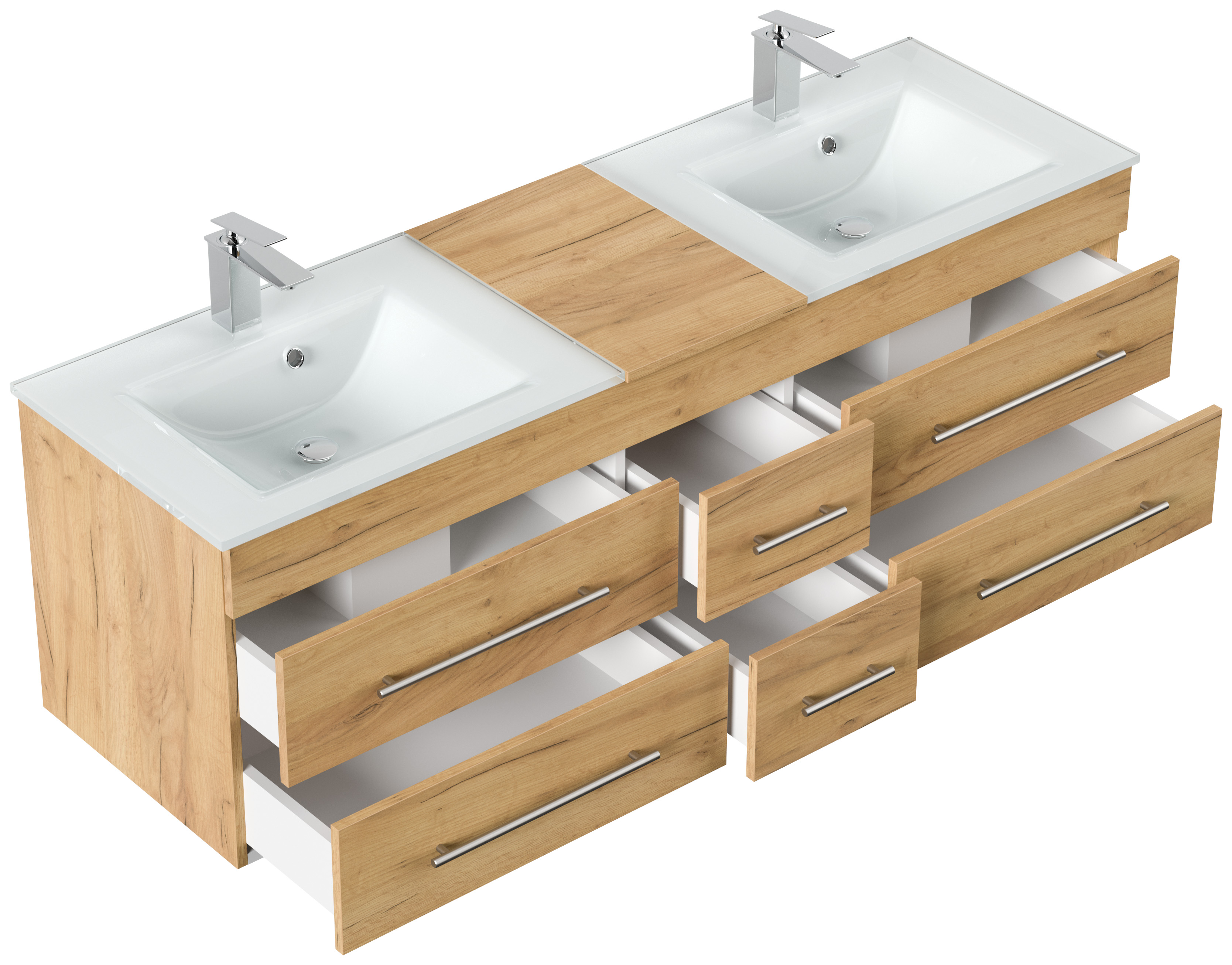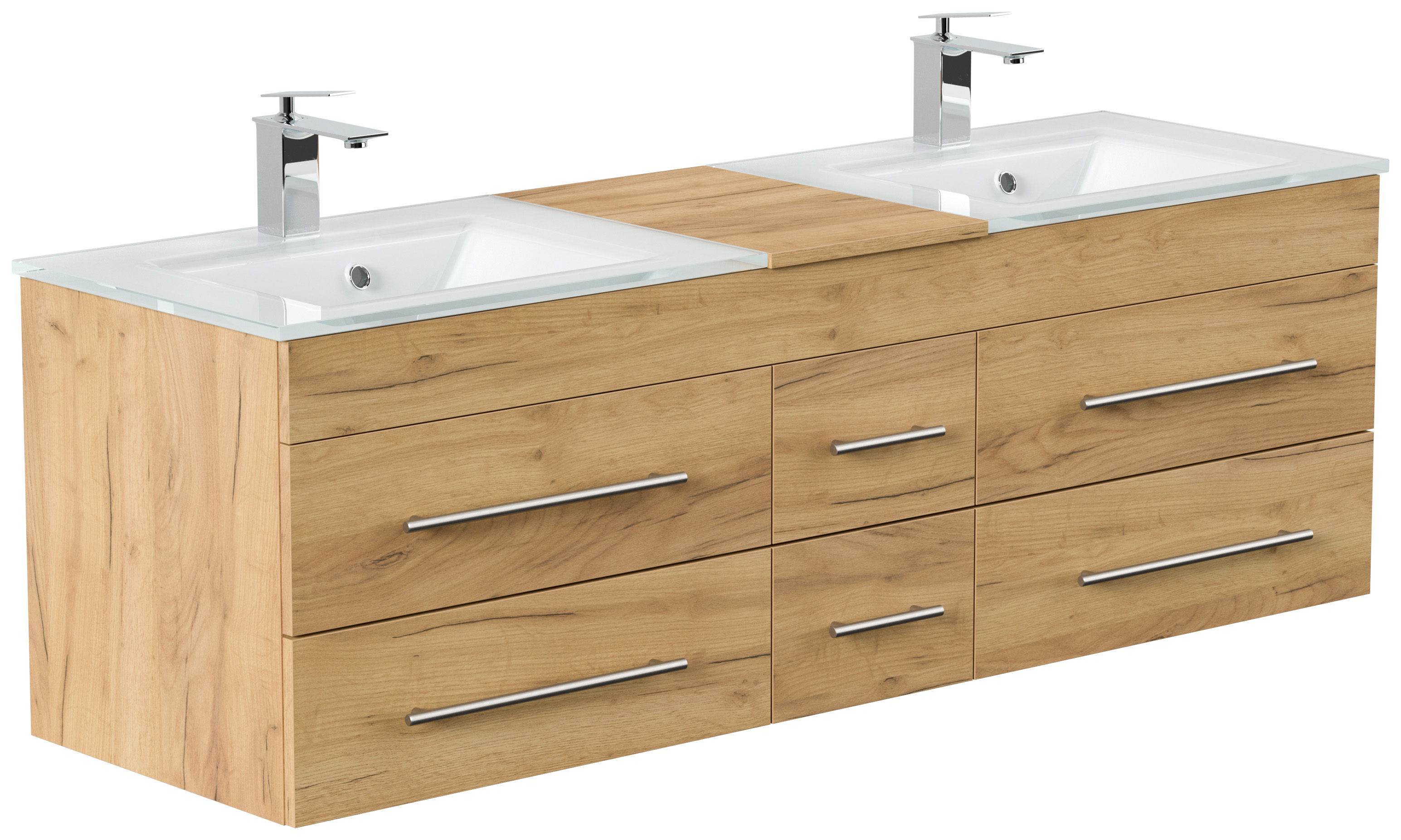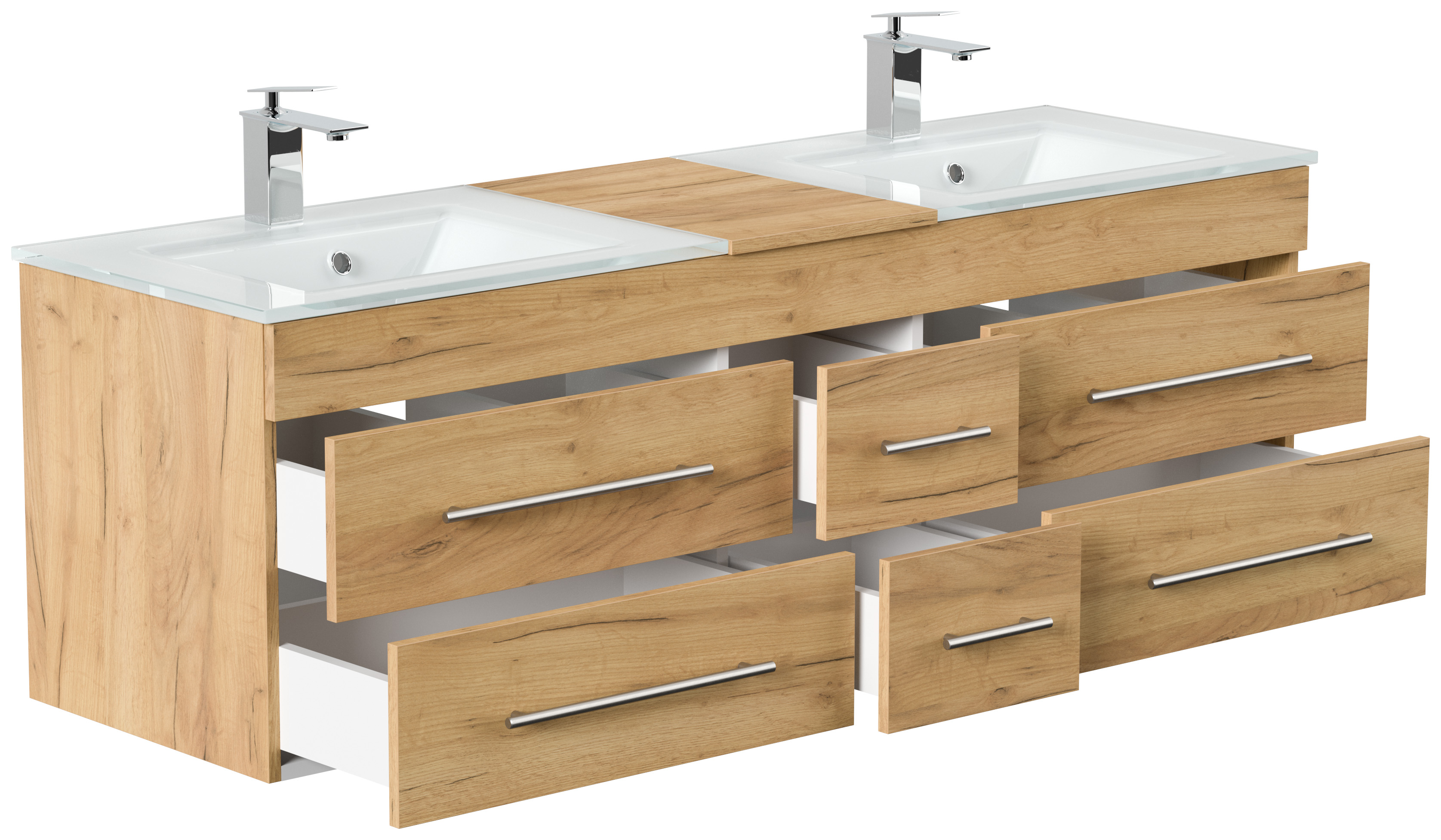 Badmöbel Vitro XL mit Doppel-Glasbecken SoftClose eiche gold