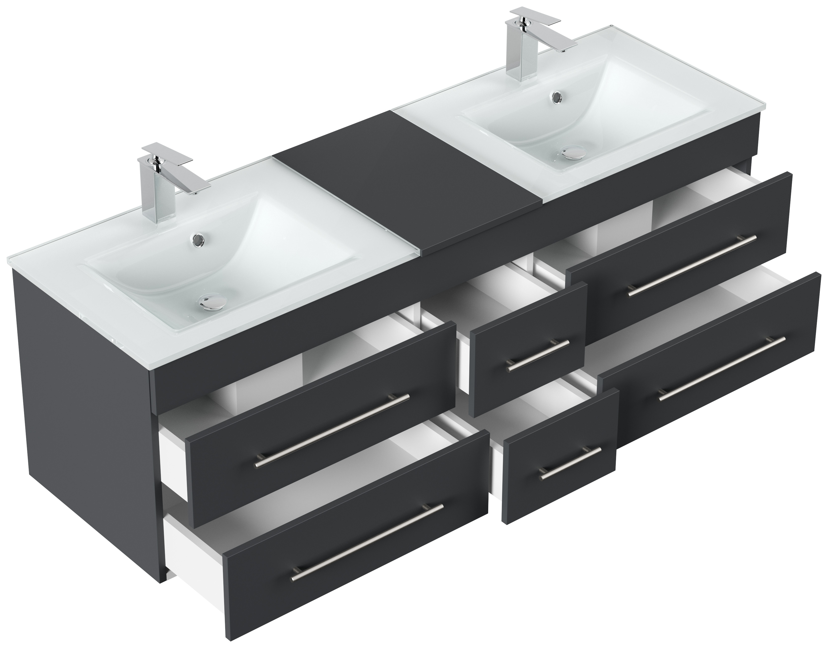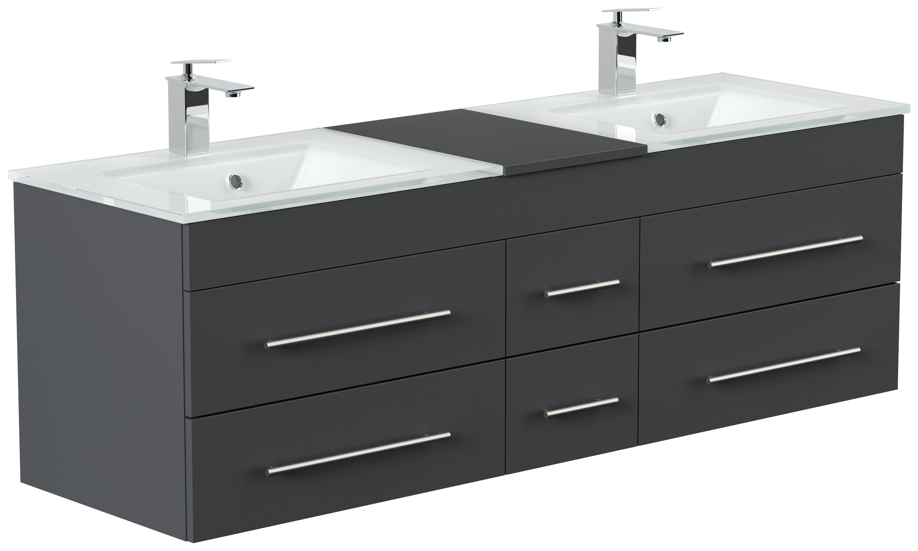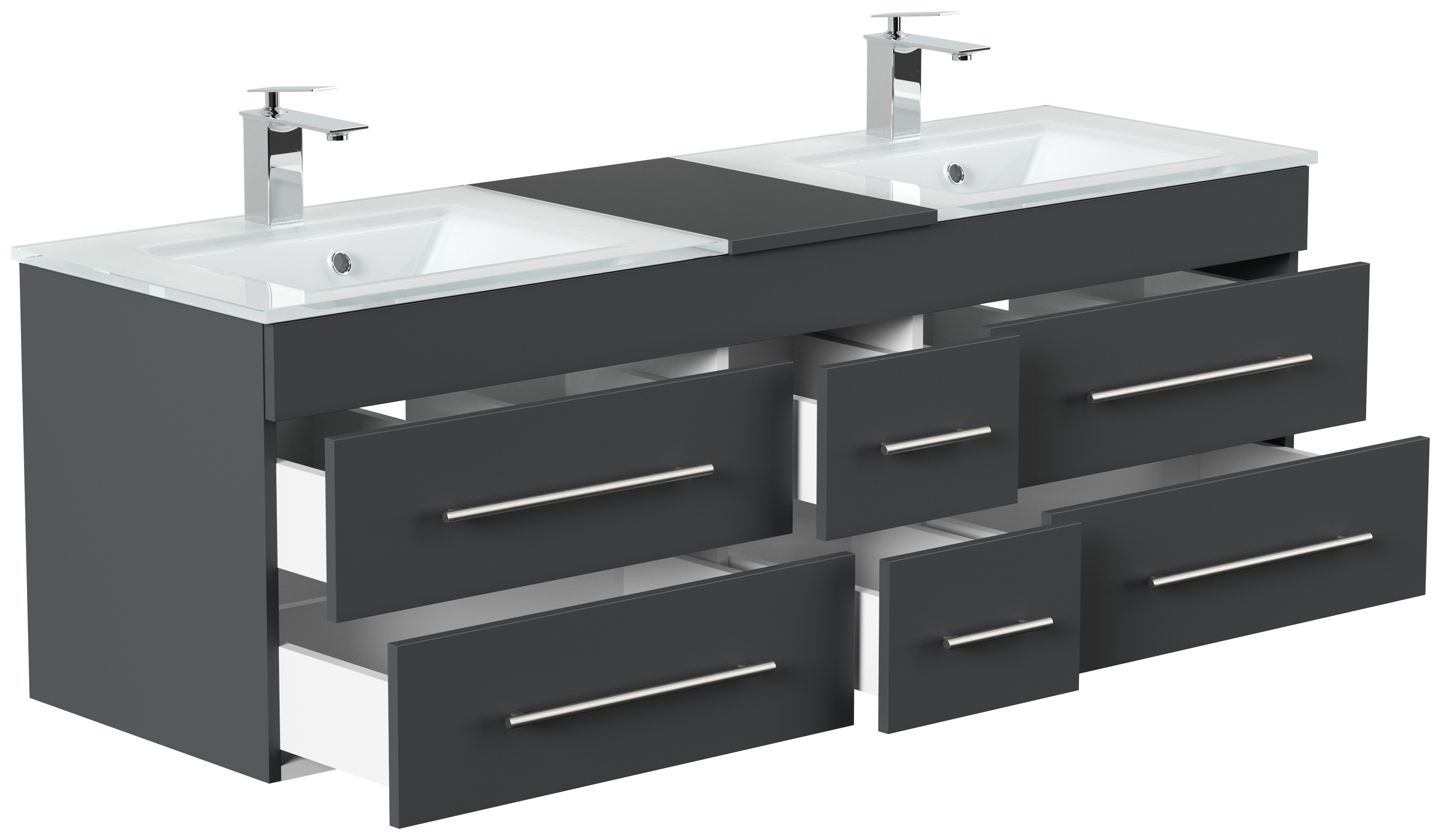 Badmöbel Vitro XL mit Doppel-Glasbecken SoftClose grafit