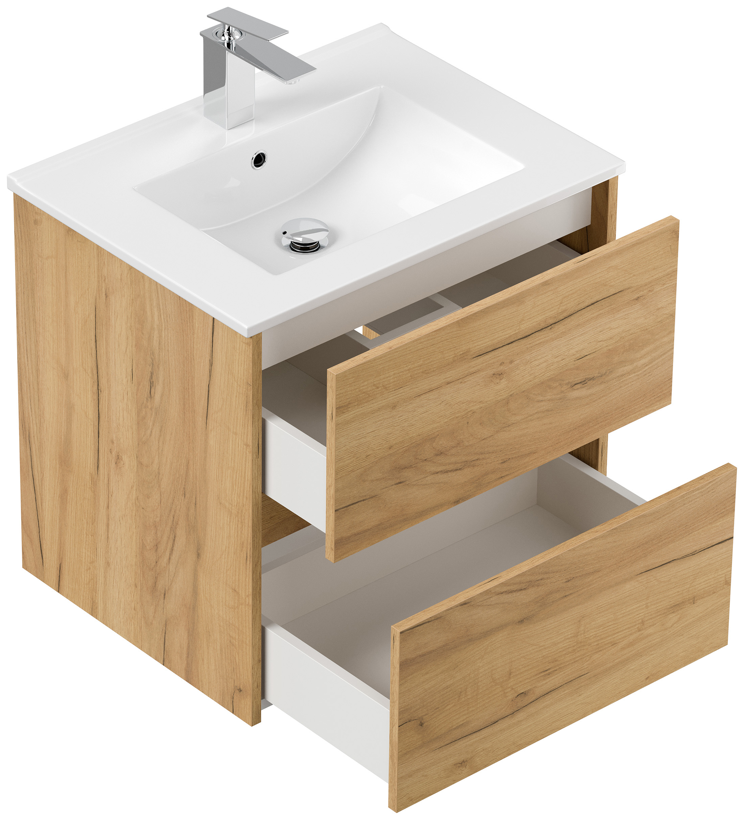 Badmöbel-Unterschrank Taifum mit 2 Softclose Schubladen und Waschbecken Keramik mit Überlauf. Maße Unterschrank mit Waschbecken (B/H/T) 61,5/58,5/46,5 cmUnterschrank (B/H/T) 59,5/56,9/46 cm