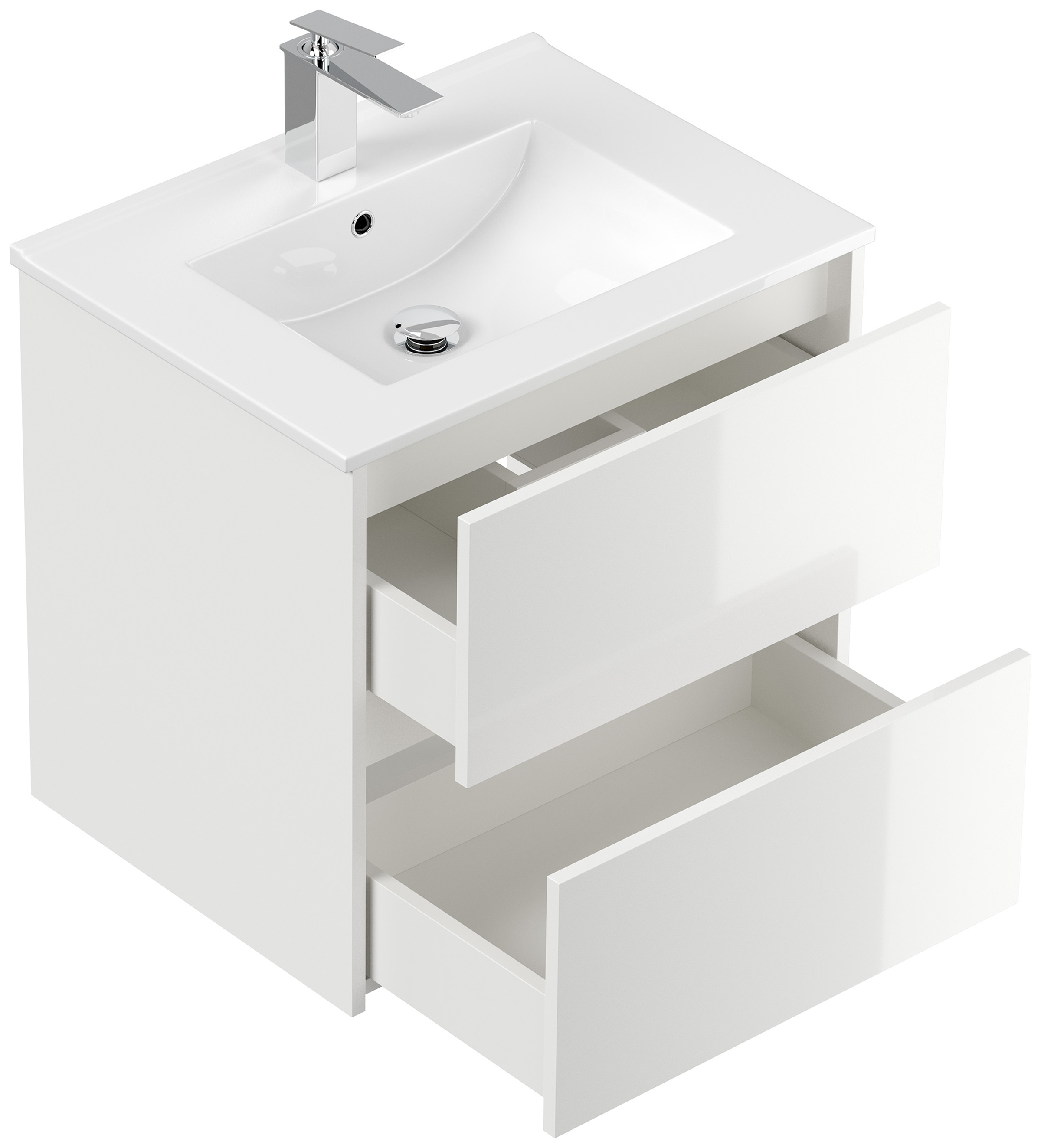 Badmöbel-Unterschrank Taifum mit 2 Softclose Schubladen und Waschbecken Keramik mit Überlauf. Maße Unterschrank mit Waschbecken (B/H/T) 61,5/58,5/46,5 cmUnterschrank (B/H/T) 59,5/56,9/46 cm