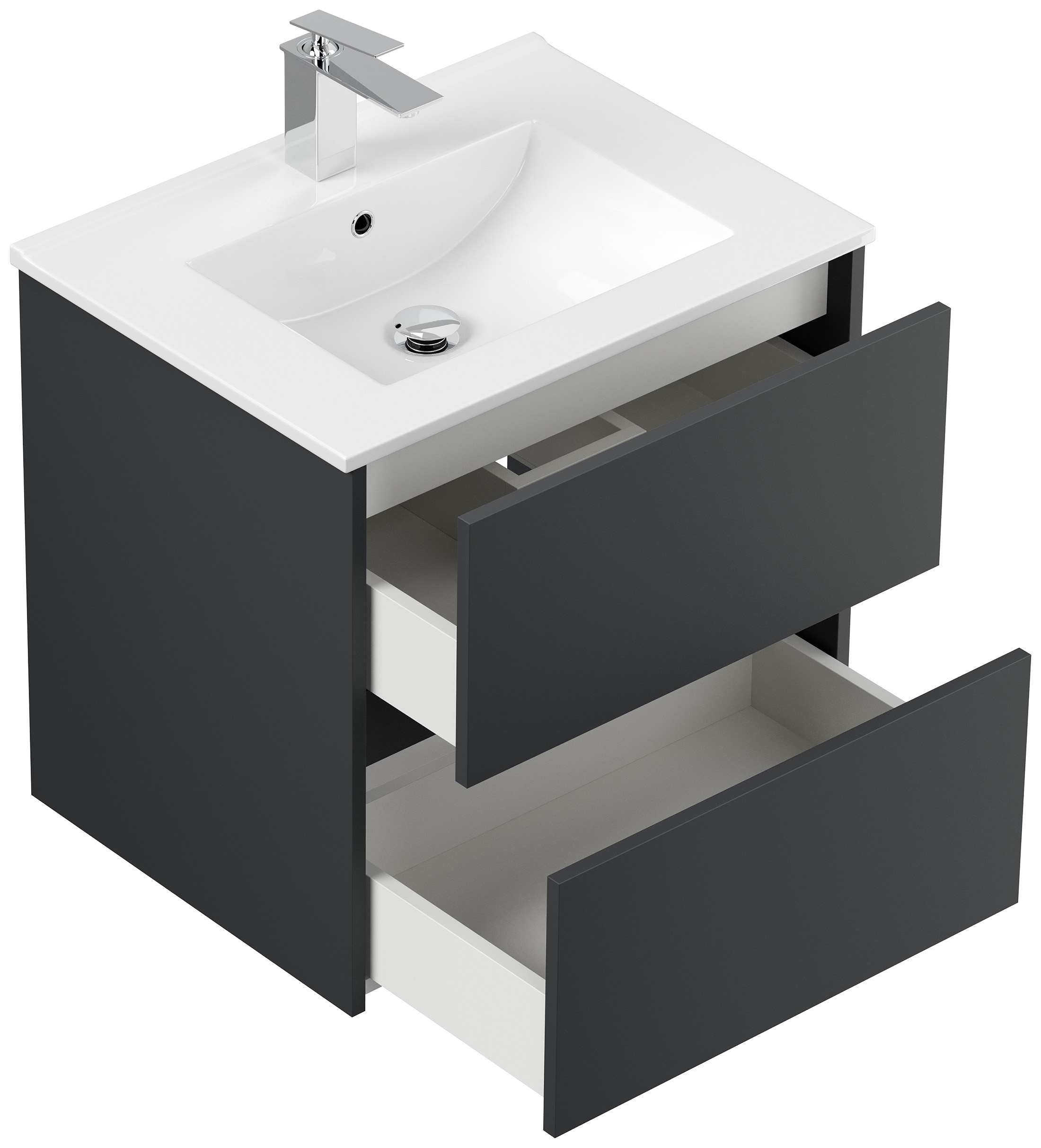 Badmöbelset Taifun 60cm 4tlg mit Spiegelschrank & 2x Badschrank grafit