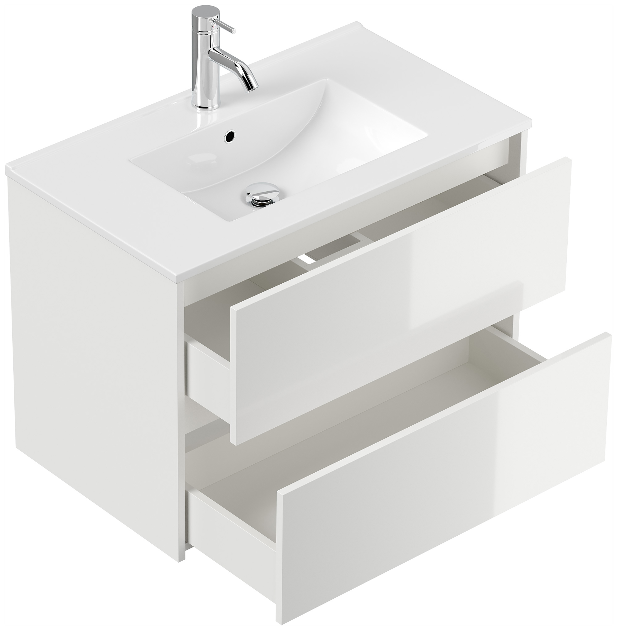 Badmöbel-Unterschrank Taifum mit 2 Softclose Schubladen und Waschbecken Keramik mit Überlauf. Maße Unterschrank mit Waschbecken (B/H/T) 61,5/58,5/46,5 cmUnterschrank (B/H/T) 59,5/56,9/46 cm