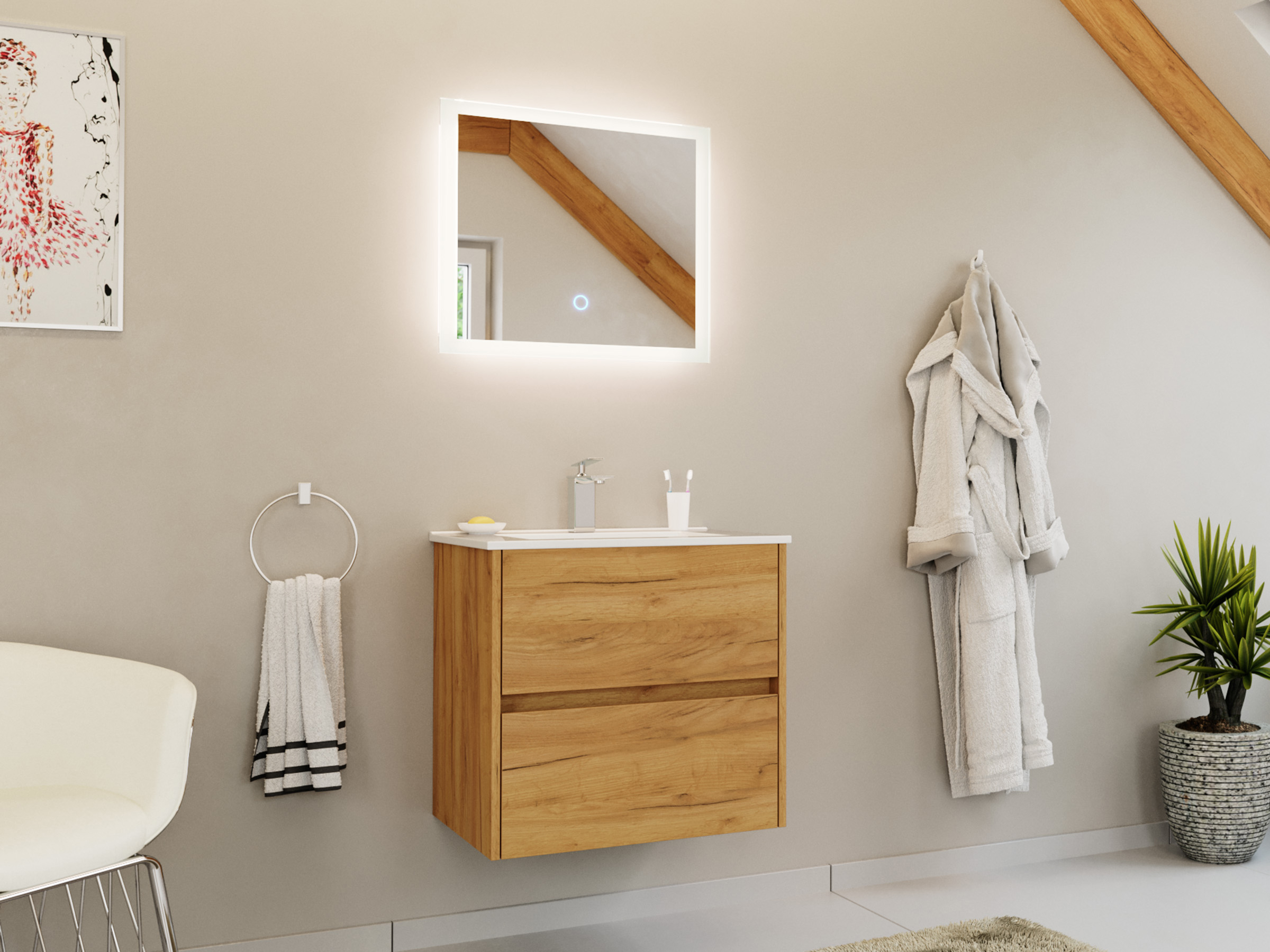 Badmöbelset Taifun 60cm 2 tlg. Waschtisch & LED Spiegel eiche gold