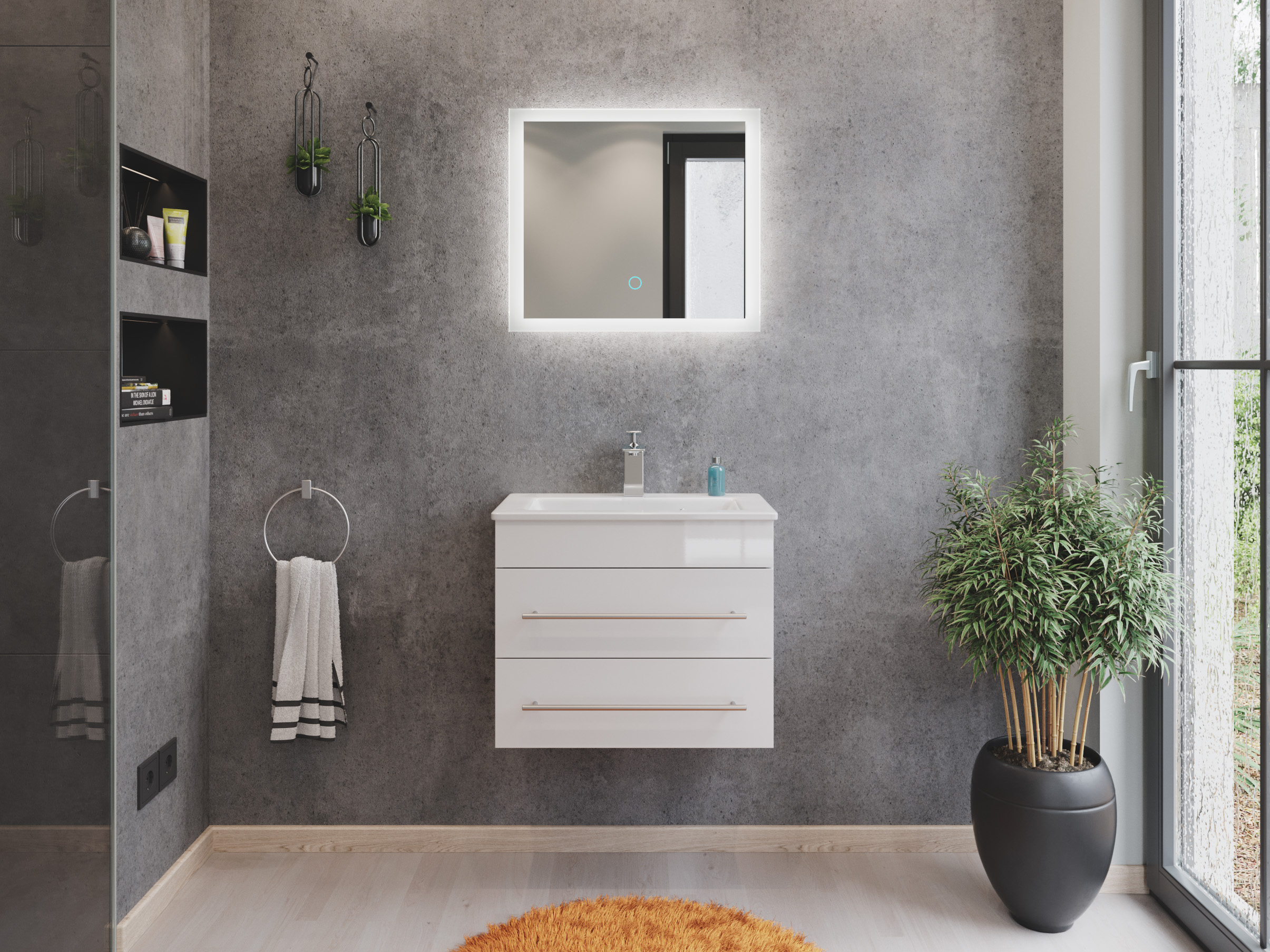 Badmöbel Mars 600 2-teilig mit LED Spiegel SlimLine weiss hochglanz