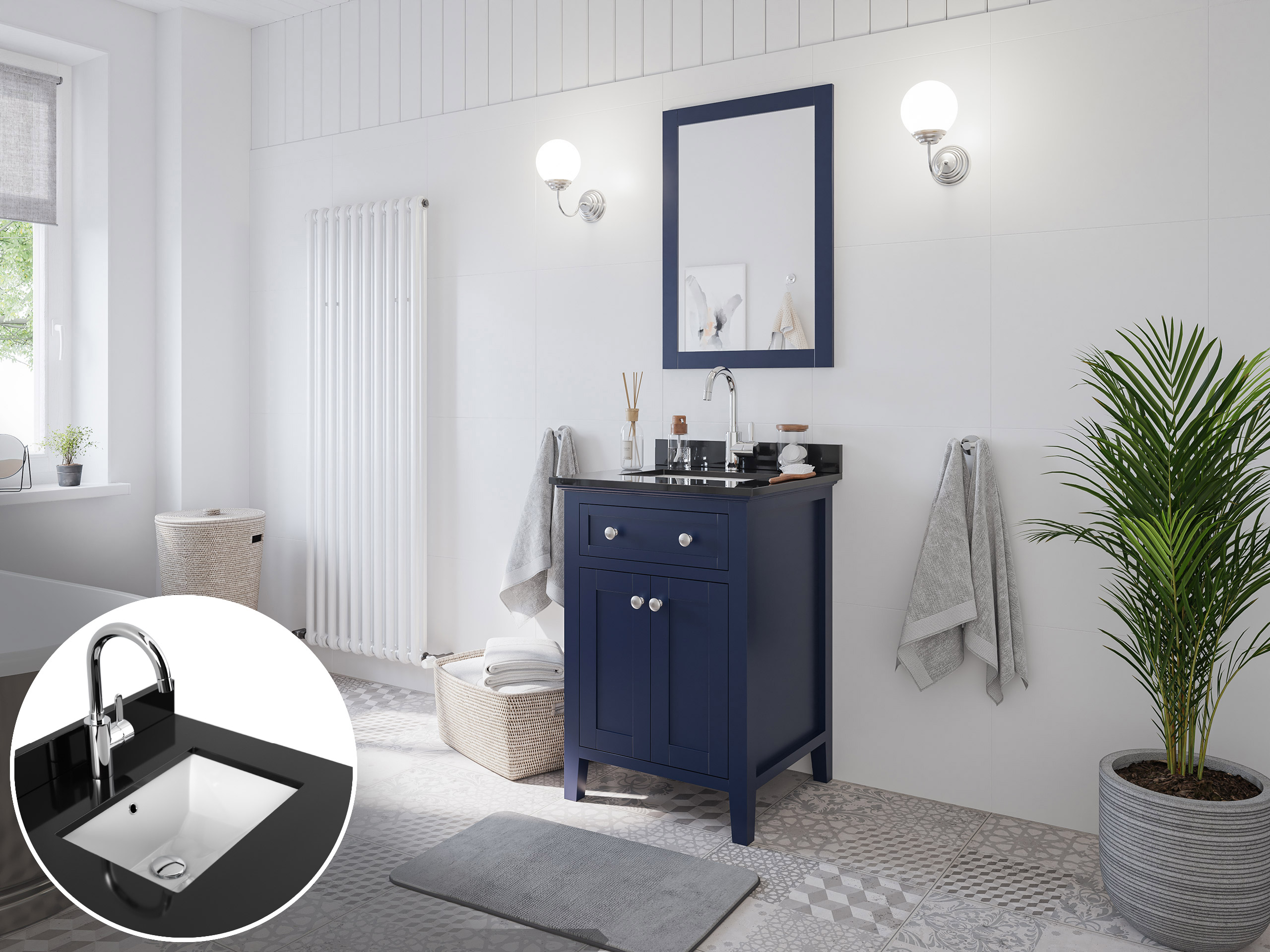 Landhaus Badmöbel-Set 2tlg Postigo 60 Quarz schwarz montiert blau lackiert