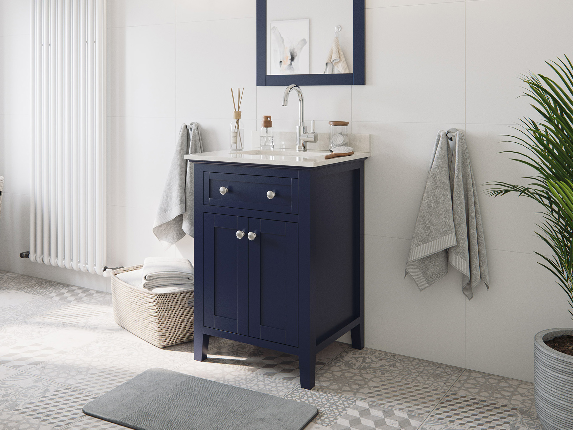 Landhaus Badmöbel-Set Postigo 60 Quarz Carrara montiert blau lackiert