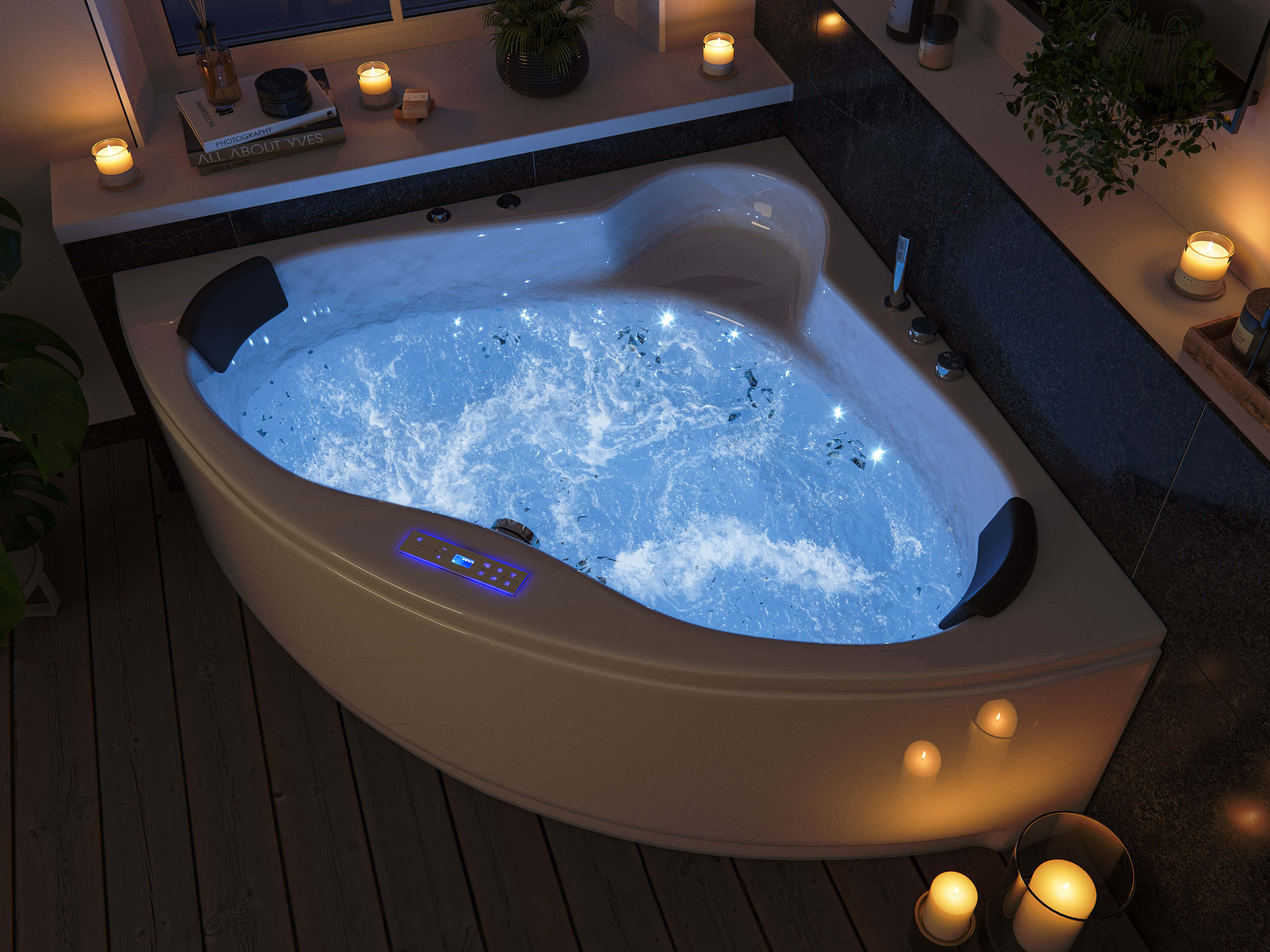 Eckpool für zwei Personen mit luxuröser Ausstattung: Kraftvolle Massage und Lichttherapie