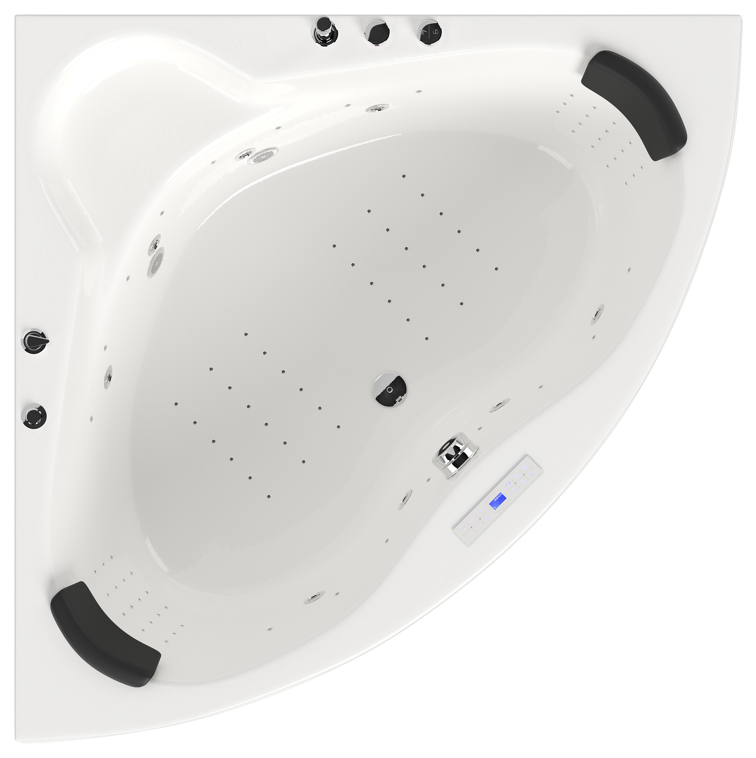 2x4 Stk. Seiten-Massagedüsen Hydrojets Hydromassage, 2x18 Stk. Nano-Massagedüsen Hydrojets Hydromassage, 36 Stk. Bodenluftdüsen Aerojets für prickelnden Sprudel-Effekt Whirlpool.Material: Wanne aus Sanitäracryl auf stabilem Rahmen mit höhenverstellbaren Füßen.